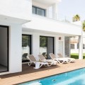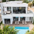 - This exclusive luxury villa, combines modern architecture with top-quality construction and a carefully designed layout. The home is filled with natural light thanks to large floor-to-ceiling windows in every room, creating a harmonious sense of space and elegance. The villa is equipped with the latest smart home technology, allowing you to easily control temperature and functions via a central unit or app. Underfloor heating throughout the property and solar panels ensure year-round comfort and an energy-efficient lifestyle. On the ground floor, you will find three spacious bedrooms, all with direct access to the terrace and pool area. The master bedroom features a luxurious en-suite bathroom and a generous walk-in closet. The upper floor impresses with an open-plan design, a state-of-the-art kitchen of the highest standard, and a bright living room. From here, you can access the large terrace, perfect for social gatherings with a dining area, lounge space, and barbecue, as well as partial sea views. The private garden offers a well-kept lawn, a swimming pool, and plenty of space for relaxation or family activities. The property also includes two parking spaces. The location is ideal, close to all amenities, the beach, and Torreblanca train station, which is just a few minutes away. You are most welcome to contact us for more information or to arrange a private viewing.