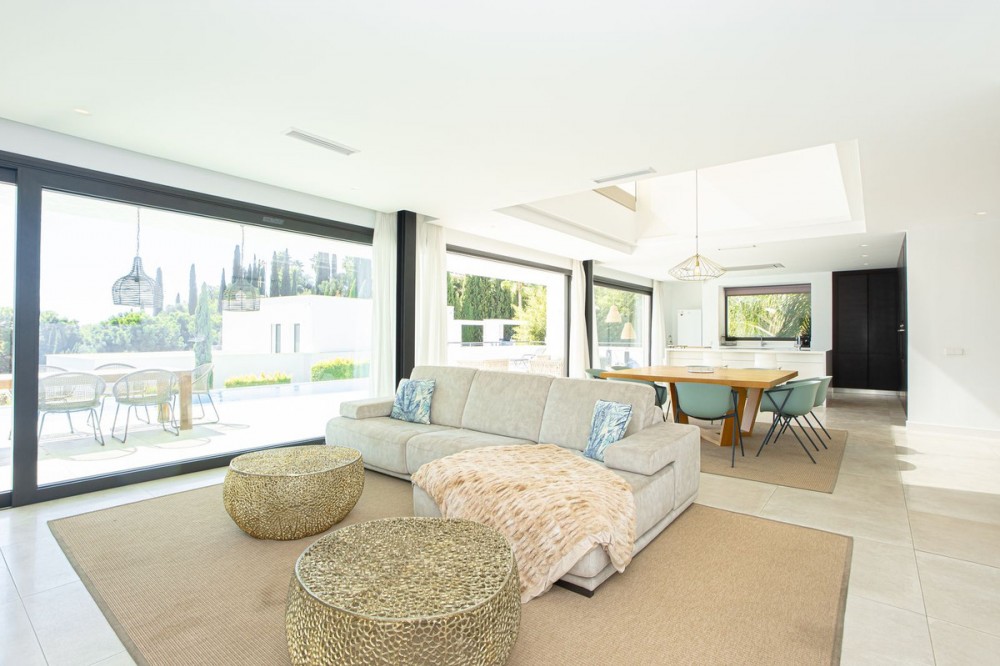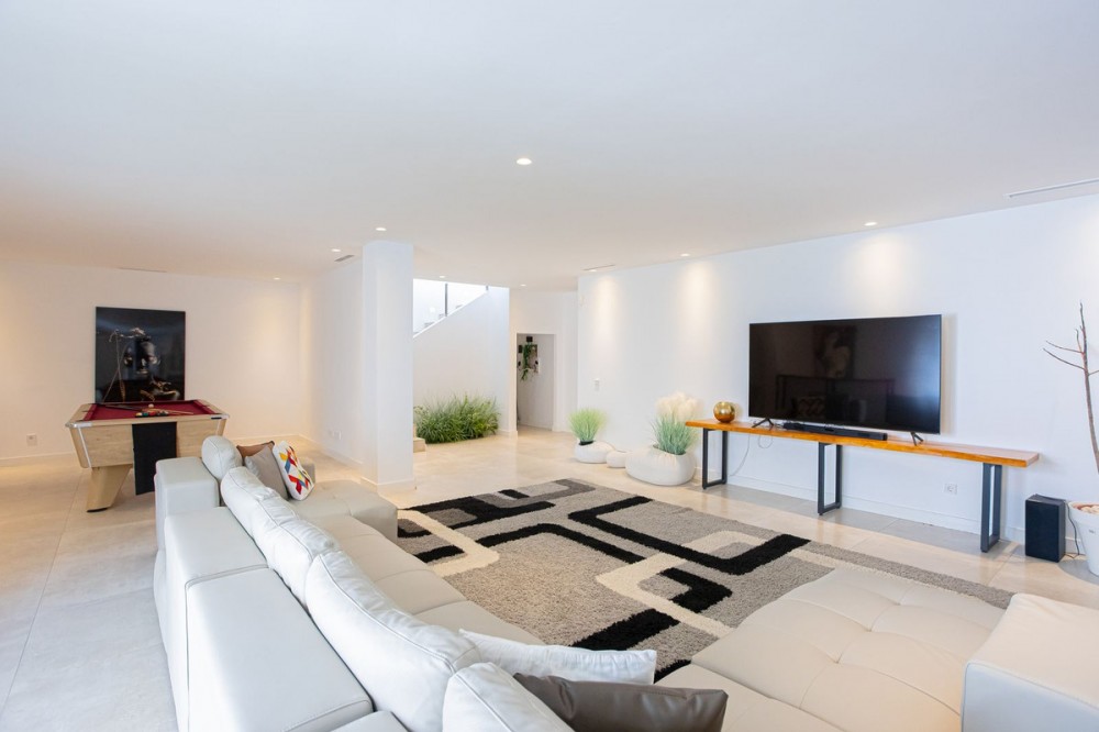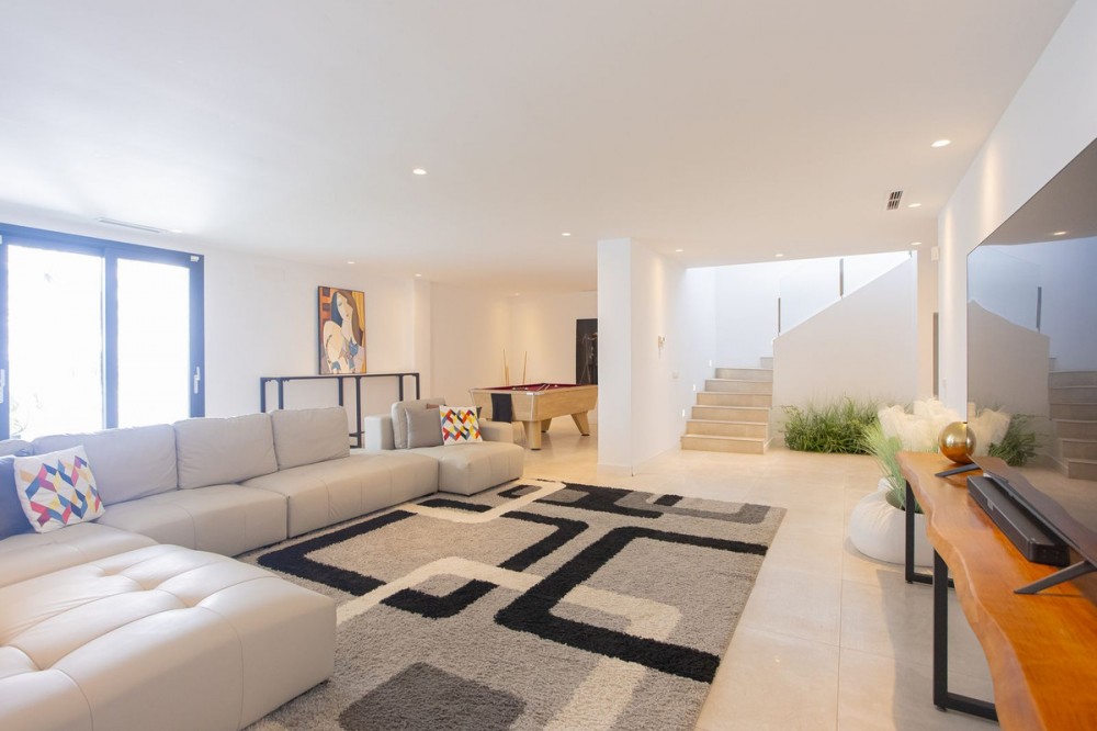 - Indrukwekkende en moderne villa met 6 slaapkamers in La Quinta Deze villa is gelegen aan een rustige straat in een afgesloten woonwijk met slechts 4 woningen en biedt volop ruimte en natuurlijk licht. De villa, verdeeld over 3 verdiepingen, beschikt over 6 slaapkamers, 4,5 badkamers, een open woonkamer, een keuken en een eetkamer die uitkomt op een ruim terras met een zwembad, evenals een grote kelder met een tv-hoek, een wasruimte, een biljarttafel, een fitnessruimte en een garage.