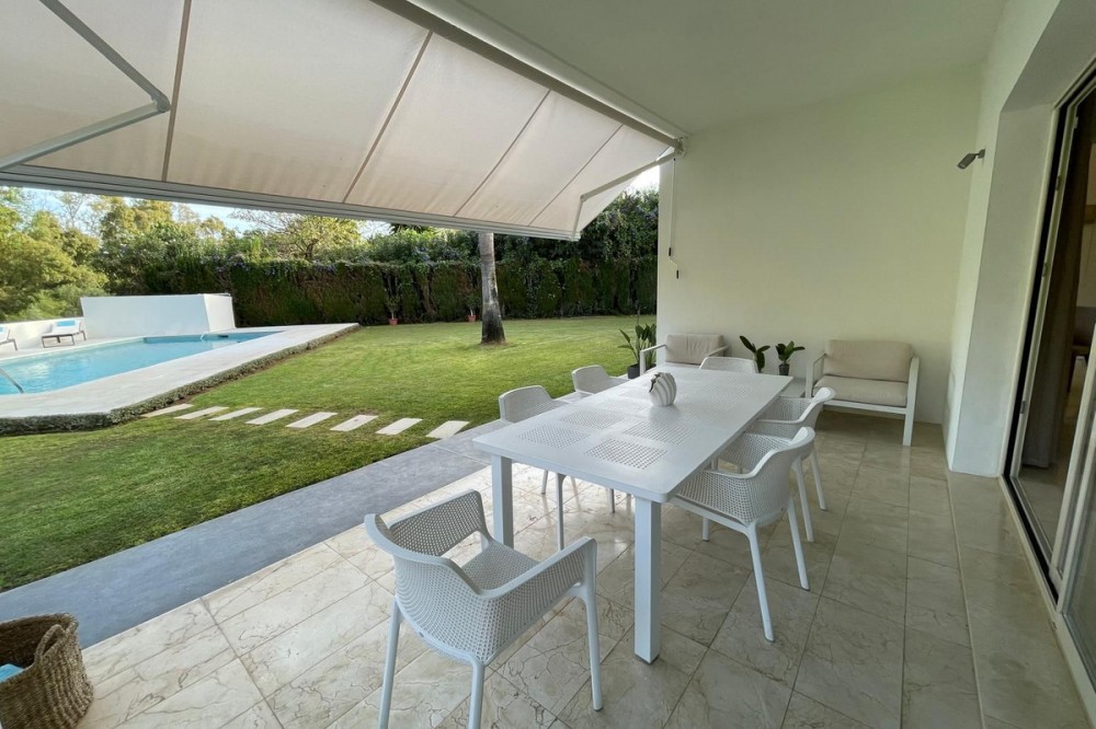 - Beautiful beach-side villa on 1 level for sale in Casasola - Guadalmina Baja - Marbella Currently rented out till november 2026. Available for sale for investors. Location Highlights: * Enviable beach-side location, just a few 100 meters from the sea, in the peaceful luxury villa district of Casasola, on the border between Marbella and the New Golden Mile. * On a large plot, directly bordering the Guadalmina River and the eponymous golf course, further increasing privacy and tranquility. * Walking distance to the sea, schools, to the Guadalmina commercial center (with all amenities such as supermarket, shops, pharmacies, cafes, coffee shops, banks, restaurants etc., walking distance to a padel club and of course the golf course. * Only minutes by car to Puerto Banus, San Pedro and Marbella Villa Highlights: * Beautiful bright villa, built and distributed on one single level, which is rare and adds to the exclusivity and convenience of the villa * The villa dates from the mid seventies but has of course been modernized and takes on a stylish contemporary look and feel. * South facing, offering sun all day, all year round * Built on a large flat plot with beautiful lawn, offering plenty of opportunities such as extending the villa indoors to the outdoors, children's opportunity to play, family and guests relaxation and picnic areas or simply perfect to organize garden, pool and BBQ parties for your guests * Very large open plan fully equipped kitchen area with island and breakfast bar, opening directly to a small terrace for outdoor dining. * The kitchen integrates directly with a formal dining area and the large, bright living area which boasts a cozy fireplace and opens onto the garden via large windows. * There are 3 spacious bedrooms, with the master bedroom being en-suite and the 2 other bedrooms with a shared bathroom. All bedrooms benefit from fitted wardrobes. * The villa boasts beautiful cream-colored marble floors and benefits from underfloor heating. All rooms can be air-conditioned by cooling or heating. * Of course the villa also enjoys a beautiful outdoor pool, conveniently located in the corner of the garden, leaving lots of space for other simultaneous family, kids or guest activities. * The villa is protected by its own alarm system and the area is patrolled by a security company at all times of the day and night. A large electrically operated sliding gate shields the villa from unwanted intruders or curious eyes. Behind the gate is secure off-street parking for 3 cars, with 1 place being covered. This amazing villa will surely appeal to many. It truly offers a fantastic opportunity for anyone who likes a cosy luxury place in one of the best areas of Marbella close to the sea.