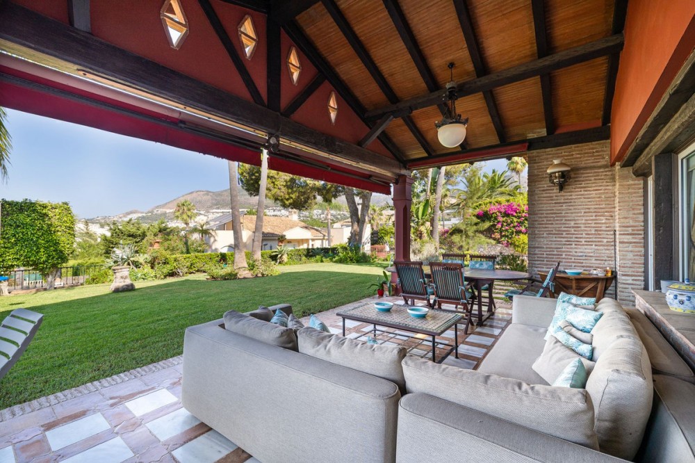 - Exclusive Villa in Torrequebrada – Benalmádena Costa Built area: 888 m² Plot: 2,109 m² Bedrooms: 6 Bathrooms: 6+ Private pool – Landscaped gardens – Total privacy Description Magnificent detached villa located in the prestigious Torrequebrada urbanisation, currently considered the premium residential area of Benalmádena. This property is truly unique thanks to its exceptional plot of over 2,100 m², twice the usual size in the area, offering spaciousness, privacy and exclusivity. The villa, with 888 m² built, is arranged over two levels (main and semi-basement), featuring generous and bright interiors, a classic design and luxury finishes. Main floor: large living room with garden views, dining room, independent kitchen with service access, office, master bedroom with en-suite bathroom and dressing room, three additional bedrooms, auxiliary areas, independent laundry room, and an interior patio with lush vegetation that brings natural light and freshness into the home. Semi-basement: two independent habitable areas, perfect for guest accommodation, recreational use or staff quarters. Includes a large garage and storage rooms. Outdoor areas 60 m² swimming pool facing south, enjoying sunshine all day long. Beautifully landscaped gardens with mature trees providing maximum privacy. Several entrances and various parking spaces. Location Situated next to Torrequebrada Golf Course and only 2 minutes from the beach, this villa benefits from a privileged setting with all amenities nearby: private schools, health centre, casino, leisure areas and excellent connections to the CN-340. Just 15 minutes from Málaga city centre and its international airport. Key features Exceptional plot, divisible according to the Municipal Urban Plan. Absolute privacy thanks to its elevated position. Versatile spaces for multiple uses (main residence, guest accommodation, staff quarters). Prime location in Torrequebrada, the most exclusive area of Benalmádena. For sale as-is, with furniture included.