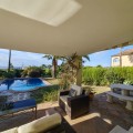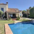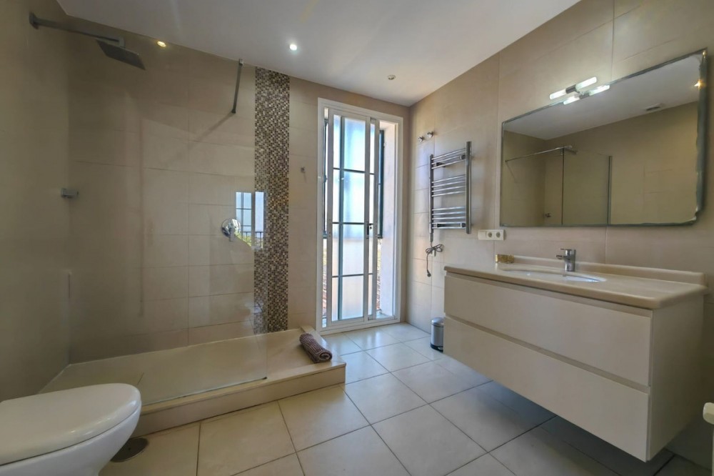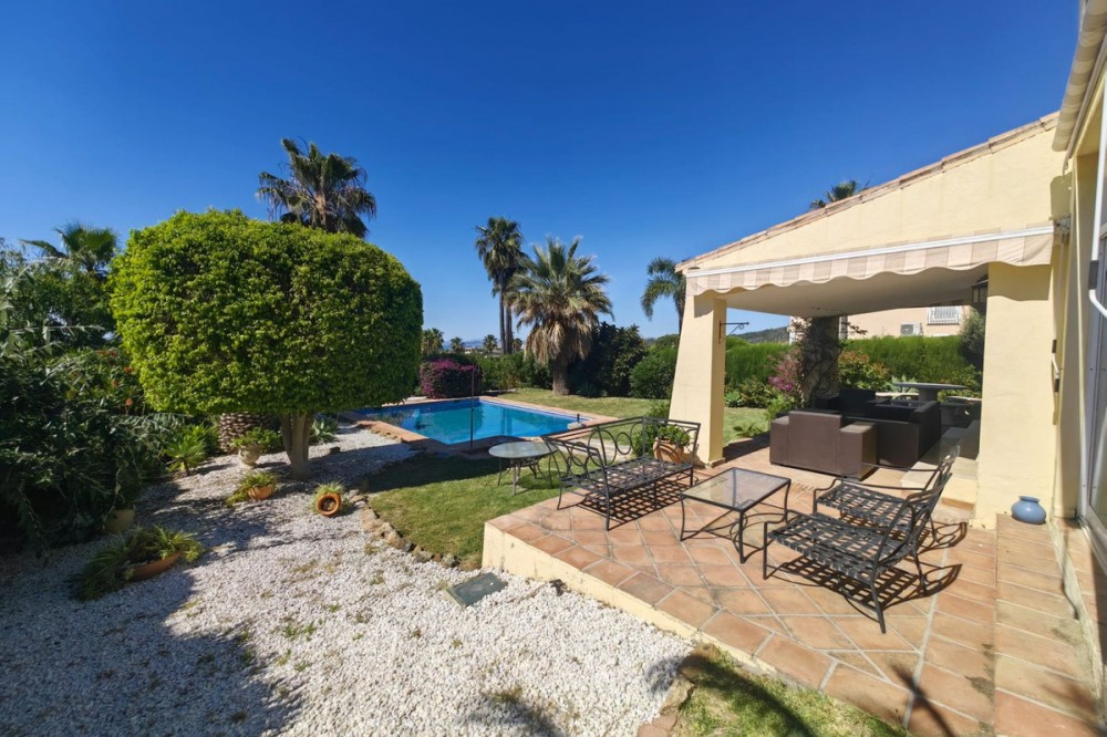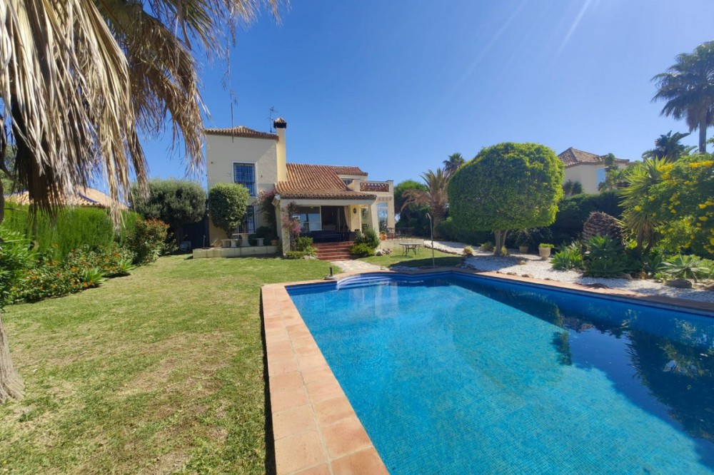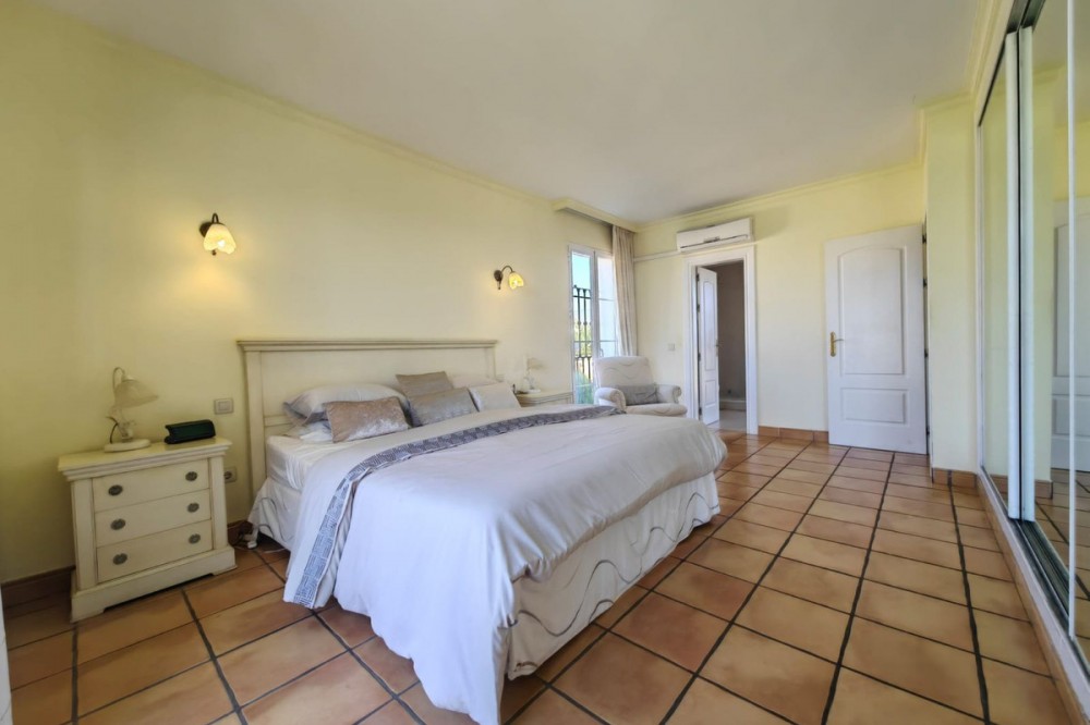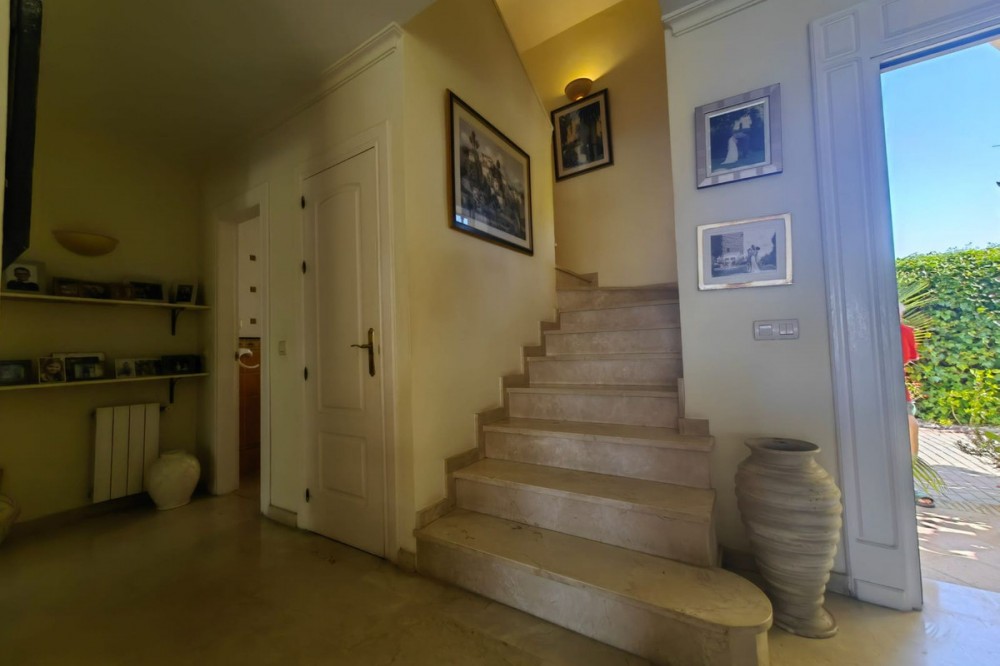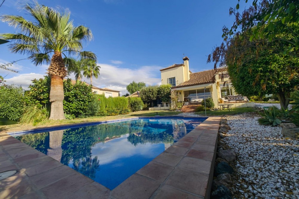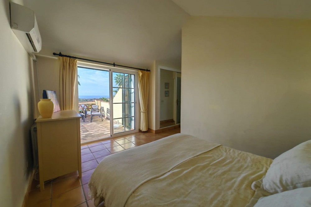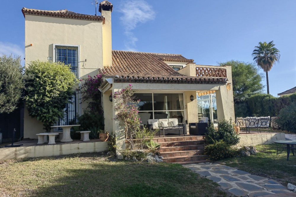 - Stunning Andalusian Villa with Panoramic Sea Views – Puerto Romano, Estepona Perched at the very top of Puerto Romano, this beautiful Andalusian-style family villa offers some of the most breathtaking panoramic views on the Costa del Sol. From sunrise to sunset, enjoy sweeping vistas that stretch from La Concha mountain to the east, across the Mediterranean Sea, Gibraltar, and the Atlas Mountains of Morocco to the west. The villa sits on a generous plot of almost 1,000 m², surrounded by landscaped gardens that ensure privacy, tranquility, and a true sense of escape. A large private swimming pool takes center stage, while an automated gate opens to the driveway with both open and covered parking. The villa comprises 3 spacious bedrooms, each with its own ensuite bathroom, plus a guest toilet. The ground floor features a large lounge with fireplace and dining area, a separate fully fitted kitchen, and a charming glassed-in west-facing dining patio perfect for enjoying sunsets all year round. From the lounge and covered terrace, the elevated position allows uninterrupted views over the pool and gardens. Upstairs, a cozy open lounge area overlooks the main living room. To the left, a bedroom suite with built-in wardrobes and ensuite bathroom opens to a large south-facing terrace with commanding sea views. To the right, another generous ensuite bedroom enjoys the same spectacular outlook. Additional features include outdoor storage cabins, fibre optic internet, alarm system, burglar bars, central heating, air-conditioning, marble floors, and a gas stove. Located just 10 minutes’ drive from Estepona town and its beaches, this villa combines traditional Andalusian charm with modern comforts in a peaceful residential community. An exceptional family home or holiday retreat to enjoy the very best of the Costa del Sol lifestyle