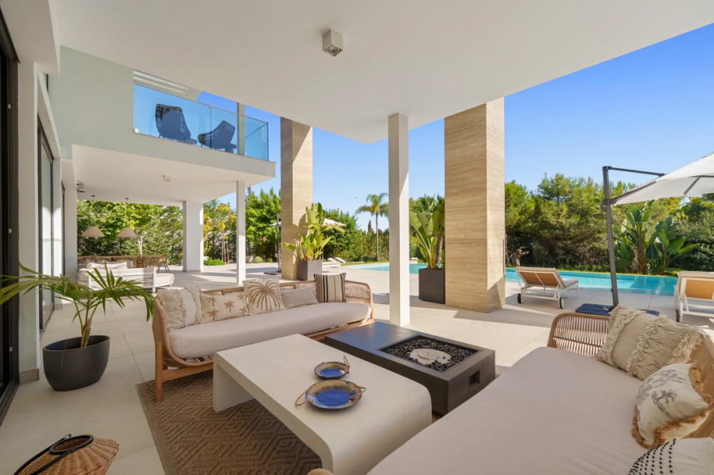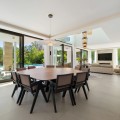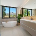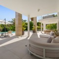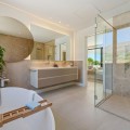- Villa Romano, gelegen in het prestigieuze Altos de Puente Romano aan de Gouden Mijl van Marbella, is het toonbeeld van moderne mediterrane luxe. Deze opvallende residentie met zes slaapkamers en zes badkamers combineert strakke, eigentijdse architectuur met warme, natuurlijke tinten en creëert zo een uitnodigend toevluchtsoord op slechts enkele minuten van het strand en de beste restaurants en uitgaansgelegenheden van Marbella. De kamerhoge ramen laten een zee van licht binnen, terwijl de naadloze overgangen tussen binnen- en buitenruimtes de essentie van het leven aan de Costa del Sol perfect weergeven. De ruime leefruimtes van de villa zijn ontworpen met oog voor zowel stijl als comfort, van de elegante open woonkamer en designkeuken tot de formele eetkamer en stijlvolle entertainmentlounge. Elke slaapkamer is een privétoevluchtsoord met een eigen badkamer, terwijl de master suite beschikt over een spa-achtige badkamer met vrijstaand bad en een adembenemend uitzicht op de berg La Concha. Buiten bieden diverse terrassen, een dakterras met jacuzzi en een spectaculair overloopzwembad het perfecte decor voor ontspanning en gezelligheid. Villa Romano biedt, naast haar schoonheid, een exclusieve en comfortabele levensstijl. Een privégarage, ultramoderne voorzieningen en weelderig aangelegde tuinen zorgen voor comfort in elke hoek, terwijl de veilige locatie in een van Marbella's meest gewilde gated communities gemoedsrust garandeert. Bovendien ligt Villa Romano op korte afstand van het Puente Romano Hotel en het Marbella Club Hotel, twee van de meest prestigieuze resorts die Marbella te bieden heeft, met hun vijfsterrenrestaurants en -faciliteiten. Villa Romano biedt de ultieme Marbella-ervaring: een plek waar verfijning samensmelt met de zonovergoten elegantie van de Gouden Mijl.