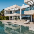 • Luxury Villa with First Line Sea Views and Rustic Country Panorama in Benahavís - Marbella This impressive design villa in prestigious Benahavís, built in 2022, is a true showcase of modern architecture and refined luxury. With a living area of 1,394 m² on a 1,437 m² plot, the property offers an unparalleled combination of space, comfort, and elegance. Inside, four spacious bedrooms await, each with its own en-suite bathroom, ensuring ultimate privacy and comfort. The five luxurious bathrooms are finished with high-quality materials, creating an atmosphere of wellness and sophistication. From almost every room, you can enjoy breathtaking views: direct first line sea vistas combined with a rustic country panorama over the Andalusian hills – a scene that enchants day after day. The villa features a stunning private pool, surrounded by lush gardens and expansive terraces that invite both relaxation and stylish entertaining. For those who appreciate exclusive extras, there is a private cinema, a wine cellar, a gym, a sauna, and even a games room, pure luxury at your fingertips. With an A energy rating, solar panels, and a state-of-the-art home automation system, the property is also sustainable and innovative. A spacious garage and its location within a prestigious gated community guarantee both security and peace of mind, while Marbella, Puerto Banús, and renowned golf courses are only minutes away. With an asking price of € 5,950,000, this is not just an investment in real estate, but above all in lifestyle and prestige. This villa combines modern architecture, premium finishes, and an exceptional location into a dream home for those who demand nothing less than the very best on the Costa del Sol.