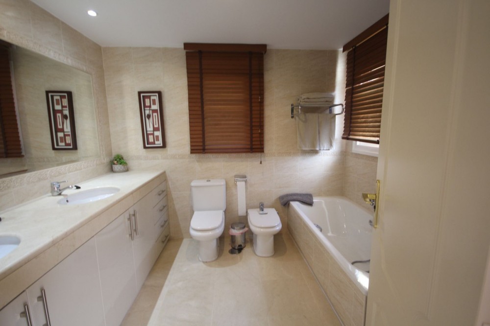 - Fabulous semi-detached house located in Riviera del sol, Mijas Costa, next to the toll that connects with Malaga 20 minutes and Marbella center 10 minutes. Ideal for families due to its comfort, beautiful common areas, two fantastic swimming pools. The property is in very good condition, it consists of 4 bedrooms and two full bathrooms, one en suite, plus a guest toilet. Private garden with maintenance included in the community as well as water. The property has excellent qualities, Siemens appliances, double glazed windows, marble floors, etc. Security cameras throughout the urbanization. Bus stop 3 minutes walk, school bus stops 100 meters away. Ideal to enjoy an excellent vacation or live, beaches, restaurants, shopping center just 5 minutes away...