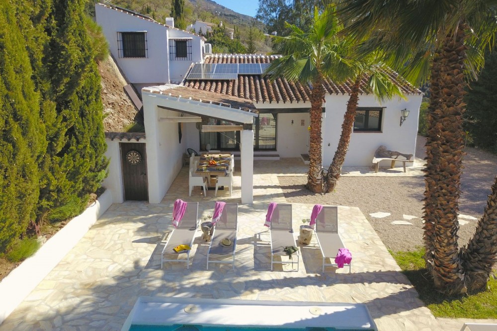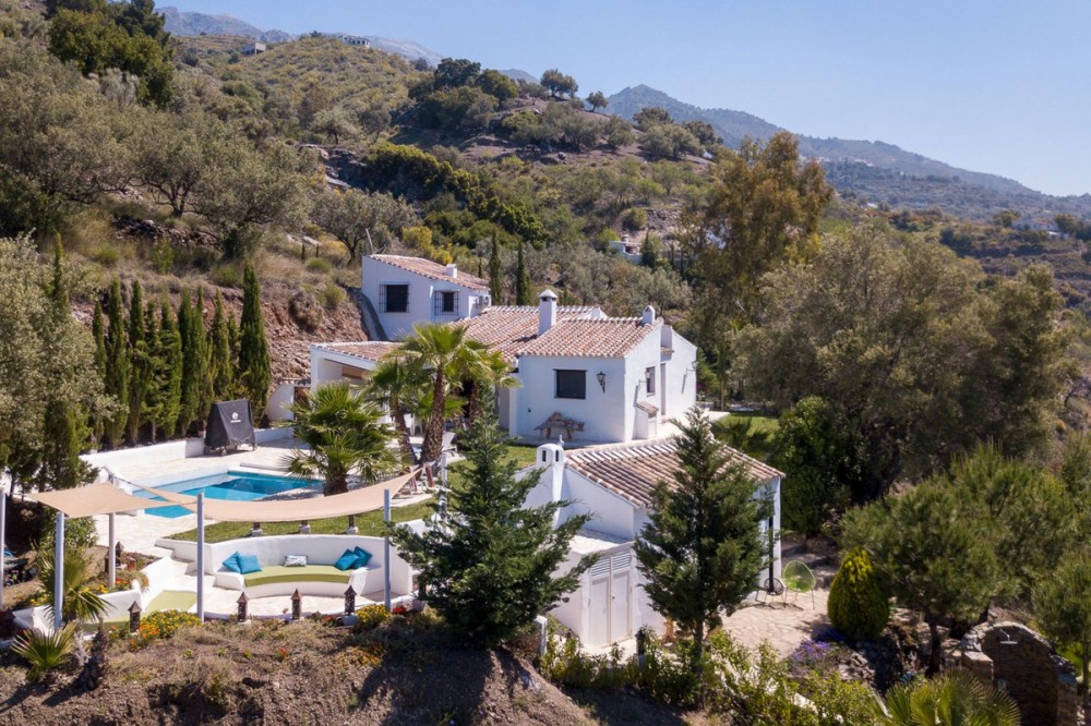 - WE ARE PROUDLY PRESENTING VILLA EL ALEPH - an exclusive boutique villa, beautifully situated in the green hills near Canillas de Aceituno, just 55 minutes from Málaga Airport and 30 minutes from the beaches of Torre del Mar. We are happy to assist our clients throughout the entire process in German with German speaking solicitors, tax advisors and handymen. ACCOMODATION A tasteful villa in a unique location with breathtaking views, privacy and tranquillity combined with easy accessibility and quality. The villa exudes light, space, and modern elegance. High ceilings, tasteful furnishings with quality materials, and large windows offering a wide view of the valley. A heavenly place where you can enjoy the lovely lounge with friends and family until late at night. With its tranquillity and privacy, this villa is the perfect base for those who want to combine luxury, nature, and comfort. THE HIGHLIGHTS ARE: - Good Business Income - The house is sold with all existing furniture and amenities and immediately to move in and operate - A spacious living room with a fireplace - A fully equipped open kitchen with SMEG stove and American fridge - Fast internet connection via Starlink (satellite). Main router with additional mesh point, ideal for remote working inside and outside - The renovation works with high-quality materials were carried out in 2018. Air conditioning in all bedrooms, living room, and casita OUTDOOR AREA Outside, you can enjoy multiple terraces, a heated pool (powered by solar panels), and a beautifully landscaped garden – ideal for long summer evenings. Very special is the built-in outdoor kitchen and BBQ and the Lounge with the wonderful view to the valley. Trampoline, table tennis, and children's play area makes it even more attractive! DREAM VILLA & GUARANTEED INCOME This wonderful property is not only a dream home for you and your family to enjoy, but also a proven investment property: - Fully compliant with tourist permits. - Full utilities when used as a holiday home. - High occupancy rate, even outside school holidays thanks to its popularity with couples and small groups. Thanks to these ready-to-rent possibilities, you immediately enjoy stable income without startup or renovation risks. The already acquired future rental income and bookings will be transferred to the new owner. Important to know, the sales price includes all operation goods and all furniture! Canillas de Aceituno has become a touristic destination in recent years, located at the foot of La Maroma mountain - is not just a typical white mountain village, but a place that combines nature, culture and gastronomy. This mix of facilities and its authentic charm has put the village on the tourist map in recent years. Please call us for further information. As native Germans, we are happy to help you