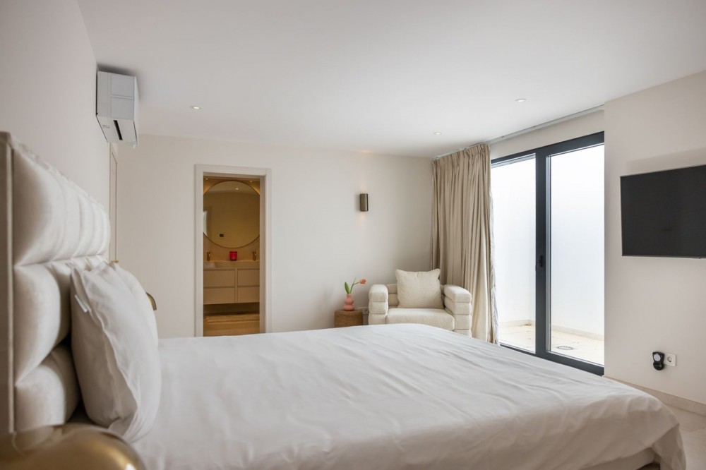 - Stunning Contemporary Villa with Sea & Mountain Views This exceptional 5-bedroom villa effortlessly combines cutting-edge design with luxurious comfort, offering panoramic views of both the sea and surrounding mountains. Set in a peaceful and prestigious location, this contemporary home is finished to the highest standards throughout, making it ideal as a family residence, holiday escape, or premium rental investment. The property boasts spacious, light-filled interiors, including five generously sized bedrooms and a dedicated office — perfect for remote work or study. Every detail of the fit-out has been carefully considered, with top-quality materials and sleek, modern finishes throughout. Designed for both comfort and security, the villa includes a high-tech alarm system, electric shutters, and a large underground garage with ample space for multiple vehicles. Outdoors, the heated swimming pool is surrounded by elegant terraces and landscaped gardens — the perfect setting for relaxation or entertaining. This villa truly offers a luxurious lifestyle in a breathtaking setting — a rare opportunity not to be missed.