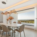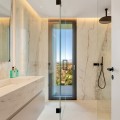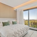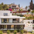 • Set on a south-facing plot of over 1,000 m², this newly built villa delivers sweeping views of the Mediterranean Sea and surrounding mountains. Developed by Sands Villas and designed by Gonzalez Jacobson, the property combines sharp modern architecture with natural textures and floor-to-ceiling glass for seamless indoor-outdoor living. The main level features an open-plan layout where the living, dining and kitchen areas flow to expansive terraces through full-width sliding doors. A private infinity pool, covered dining lounge and landscaped gardens create a true extension of the interior spaces. A private driveway with covered carport provides convenient access and secure parking. Inside, the villa is finished to a high standard with elegant stone surfaces, warm wood cabinetry and discreet lighting. Generous bedrooms include stunning ensuite bathrooms, while the master suite offers direct terrace access and panoramic sea views. With its modern design, private setting and exceptional vistas, El Rosario 430 is a standout contemporary home in Marbella East.