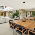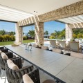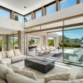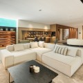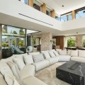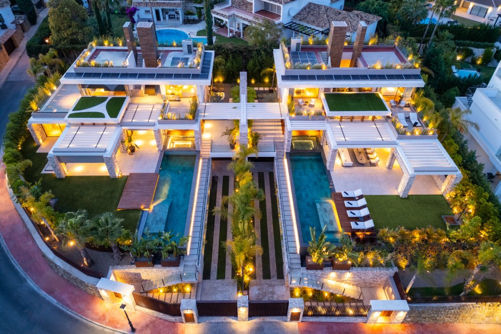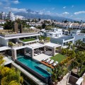 - Deze villa, elegant gelegen op de groene hellingen van Nueva Andalucía, is een triomf van moderne elegantie en luxueus design, een belichaming van serene verfijning. Wanneer u het pand nadert, wordt u begroet door een statige entree, omlijst door strakke lijnen en natuursteen, die leidt naar een majestueuze houten deur die de weelde binnenin verraadt. Stap binnen en u wordt meteen getroffen door het gevoel van ruimte en licht dat het interieur kenmerkt. De ruime hal, met zijn hoge plafonds en panoramische ramen, nodigt het adembenemende landschap uit tot het hart van het huis. De open woonkamer is een symfonie van eigentijdse stijl, waar kamerhoge glazen wanden de grenzen tussen binnen en buiten doen vervagen. De kamer wordt verankerd door een minimalistische open haard en is ingericht met luxe meubels die zowel comfort als klasse uitstralen, waardoor het een ideale setting is voor zowel ontspanning als entertainment. Aangrenzend aan deze indrukwekkende ruimte bevindt zich een keuken die een waar culinair meesterwerk is. Uitgerust met ultramoderne apparatuur en op maat gemaakte kasten, beschikt de keuken over een centraal kookeiland dat zowel een praktische werkruimte als een gezellige ontmoetingsplek is. De keuken loopt naadloos over in de eetkamer, waar u kunt genieten van hetzelfde weidse uitzicht op de Middellandse Zee en de glooiende heuvels, waardoor elke maaltijd een visueel genot wordt. De slaapvertrekken van de villa zijn met onberispelijke smaak ontworpen. De master suite, een waar toevluchtsoord, biedt directe toegang tot een privéterras waar u kunt genieten van het weidse uitzicht. De en-suite badkamer is een oase van verwennerij, met een vrijstaand bad met uitzicht en een inloopdouche met luxe sanitair. De overige slaapkamers zijn al even verfijnd, elk met een eigen badkamer en een privéterras, waardoor gasten kunnen genieten van ongeëvenaard comfort en privacy. De benedenverdieping biedt een speciale ruimte voor ontspanning en vrije tijd. Een thuisbioscoop belooft een bioscoopervaring in een luxueuze omgeving, terwijl de aangrenzende bar perfect is voor sociale bijeenkomsten. Het hoogtepunt is de spa, met een volledig uitgeruste fitnessruimte, een sauna en een stoombad – een oase van rust. Buiten is de villa al even betoverend. Het infinity zwembad, glinsterend in de mediterrane zon, lijkt over te gaan in de horizon en biedt een oase van rust. Het ruime terras eromheen, ingericht met elegante ligstoelen en een eethoek, is perfect om buiten te genieten te midden van zorgvuldig aangelegde tuinen. Kortom, deze villa in Nueva Andalucía is niet zomaar een woning, maar een subliem toevluchtsoord: een combinatie van moderne luxe en natuurlijke schoonheid die een ongeëvenaard elegante woonervaring biedt.