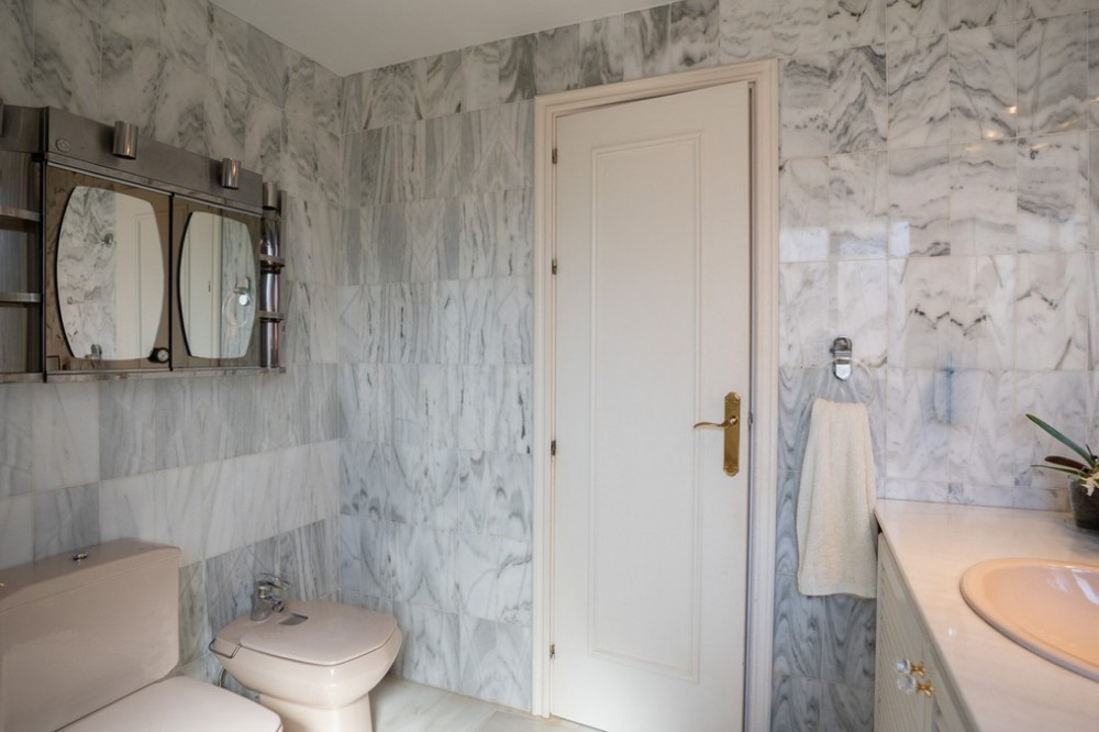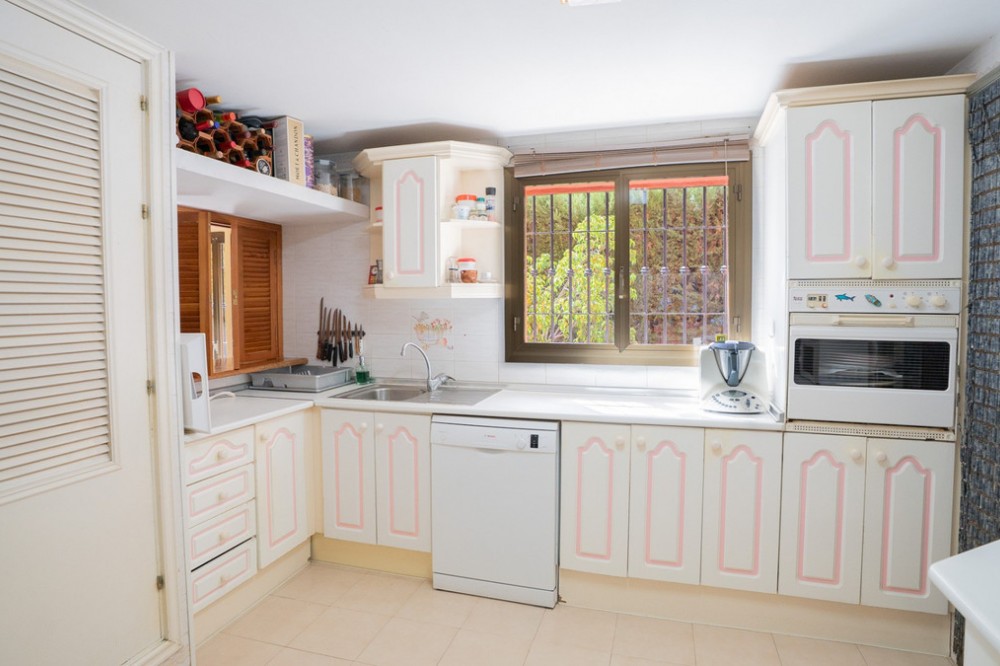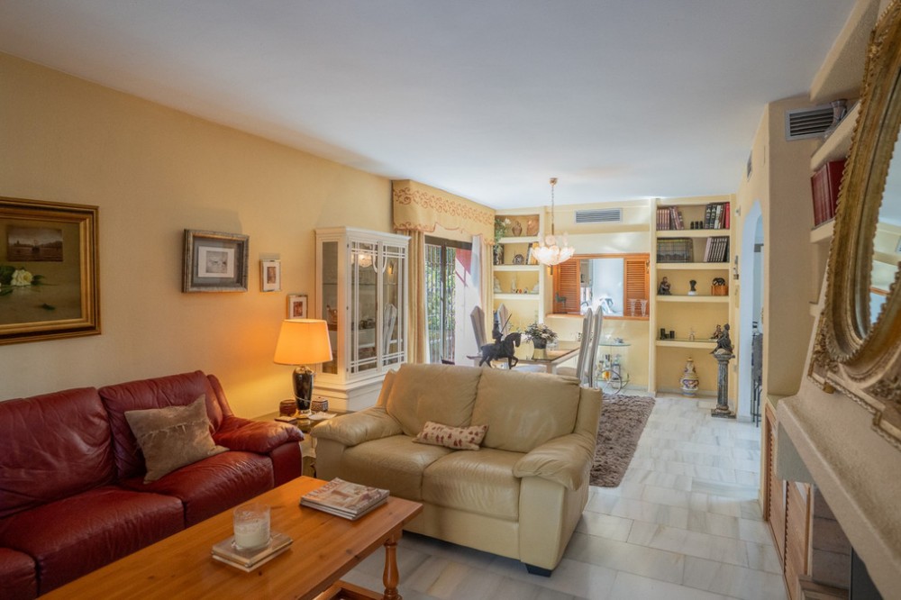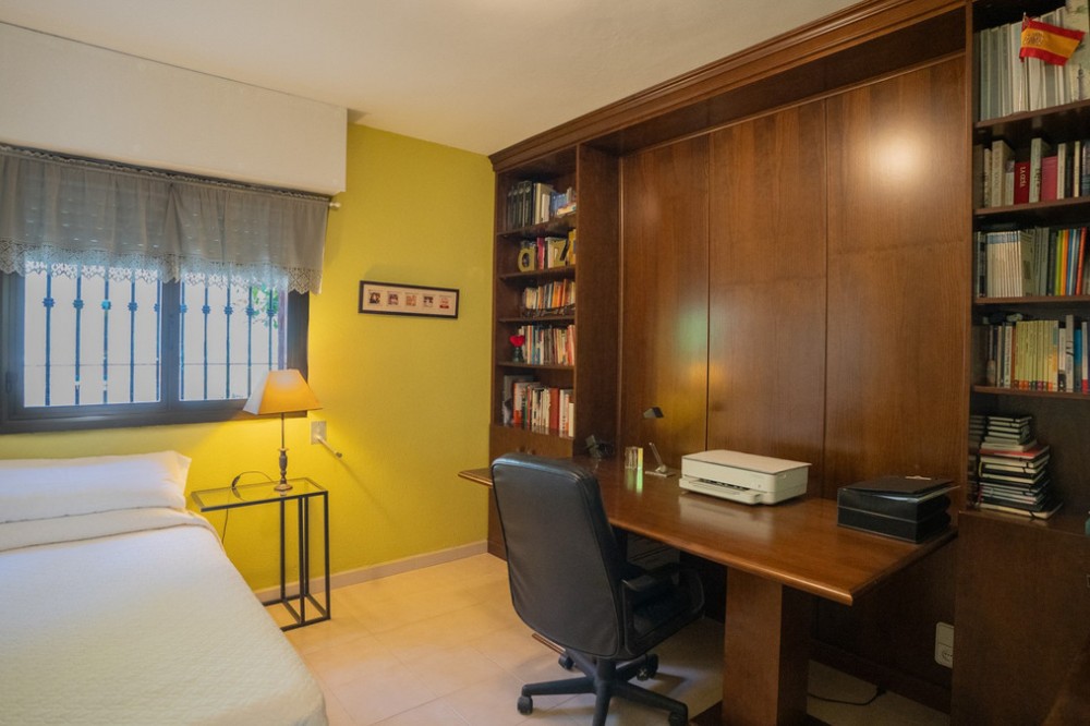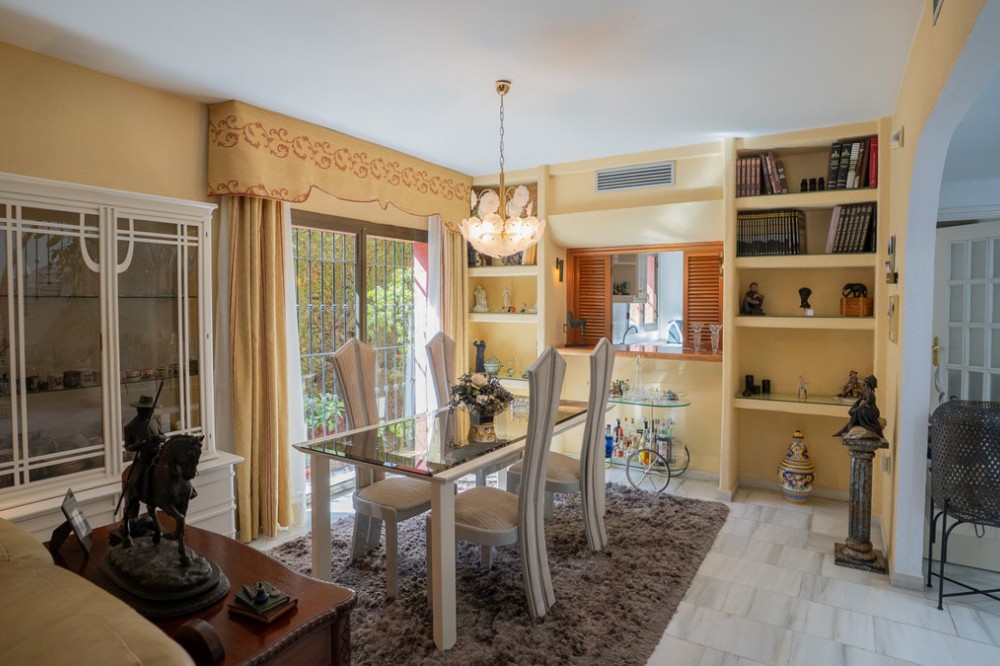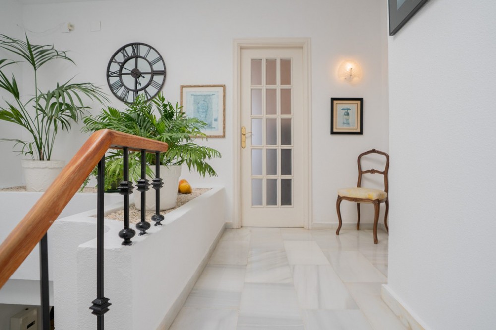 - Deze villa biedt comfort, privacy en gemak in een eersteklas woonwijk op slechts 1 km van Puerto Banús. De woning staat op een perceel van 512 m² met een bebouwde oppervlakte van 204 m² en is bereikbaar via twee straten – Las Yedras en Las Camelias – en profiteert van het feit dat er geen gemeenschappelijke kosten of garagekosten zijn. De begane grond beschikt over een uitnodigende hal, een ruime woon- en eetkamer, een volledig uitgeruste keuken, een wasruimte, een complete badkamer en een kantoor of extra slaapkamer. Op de eerste verdieping vindt u drie slaapkamers, twee badkamers, lichte gangen met dakramen en een terras. De villa is ontworpen voor zowel permanent wonen als het ontvangen van gasten en is voorzien van airconditioning, verwarming, een open haard en een glasvezelverbinding. De buitenruimte omvat een veranda met een barbecue en een eethoek voor de zomer, een privézwembad en prachtig aangelegde tuinen met sinaasappel-, citroen- en olijfbomen, plus een weelderige bougainvillea. Andere pluspunten zijn een garage voor drie auto's, een berging en directe toegang tot de straat voor extra gemak. Met essentiële voorzieningen zoals een supermarkt en gastronomische restaurants op loopafstand, combineert deze woning comfort, exclusiviteit en een onovertroffen locatie.