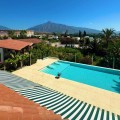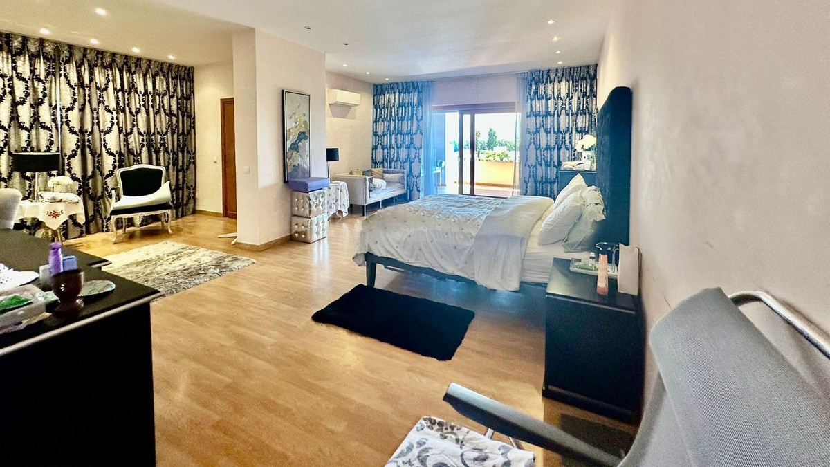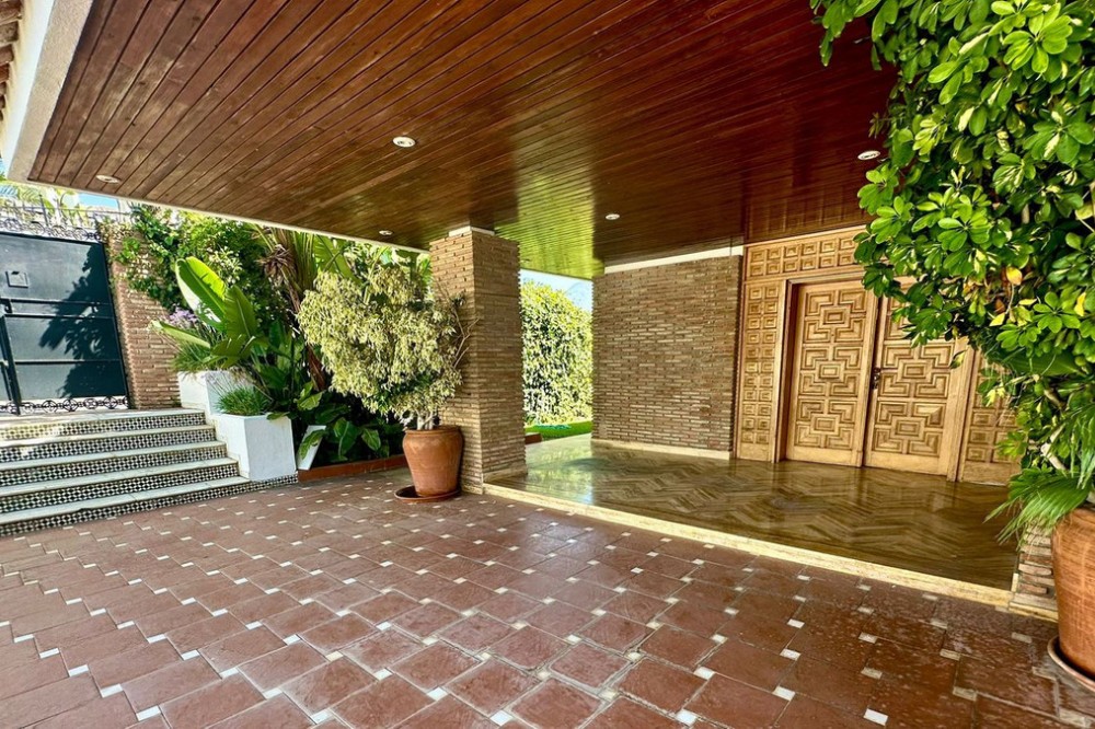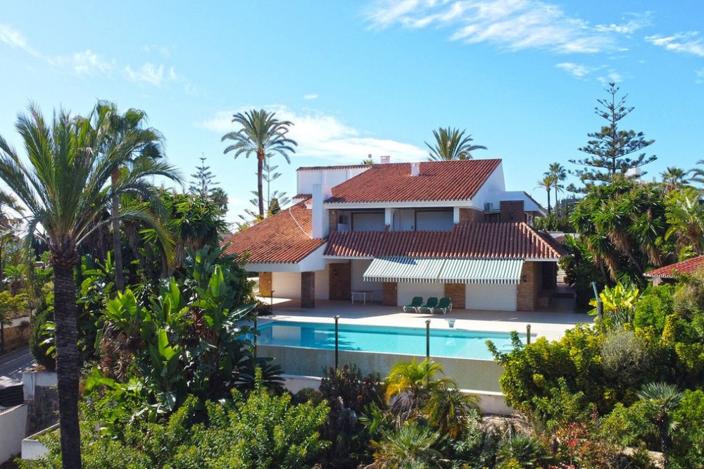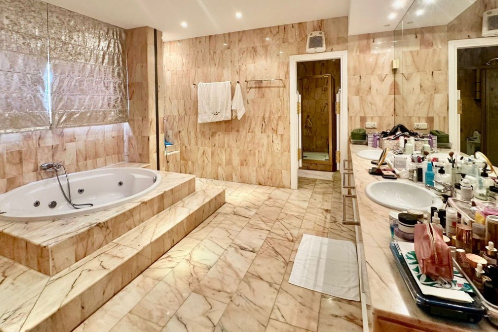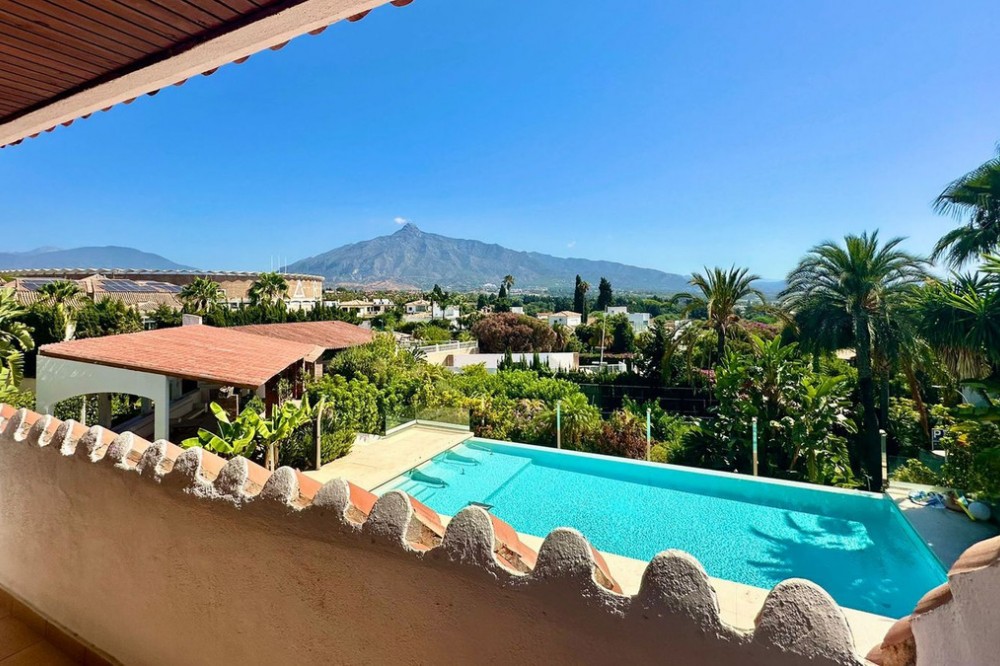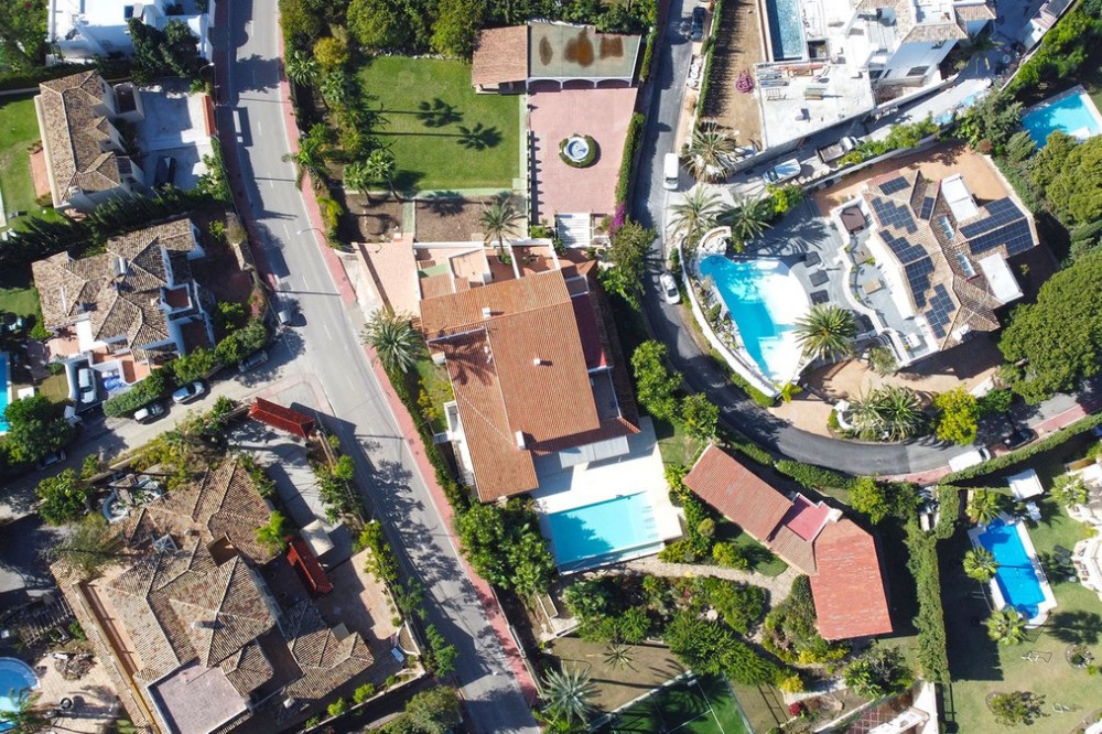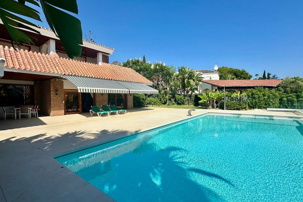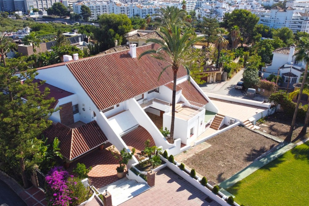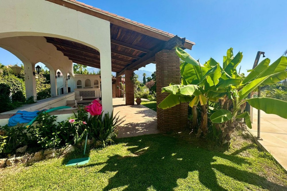 • Attentie investeerders/ontwikkelaars. Exclusief object op een bevoorrechte locatie, uniek op de markt, op slechts 200 meter van Puerto Banús. Ruime villa in goede staat, met een totale bebouwde oppervlakte van 834 m² plus 573 m² aan terrassen en veranda's op een perceel van 4.348 m². Gebouwd in 1981. Gelegen op het oosten. Het hoofdgebouw bestaat uit een ruime entreehal, gastentoilet, grote woonkamer met dubbele plafondhoogte, aparte eetkamer, keuken, zitkamer met toegang tot het terras, een slaapkamer met en-suite badkamer en aparte ingang, en een service-ingang. De bovenverdieping omvat een zitkamer, een tweede slaapkamer met toegang tot een balkon en en-suite badkamer, een derde slaapkamer met en-suite badkamer, een vierde slaapkamer met toegang tot een terras met prachtig uitzicht op La Concha en de zee, en een grote master suite bestaande uit een slaapkamer, kleedkamer, grote badkamer en terras met uitzicht. Ruime parkeerplaats en garage voor 5 auto's. De overige gebouwen bestaan uit een garage voor één auto, een slaapkamer met badkamer voor de chauffeur, een slaapkamer met badkamer voor het personeel en een wasruimte. Grote barbecueplaats met een ruim overdekt terras. Infinity pool. Paddle tennisbaan. Prachtige tuin met veel bomen. Het perceel is geclassificeerd als verdicht stedelijk gebied (SUC) en heeft de bestemming UE-4 Vrijstaande eengezinswoning, met een minimale perceelgrootte van 1.000 m² en een bebouwbaar oppervlak van 30%. Vanwege de hoge vastgoedprijzen in de omgeving zal dit perceel naar verwachting aanzienlijke winst opleveren voor investeerders/ontwikkelaars die tot vier villa's willen bouwen.