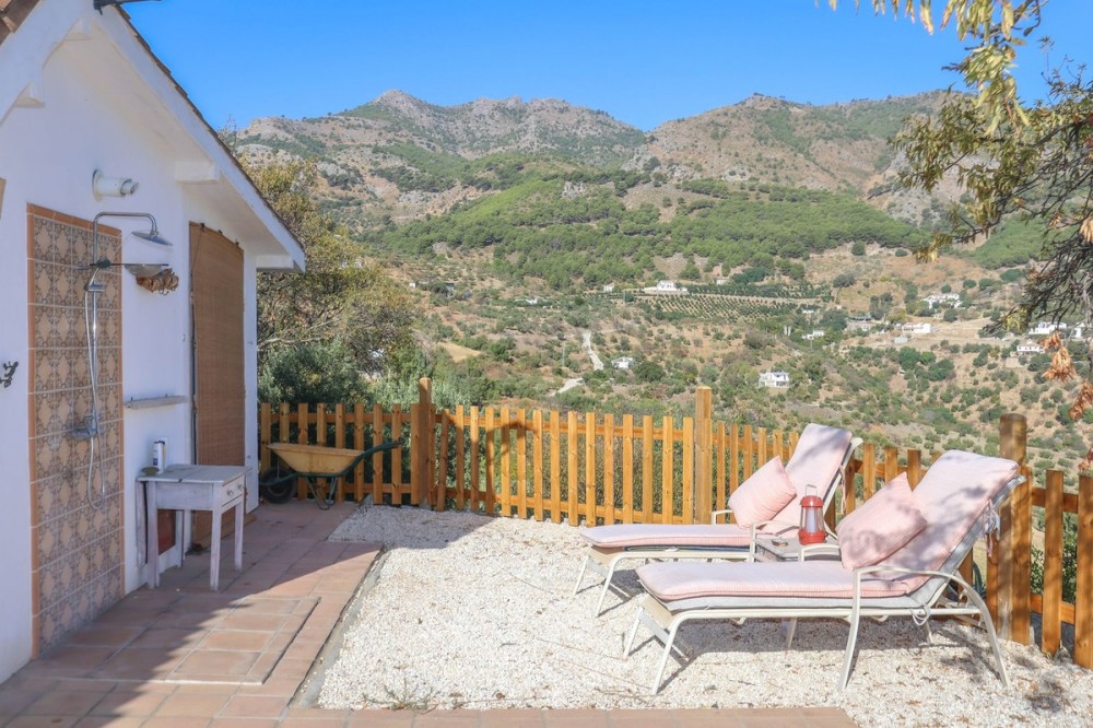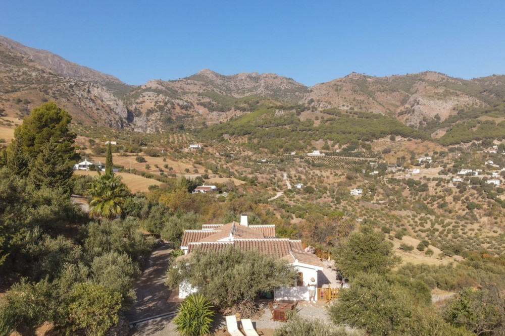- STUNNING, STUNNING, STUNNING . Breathtaking open views . Exceptional build quality . Beautifully presented throughout . All bedrooms with ensuite bathrooms . Peaceful and relaxing setting . Harvest your own olives for oil From the moment you arrive, this property captivates you. The private driveway winds gently through beautifully maintained countryside, leading to the immaculate home below. Property Details: Double wooden Andalusian doors open into a welcoming entrance hall, which flows seamlessly into the spacious lounge. Stretching across the rear of the property, this room perfectly frames the spectacular views of Casarabonela and the distant mountains. Despite its generous proportions, the lounge feels warm and inviting, filled with natural light from patio doors and large windows, and enhanced by a striking vaulted ceiling. The focal point of the room is a charming chimney breast with a wood-burning stove — ideal for cozy evenings. The traditional Andalusian-style kitchen adjoins the lounge and includes the ever-desirable pantry. From here, a breakfast patio offers a shady retreat — the perfect spot to relax and enjoy the natural surroundings. There are two spacious bedrooms, each with its own ensuite bathroom and fitted wardrobes. Positioned on opposite sides of the home, the bedrooms ensure privacy for both owners and guests. The guest suite even enjoys a private terrace — a peaceful haven for morning coffee or evening sunsets. The beauty of this property extends beyond the home itself. The land has been lovingly cared for by the current owner, with a selection of fruit trees and olive groves waiting to be enjoyed. Immerse yourself in the Andalusian countryside — and live your best life. Outdoor area and Land: Sloping land, mainly Old Olive Trees Views: Village and Mountains Access: Mostly concrete road, last part track but no problem