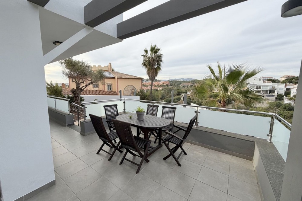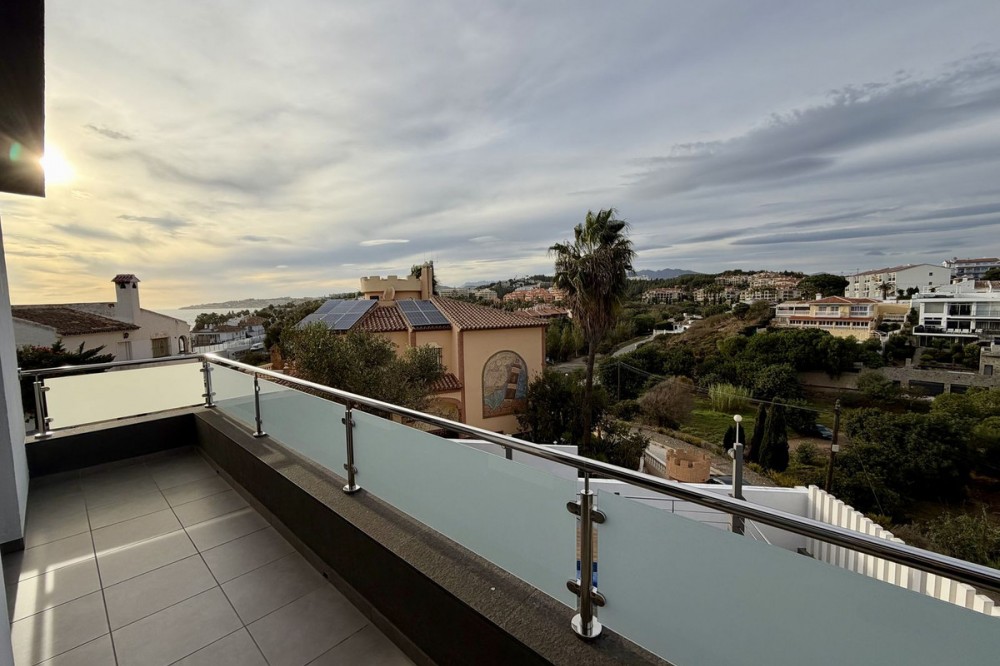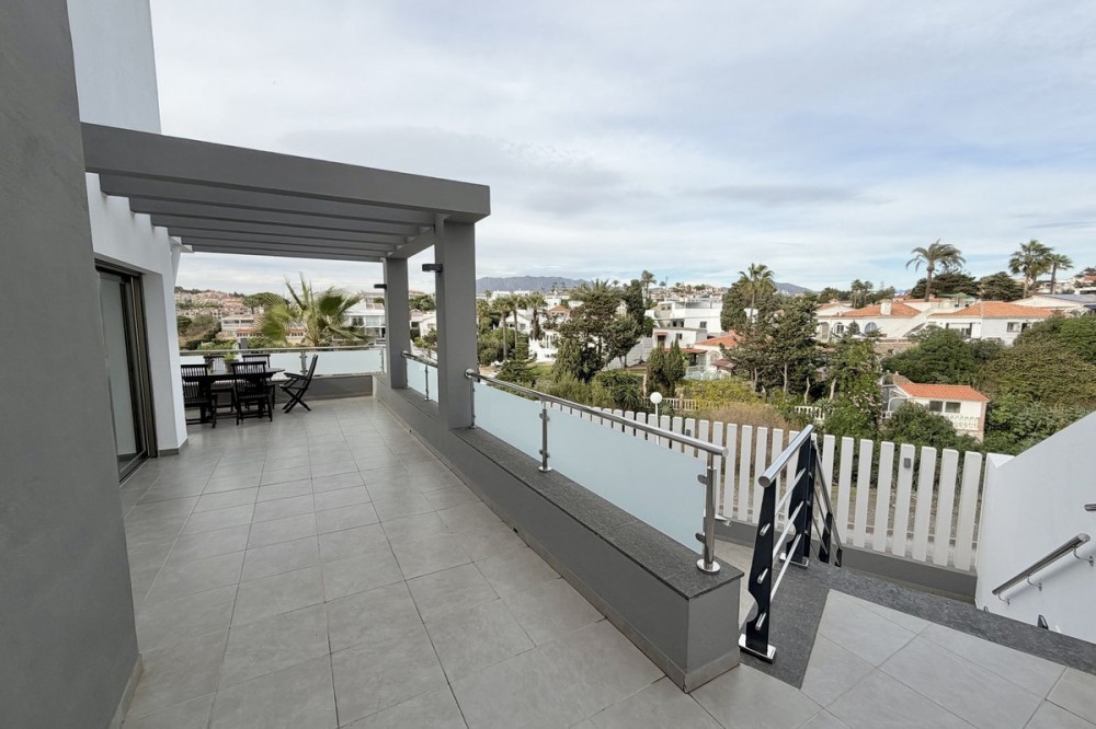 • This magnificent detached villa combines spaciousness, functionality, and elegance in a peaceful residential setting. Built on a 295 m² plot, it offers a comfortable and bright layout, ideal for enjoying both indoor and outdoor living throughout the year. Recently refurbished with top-quality materials, the property stands out for its modern design and premium finishes. On the main floor, you will find a large and bright living–dining room with direct access to the terrace and pool area, perfect for family gatherings or moments of relaxation. The independent kitchen, modern and functional, provides a spacious and well-equipped environment while preserving privacy from the social areas. On this same level, there is a guest toilet and a full bathroom with access from the exterior, designed to serve the pool area directly. Next to this exterior-oriented bathroom, the property also features an independent laundry room and a cellar that could easily be converted into a fourth bedroom, offering great versatility. The first floor houses three bedrooms, all very bright and equipped with built-in wardrobes. They share a full bathroom, carefully designed to provide comfort and style. The master bedroom also enjoys access to a private terrace with open views. The large garage can accommodate up to four vehicles and offers additional space for storage, a gym, or a workspace. The various terraces and the private pool provide a wonderful sense of space and wellbeing, completing a home ready to be enjoyed in maximum comfort. Located in El Faro (Mijas), just a short walk from the beach, it offers the perfect combination of residential tranquillity and proximity to the sea. Key features • Automatic security shutters • Centralised air conditioning • Saltwater pool electrolysis system • 25,000-litre water tank • Pre-installation for solar panels