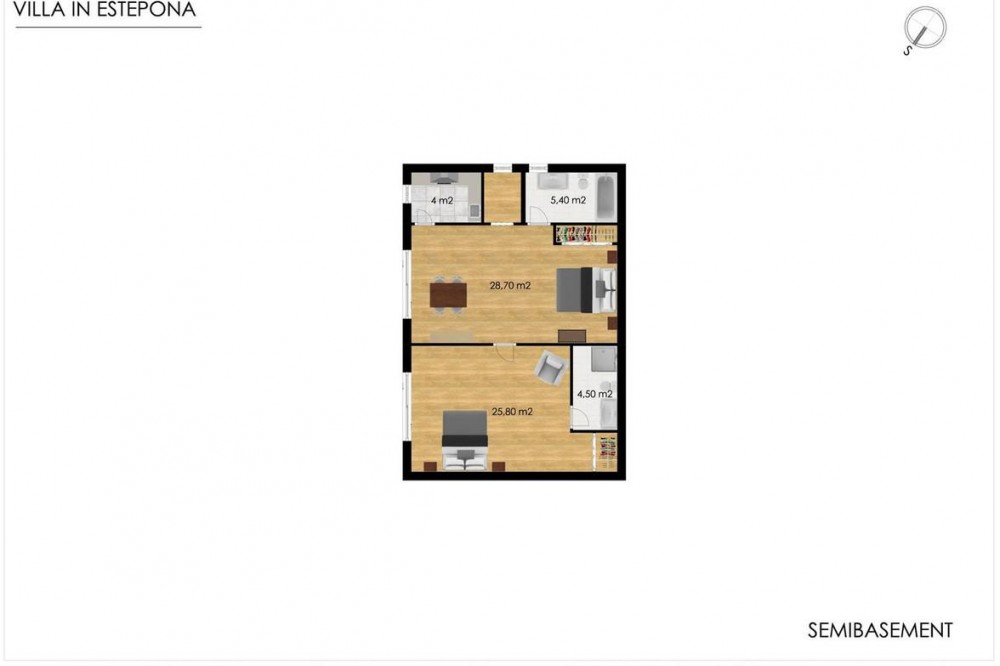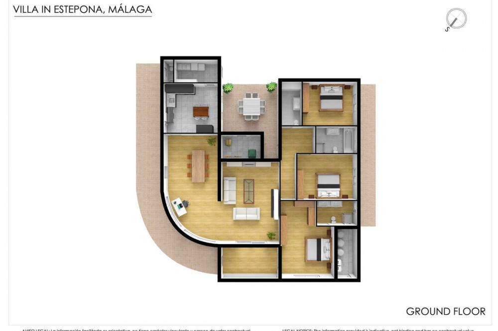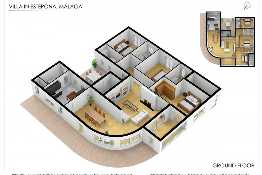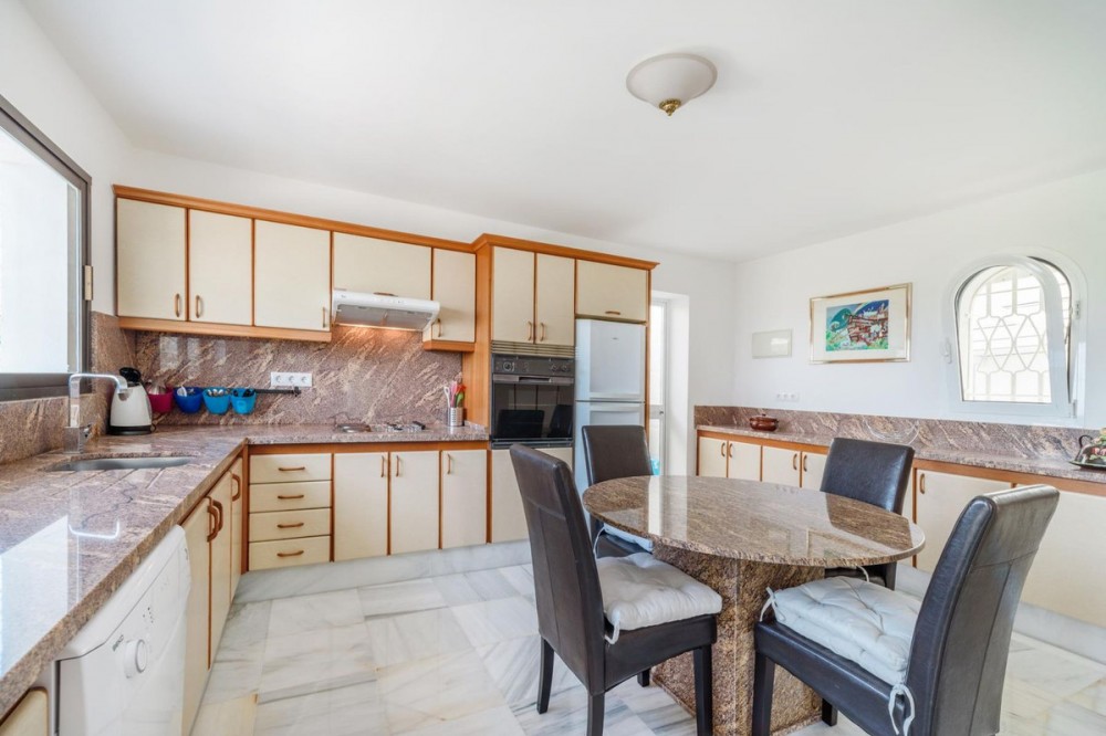 • Magnificent property with sea views and 3,600 m² plot in Estepona This exceptional property in Estepona boasts a spacious 3,600 m² plot and a privileged location with beautiful sea views stretching as far as Africa and Gibraltar. The main house, with its 3-metre-high ceilings, impresses with a spacious living room whose 180-degree window front opens up views of nature and the sea. An imposing 2-metre granite fireplace with glass doors forms the heart of the room and can heat the entire house. In addition, underfloor heating in the three bedrooms ensures pleasant warmth. The bedrooms and bathrooms in the main building have individually thermostat-controlled underfloor heating via a large solar panel system and a separate 600-litre boiler. All three bedrooms have spacious bathrooms, with the master bathroom equipped with a whirlpool bath – ideal for relaxing hours. The light-flooded conservatory offers a fantastic view of the well-tended garden and the large pool. The spacious kitchen is equipped with high-quality electrical appliances and is complemented by an adjoining utility room. The property also offers two separate granny flats, each with a private entrance, its own kitchen and two bathrooms – perfect for guests, staff or as independent units. A completely separate, cosy pool house with a kitchen, utility room, fireplace and bathroom creates additional living or relaxation options right by the pool. The large swimming pool is heated by solar panels and heat exchangers. Hot water is produced by the solar panel system. Outdoor area & amenities. Spacious tiled terraces • Garage for two vehicles • Several basement rooms • Extensive garden with large pool • Absolute tranquillity yet close to restaurants, hospital and the sea. *** Only a 5-minute walk to the beach The property was extensively modernised in 2014 with a Swiss architect and has an energy certificate category A/B, a rather rare energy efficiency rating on the Costa del Sol. An ideal home for large families who value peace and privacy while being conveniently close to all restaurants, bars and shops. This property combines spaciousness, warmth and Mediterranean charm in a unique way.