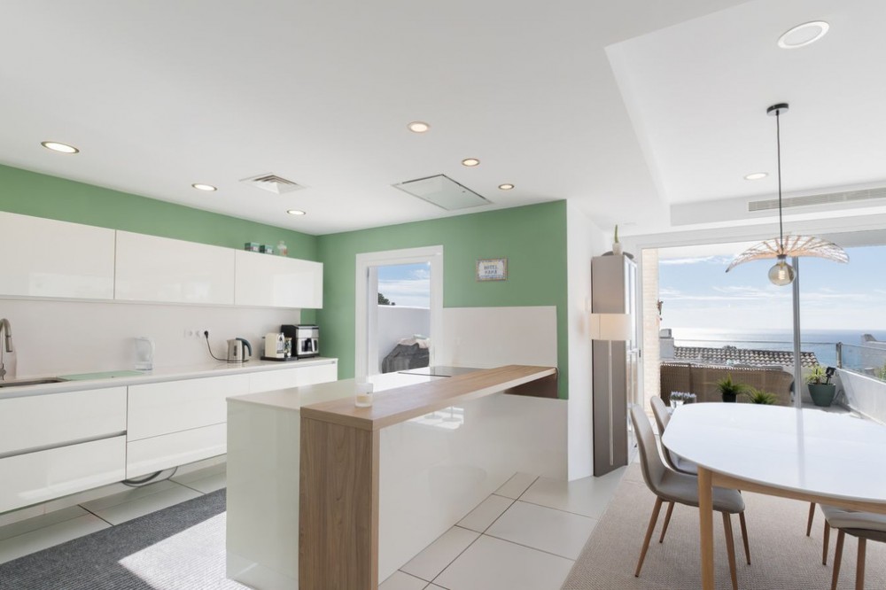 - Modern villa with spectacular panoramic views of the Mediterranean, located in one of the most exclusive areas of Benalmádena, next to the Casablanca natural park. In a peaceful setting close to the village, this south-facing, bright property offers spacious terraces, large windows, and a sophisticated design that seamlessly blends indoor and outdoor living. It also features installed solar panels for greater energy efficiency. Distributed across three floors connected by a private lift, it includes four en-suite bedrooms, a guest toilet, a fully equipped kitchen, a laundry room, and an additional 40 m² living area on the garden level. The development offers an elegant social club with a swimming pool, gym, and privileged views of the sea and the bay of Fuengirola. Excellent location, just 800 meters from the Torremuelle train station and close to all amenities.