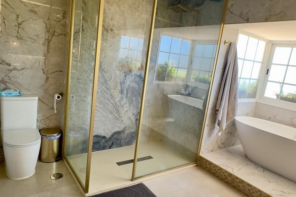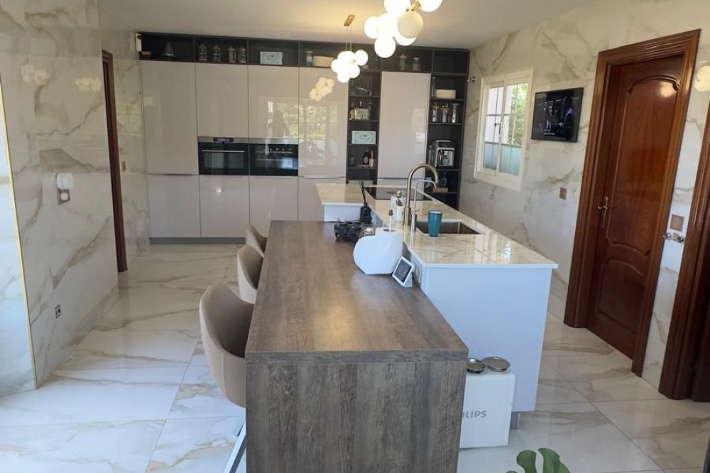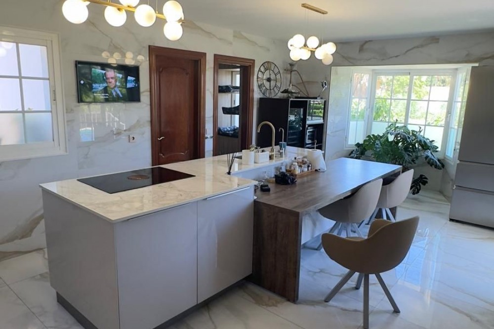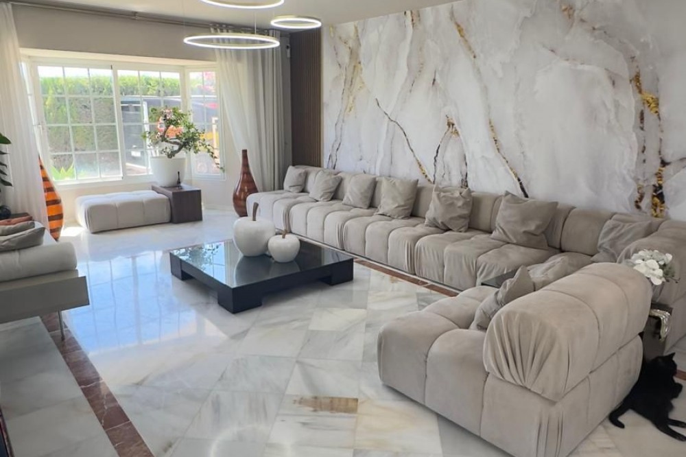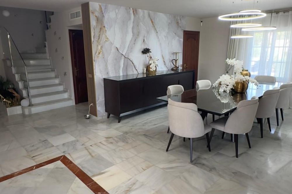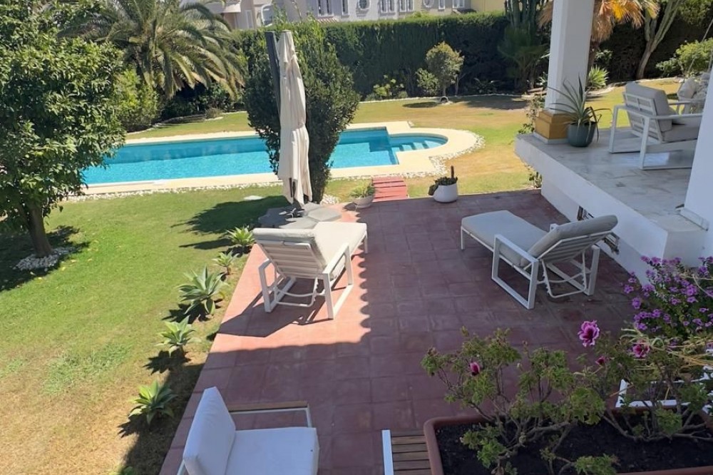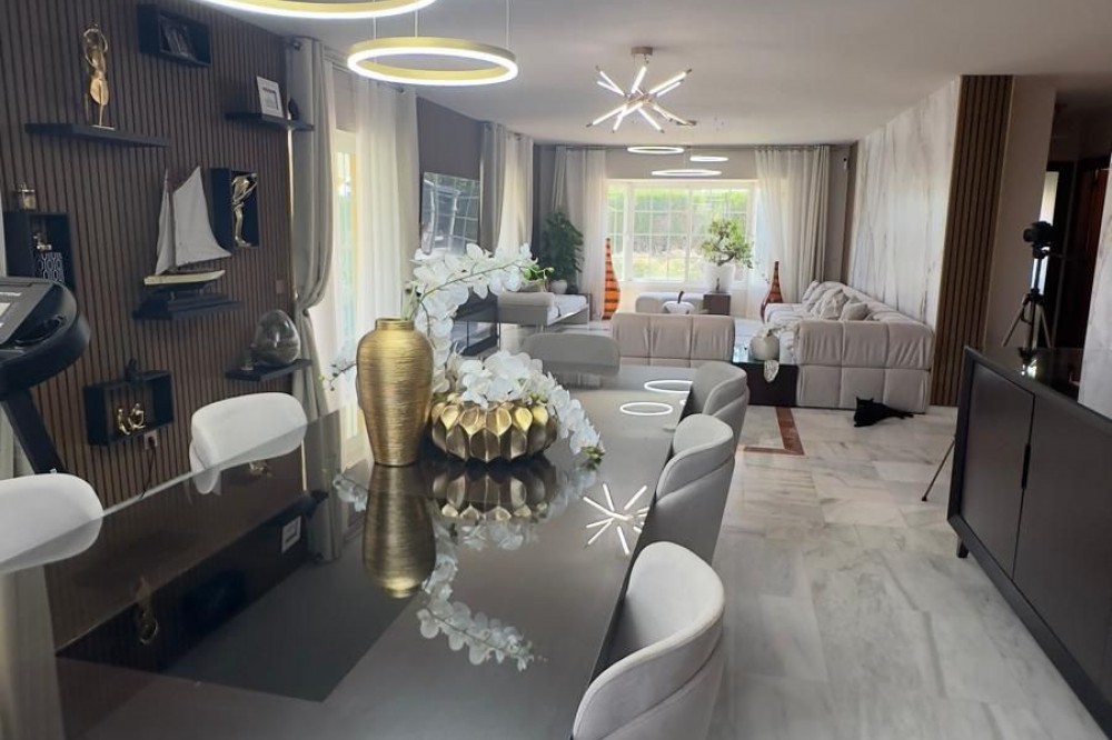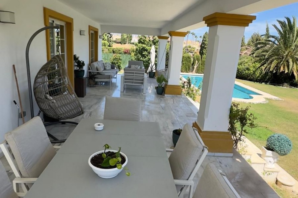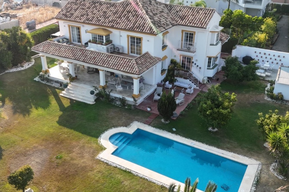 - Vrijstaande villa, Guadalmina Alta, Costa del Sol. 7 slaapkamers, 7 badkamers, bebouwd 623 m², terras 60 m², tuin/perceel 1400 m². Ligging: Dichtbij golfbaan, Dichtbij winkels, Dichtbij scholen. Oriëntatie: Noordoost. Staat: Goed, Recent gerenoveerd. Zwembad: Privé. Klimaatregeling: Airconditioning, Centrale verwarming. Uitzicht: Panoramisch, Tuin, Zwembad. Kenmerken: Overdekt terras, Inbouwkasten, Dichtbij openbaar vervoer, Privéterras, Satelliet-tv, WiFi, Berging, Bijkeuken, Marmeren vloer, Barbecue, Kelder. Meubilair: Volledig gemeubileerd. Keuken: volledig ingericht. Tuin: Privé. Beveiliging: Afgesloten complex, alarmsysteem, 24-uurs beveiliging, kluis. Parkeren: Meer dan één, privé. Nutsvoorzieningen: elektriciteit, drinkwater, gas. Categorie: Wederverkoop.