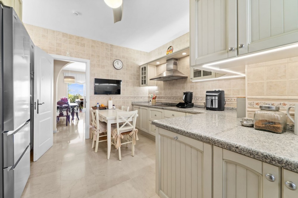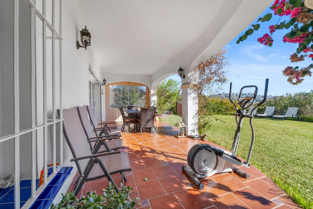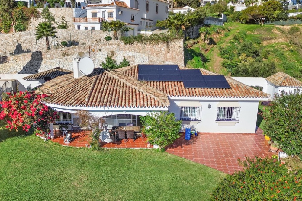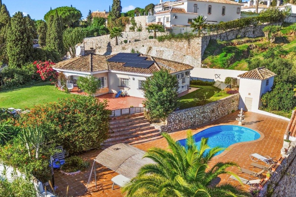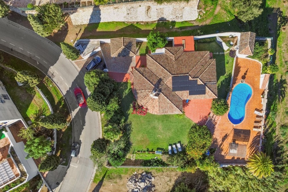 - Stunning single-level villa with exceptional outdoor living – Mijas Golf Discover this beautifully presented single-level villa set in the peaceful and prestigious Mijas Golf area. Positioned on an impressive 1,150 m² plot, this home offers outstanding outdoor living with spacious terraces, a fully equipped outdoor kitchen, lush Mediterranean gardens, private garage and a generous sun-drenched pool area ideal for entertaining or simply relaxing in complete privacy. Inside, the villa is in immaculate condition and boasts 4 bright and well-proportioned bedrooms along with 3 elegant, modern bathrooms. Recently installed solar panels ensure excellent energy efficiency and reduced utility costs — a smart and sustainable choice for your new home. The location is perfect for anyone looking for tranquility without sacrificing convenience. You’re just minutes from renowned golf courses, local shops, charming restaurants and all essential services. Nature lovers will appreciate the nearby walkways and green zones, ideal for morning strolls or outdoor activities. Highlights: Elegant single-level villa in pristine condition Large 1,150 m² plot with beautifully designed outdoor spaces Outdoor kitchen, private garage and spacious pool area 4 bedrooms & 3 stylish bathrooms Solar panels for reduced energy consumption Peaceful location close to golf, amenities and nature