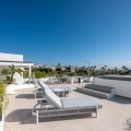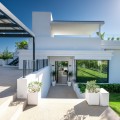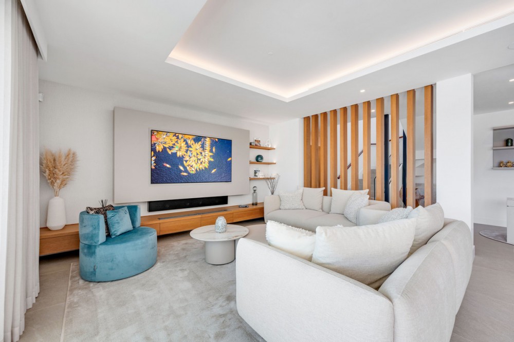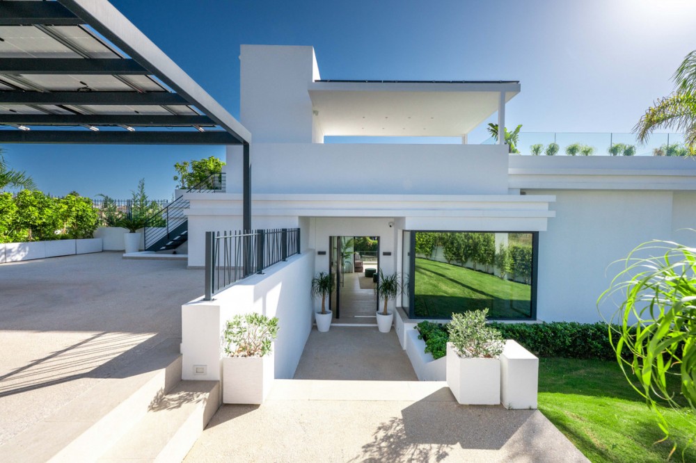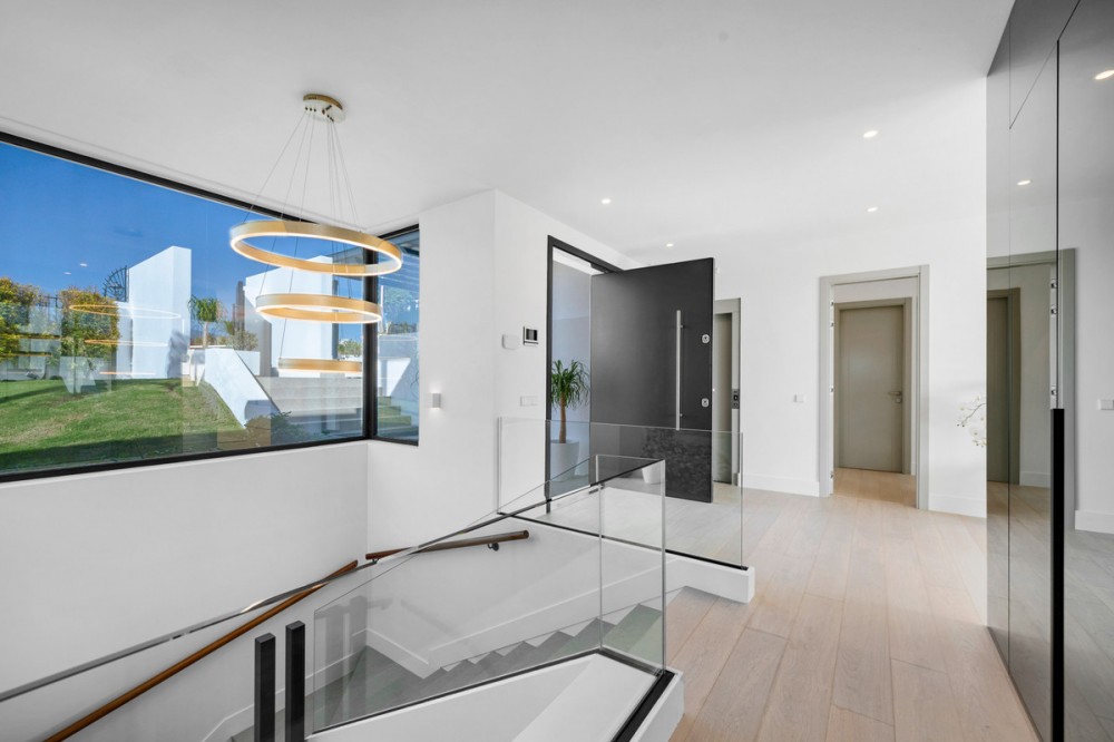 - Perfectly set within the exclusive La Resina Golf community, this is a modern four-level residence crafted by renowned architect Francisco Martínez Galván. With 674 m² of refined living and 249 m² of terraces, it delivers bold design, effortless luxury, and a seamless indoor-outdoor lifestyle. Arrival A private driveway leads to the top-floor entrance, where sweeping views of the Mediterranean and La Resina Golf Course immediately set the tone. Clean architectural lines, abundant natural light, and striking geometry create a stunning first impression. Main Living The heart of the home is an open-plan living and dining area anchored by a sculptural natural-stone kitchen island, supported by a discreet secondary kitchen. Floor-to-ceiling windows slide open to the infinity saltwater pool and lush tropical gardens, forming a private oasis for relaxation and entertaining. Two guest suites, integrated sound, and smart-home readiness complete this level. Upper Level The entire floor is designed for pure privacy. The master suite features a generous terrace with breathtaking sea views, a custom walk-in wardrobe, and a marble bathroom with a freestanding tub. A second en-suite bedroom and a flexible office/TV room enhance the space. Lower Level A luxury wellness and entertainment hub: cinema room, glass-fronted wine cellar, full gym, sauna, steam room, and cold plunge. A games room with designer bar, a cozy second living area, and two garden-level en-suite bedrooms create the perfect retreat. Additional features include a panic room, storage, machine room, and full underfloor heating. Lifestyle & Location La Resina Golf offers privacy, security, and contemporary architectural harmony. Nearby are the International American College, Bossa Café’s padel courts, everyday amenities, and Estepona’s beaches and marina—just minutes away. Malaga Airport is a smooth 45-minute drive. Solarium With full 360 degree views, you feel on top of the world. With stunning views to Gibraltar and the Atlas Mountains in North Africa! Full kitchen including built in top of the range BBQ, fridge, ice machine etc State of the art Jacuzzi to enjoy a sundowner. Villa One is a statement of modern coastal living—where architecture, comfort, and lifestyle meet in perfect balance.