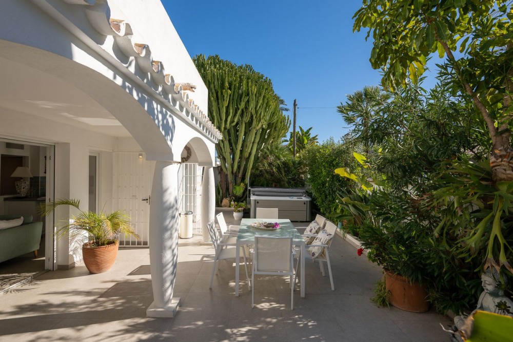 - Charming Coastal Gem – Just Steps from the Beach! Discover this detached villa located only 150 metres from the beach in the highly desirable residential area of Marbesa. This beautifully renovated, single-level home offers 2 bedrooms and 2 bathrooms and is ready to move into. External stairs lead to a spacious rooftop terrace where you can enjoy stunning sea views and unforgettable sunsets, with views stretching to the African coastline and Gibraltar. The property features a cosy outdoor terrace with a jacuzzi and garden area — perfect for barbecues and relaxing Mediterranean evenings with family and friends throughout the year. Ideally situated within walking distance of a supermarket and popular restaurants such as Moosa Bay, Club 200 and Simbad. Marbella town centre is just a 10-minute drive away, and Málaga Airport can be reached in approximately 35 minutes. An exceptional opportunity not to be missed! Detached Villa, Marbesa, Costa del Sol. 2 Bedrooms, 2 Bathrooms, Built 90 m², Terrace 181 m², Garden/Plot 268 m². Setting : Beachfront, Beachside, Close To Sea, Close To Schools. Orientation : South East, South, South West. Condition : Excellent. Climate Control : Air Conditioning, Hot A/C, Cold A/C. Views : Sea, Garden. Features : Covered Terrace, Fitted Wardrobes, Near Transport, Private Terrace, Solarium, Storage Room, Ensuite Bathroom, Jacuzzi, Barbeque, Double Glazing, Fiber Optic. Furniture : Optional. Kitchen : Fully Fitted. Garden : Private, Easy Maintenance. Security : Electric Blinds, Alarm System, 24 Hour Security. Parking : Private. Category : Beachfront, Holiday Homes, Investment, Luxury, Resale, Contemporary.