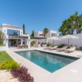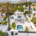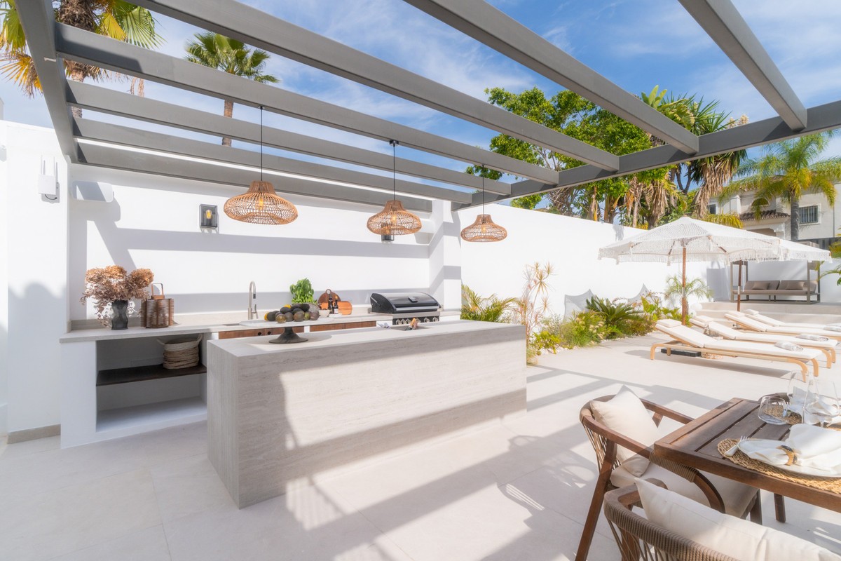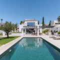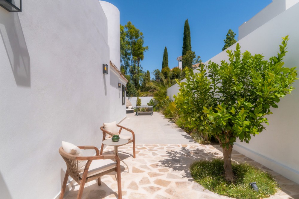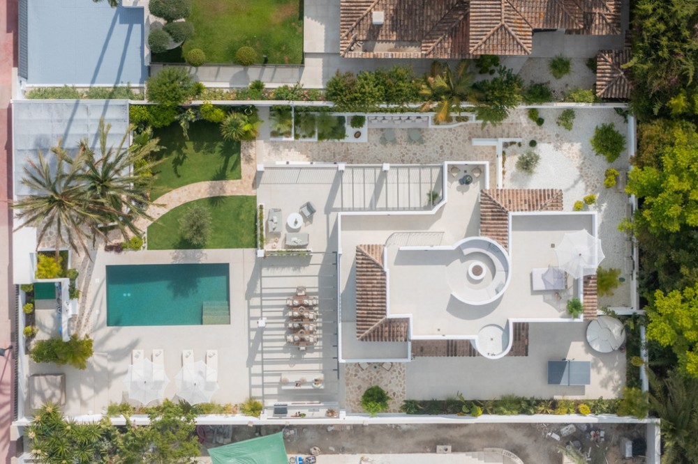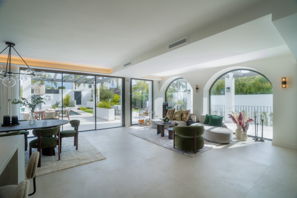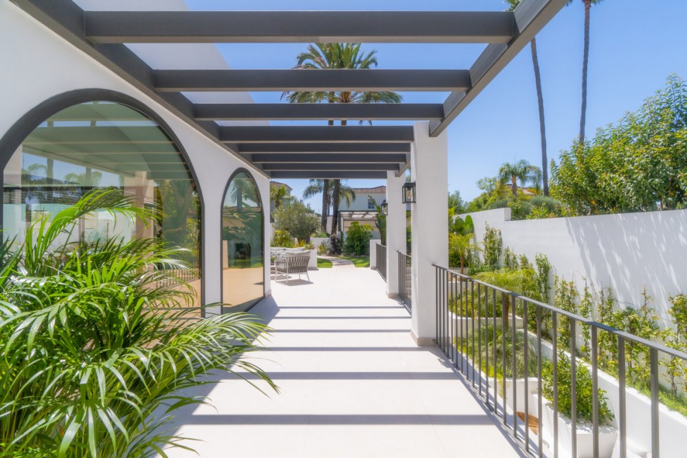 • Deze moderne, luxe villa met zes slaapkamers staat te koop in de Golfvallei van Marbella. De woning biedt 600 m² woonruimte op een perceel van 820 m² met 125 m² aan terrassen. De villa ligt op slechts enkele minuten van Aloha Golf Los Naranjos en Las Brisas Golf Club en biedt snelle toegang tot winkels, restaurants en Puerto Banús, waardoor het ideaal is voor kopers die privacy en gemak waarderen. De villa beschikt over zes slaapkamers met eigen badkamer en een Zweedse keuken met Miele-apparatuur. Verder is er vloerverwarming met Daikin airconditioning en Airzone, plus een privéspa met een Finse sauna, een hamam en een groot bad. Een bioscoopkamer zorgt voor extra comfort en twee gastentoiletten en twee eigen parkeerplaatsen maken het geheel compleet. De buitenruimte is ontworpen voor luxe wonen. Het terras bij het zwembad geniet de hele dag van de zon en is verbonden met een Sonos-geluidssysteem met volledige wifi-dekking. Een dakterras biedt uitzicht op de bergen en de vallei van zonsopgang tot zonsondergang, waardoor deze woning een uitstekende keuze is voor kopers die op zoek zijn naar een moderne, instapklare villa in Marbella.