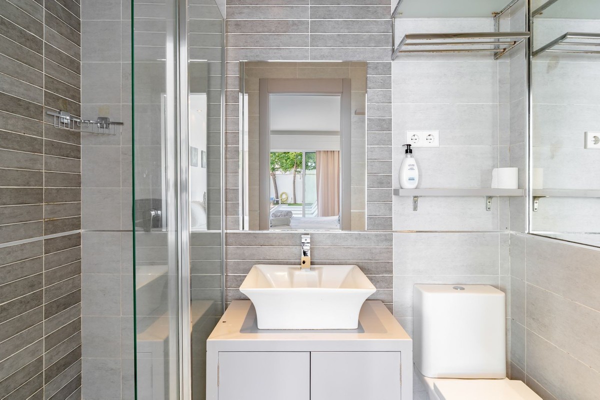 - Discover your dream home in the heart of Estepona, where modern comfort meets Mediterranean charm. This detached luxury villa offers privacy, space, and elegance – perfect as a family home or a holiday retreat. Property Highlights: • Large private swimming pool surrounded by a beautifully landscaped garden • Detached villa with separate guest house for family, friends, or staff • Spacious garage with room for two cars • Main Villa Entry Level: • Welcoming entrance hall • Fully equipped kitchen & dining room • Bright and spacious lounge with garden views • Comfortable bedroom and stylish bathroom Upper Level: • Elegant entrance hall leading to three bedrooms • Two modern bathrooms • Two private balconies, overlooking the pool and gardens Guest House / Garden Apartment • 1 cozy bedroom • 1 private bathroom This exceptional property combines stylish design with functional living, offering plenty of space for relaxation and entertaining. With its generous layout, beautiful gardens, and prime location in Estepona, this villa is a true gem on the Costa del Sol. Location: Just minutes from Estepona’s beaches, golf courses, restaurants, and international schools, with Marbella and Puerto Banús nearby.