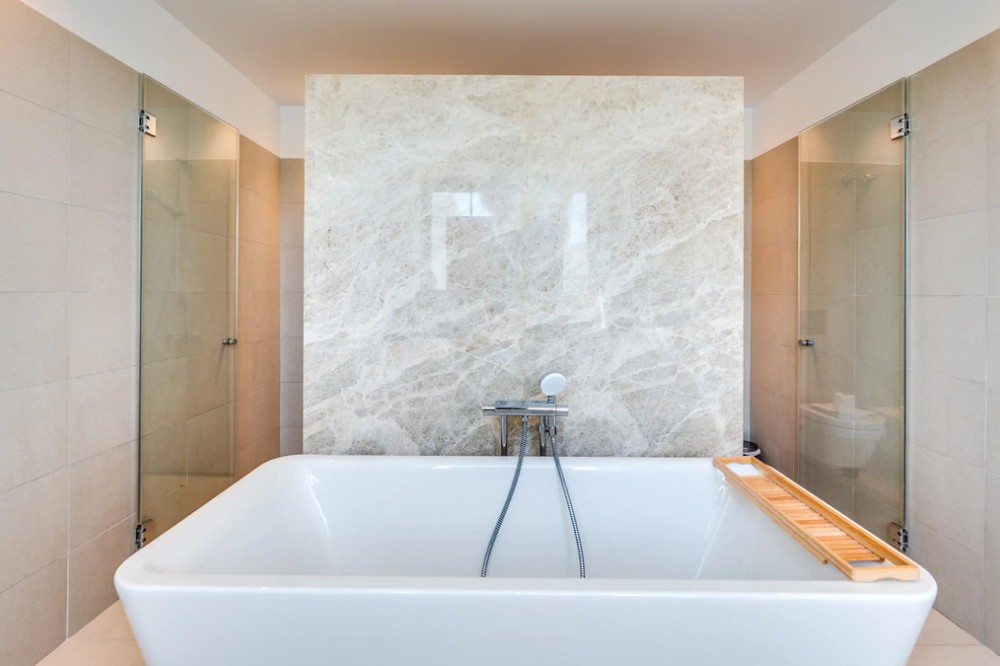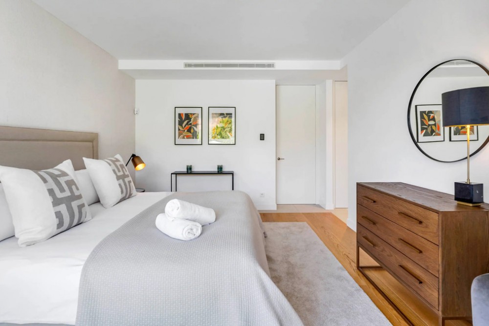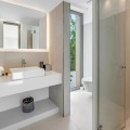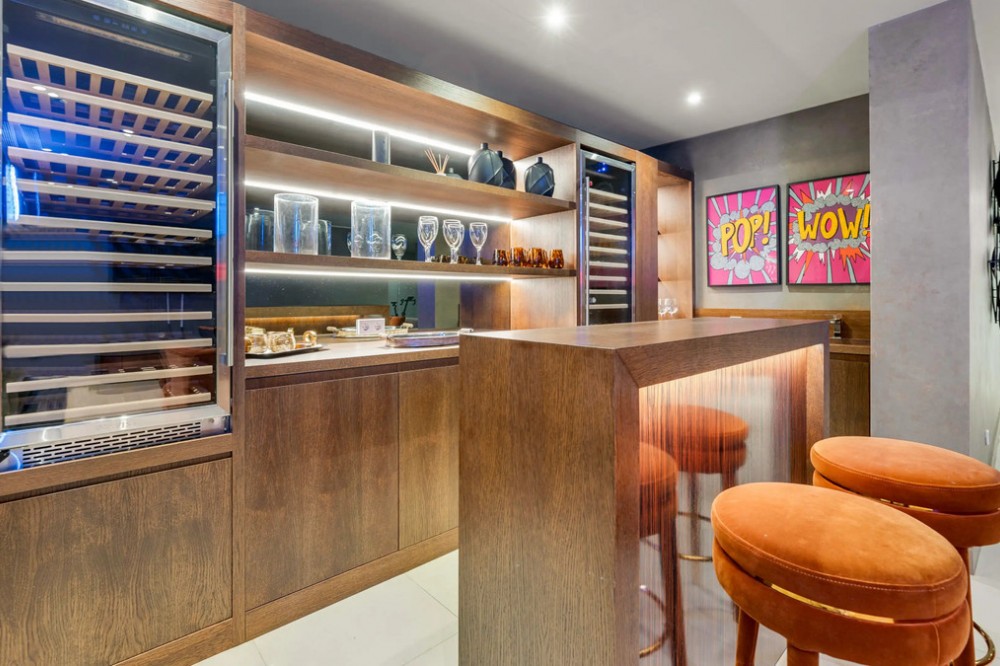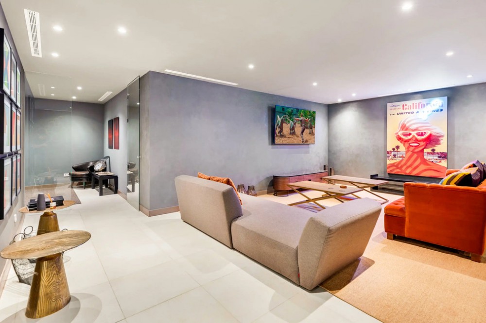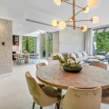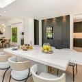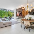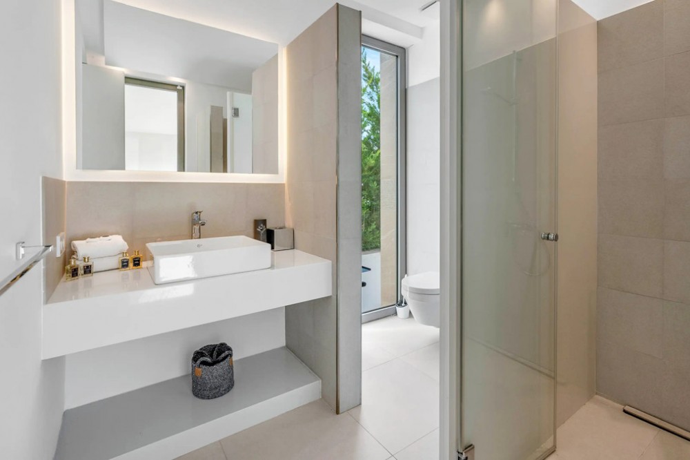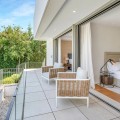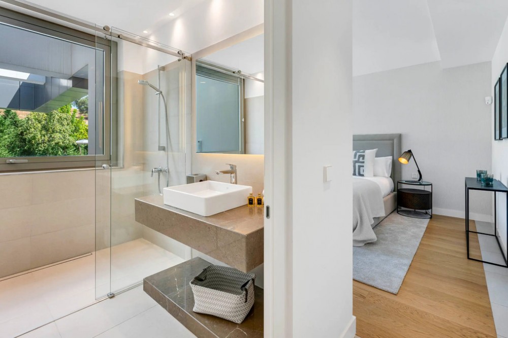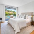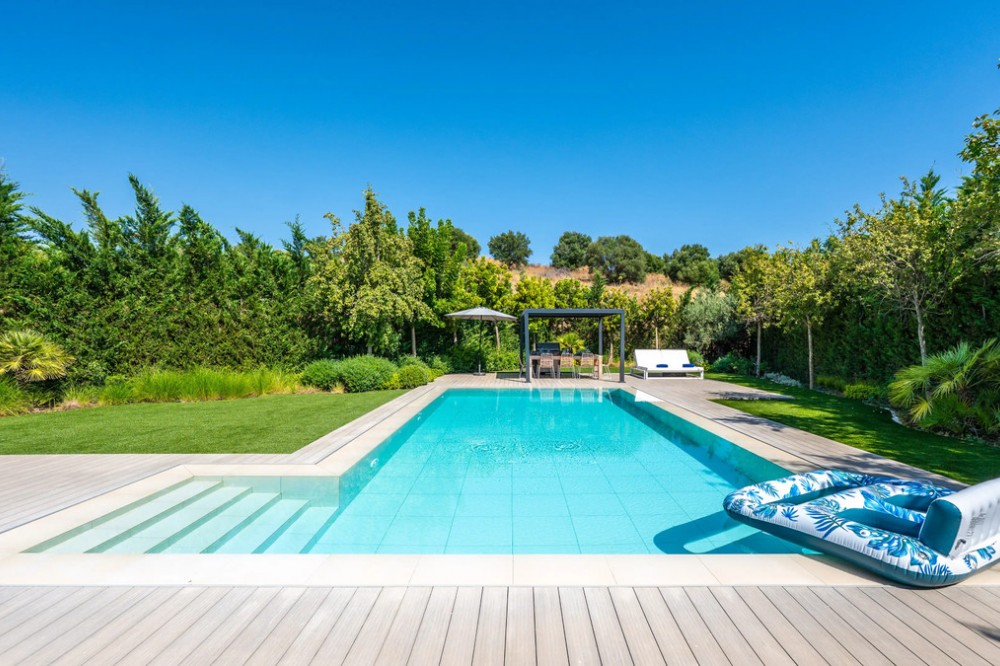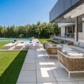 - Presenting this modern five bedroom villa on the New Golden Mile, set minutes from the coast and close to Puerto Banús and Marbella. The home has a southeast orientation for natural light and open views, and it offers full privacy. The layout is spacious and includes an open plan kitchen, living and dining area that leads to wide terraces and the garden. The upper level holds the calm bedroom suites, each with a king bed and direct terrace access. Outside, you find a private pool, manicured lawns and a shaded dining area with a BBQ. The lower level has a cinema room, a second lounge, a bar area, a workspace and a small wellness zone for yoga or light training. The villa includes a full alarm system, air conditioning and a safety box and is designed for buyers who want comfort, privacy and a clean modern style in a prime Marbella location. It is ideal for families, golfers and anyone seeking a luxury home.
