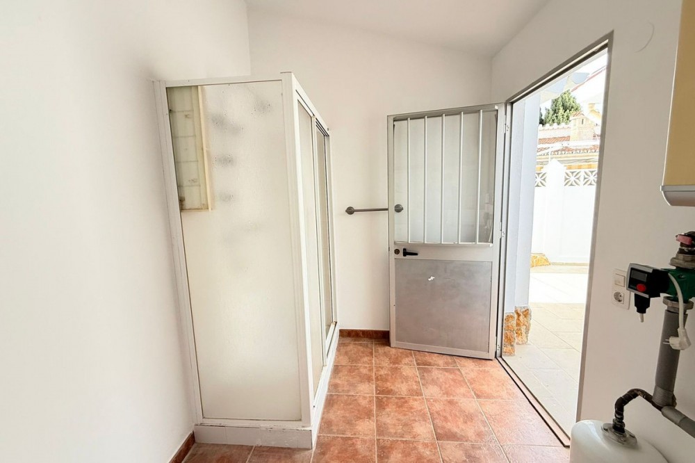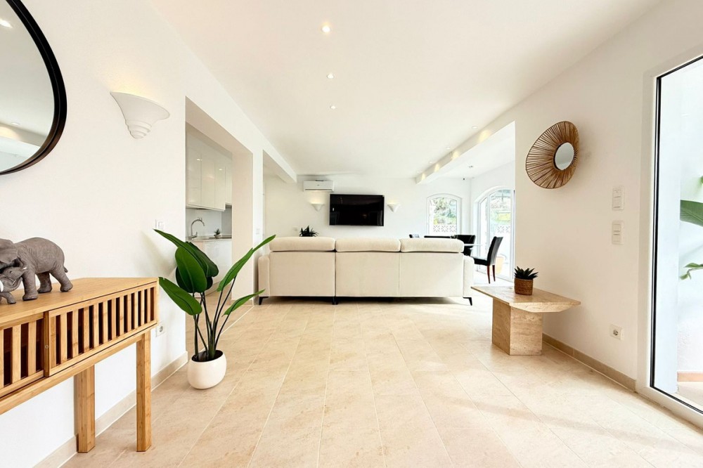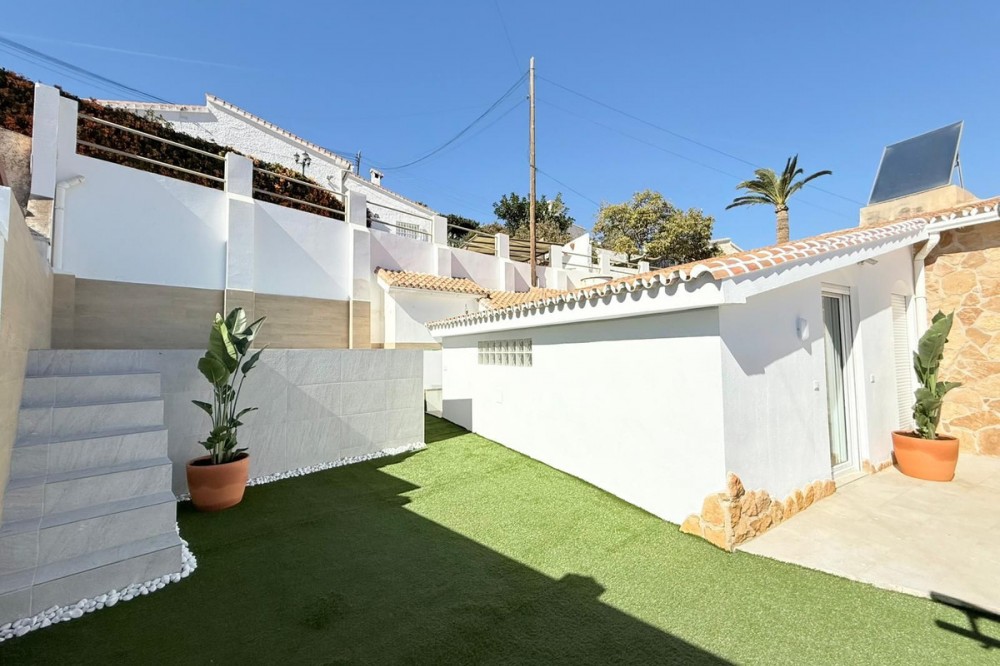 - Ready-to-move-in single-storey villa with sea views, 300 metres from the beach – Peñoncillo, Torrox Costa This recently renovated property is located in the sought-after neighbourhood of Peñoncillo in Torrox Costa, just 300 metres from the beach and five minutes from all amenities. The property is part of a small community and is located on a quiet access road, ensuring privacy and comfort. The villa has a built area of 161 m², entirely on one level, and is built on a plot of 308 m². Thanks to the recent renovation with high-quality materials, this is a truly ready-to-move-in property. This property is very spacious, bright, fully furnished and combines comfort, quality and a prime location near the sea. The kitchen is fully equipped with an induction hob, oven, microwave and dishwasher. Hot water is provided by a solar boiler, while the property is heated and cooled by air conditioning (hot/cold). The property currently has 3 spacious bedrooms and 2 bathrooms, one of which is ensuite. There is also the possibility of creating a fourth bedroom or office. One of the bedrooms even has a separate entrance, ideal for guests, a practice room or rental. Outside, you can enjoy a small private swimming pool and a home that is completely surrounded by landscaped terraces, perfect for enjoying the outdoors all year round. The entrance gate is electric, offering extra comfort and security. From the house and terraces, you have a beautiful view of the Mediterranean Sea. At the rear of the property are several storage rooms, a laundry room and a third bathroom, which enhances the practical nature of this property. In short: a high-quality, ready-to-move-in property with sea views within walking distance of the beach. Don't wait too long... we don't sell properties, we make your dreams come true.