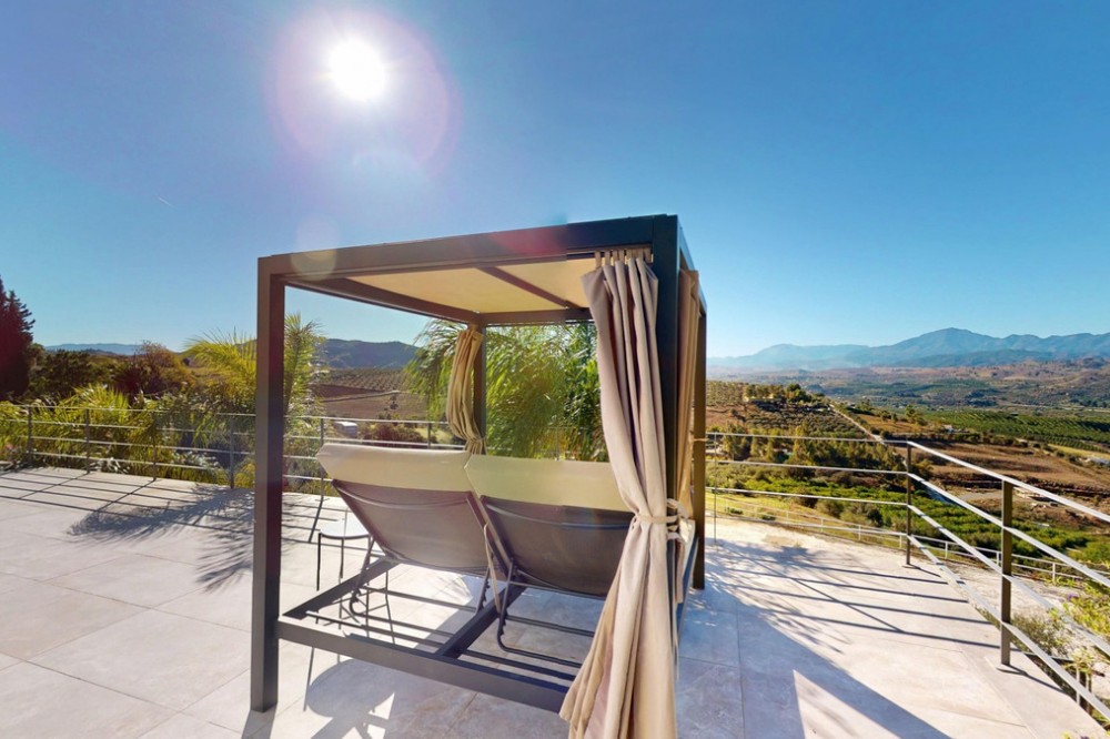 - Exclusive Estate with Guest Apartment and Equestrian Facilities in Álora This exceptional estate in Álora combines generous living spaces, absolute privacy, and a privileged natural setting ideal for those seeking comfort, tranquillity, and versatile usage possibilities at a high level. Surrounded by breathtaking scenery, this property offers a truly unique lifestyle in the heart of Andalusia. The main residence impresses with its spacious layout and abundant natural light. It features a large open-plan living and dining area with kitchen, forming the heart of the home, as well as a second living room on a bright mezzanine level, ideal as a lounge or private retreat. The house offers three bedrooms, two full bathrooms, and a guest toilet. The master suite includes an en-suite bathroom and a walk-in dressing room, ensuring maximum comfort and privacy. From the kitchen, you step out onto a generous terrace with stunning mountain views, perfect for a chill-out area or an elegant outdoor dining and BBQ space surrounded by nature. Outside, the property features a separate guest apartment with a full bathroom, ideal for visitors, family members, or staff. A swimming pool, harmoniously integrated into the surroundings, completes the outdoor area. Beneath the main house lies a large area with multiple potential uses, which can be customized according to the future owners needs such as a gym, studio, workshop, or leisure space. In addition, there is a garage that could easily be converted into another guest apartment with spectacular views by adding windows. One of the standout features of this estate is the extensive plot, offering complete privacy and excellent conditions for horse keeping. The property includes a riding arena, stables, ample space for paddock grazing, and holds an official license for up to five horses a rare opportunity for equestrian enthusiasts and nature lovers alike. This is far more than a home it is a lifestyle concept, where freedom, nature, and exclusive living come together in perfect balance. We would be delighted to present this remarkable property to you, either in person or via virtual viewing. Because this world is unique just like our Axarquía. In Andalusia. On the Costa del Sol. Here, on the sunny side of life.