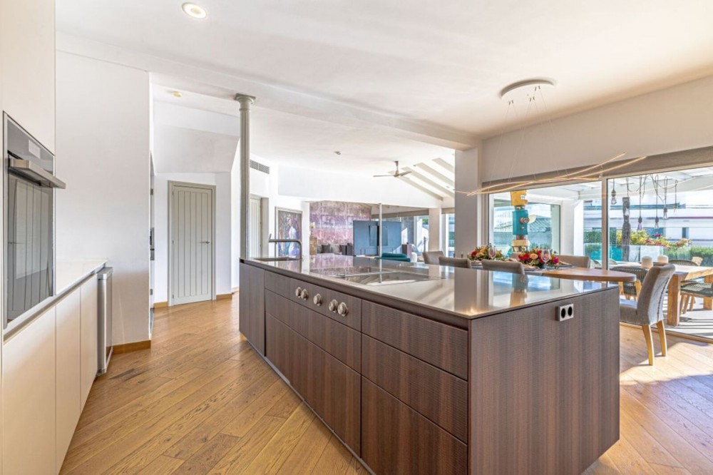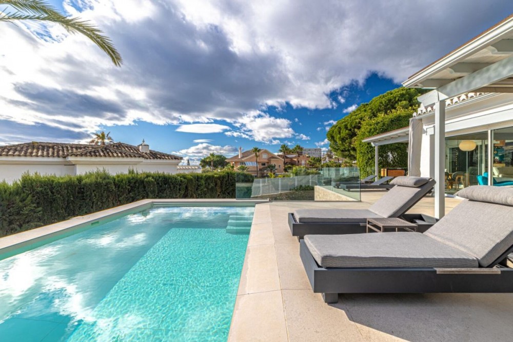 - Deze charmante villa met vijf slaapkamers, gelegen in de prestigieuze woonwijk Las Chapas in Marbella, biedt privacy, ruimte en een tijdloze mediterrane uitstraling, op slechts enkele minuten van de beste stranden en strandtenten van de Costa del Sol. Gelegen op een ruim perceel, beschikt de woning over een privézwembad, volgroeide tuinen en meerdere terrassen, ideaal om buiten te dineren en te ontspannen. De villa is doordacht ingedeeld over twee verdiepingen en combineert de klassieke Andalusische charme met comfortabel gezinsleven. De begane grond verwelkomt u met een lichte woonkamer met open haard, een aparte eetruimte en directe toegang tot overdekte en open terrassen met uitzicht op de tuin en het zwembad. Een volledig uitgeruste Bulthaup-keuken biedt voldoende opbergruimte en werkblad, ideaal voor het dagelijks leven en het ontvangen van gasten. De villa beschikt over vijf goed geproportioneerde slaapkamers, waaronder een ruime master suite, en diverse badkamers in een moderne stijl. Extra voorzieningen zijn onder andere een combinatie van marmeren en parketvloeren, airconditioning (warm en koud), inbouwkasten, een eigen parkeerplaats voor meerdere auto's en uitstekende natuurlijke lichtinval. De woning geniet van een rustige omgeving, maar ligt toch gunstig dicht bij internationale scholen, golfbanen, lokale voorzieningen en het centrum van Marbella. De luchthaven van Málaga is op korte rijafstand. Deze villa biedt een uitstekende kans als permanente woning, vakantiehuis of investeringsobject op een van de meest gevestigde en gewilde locaties van Marbella.