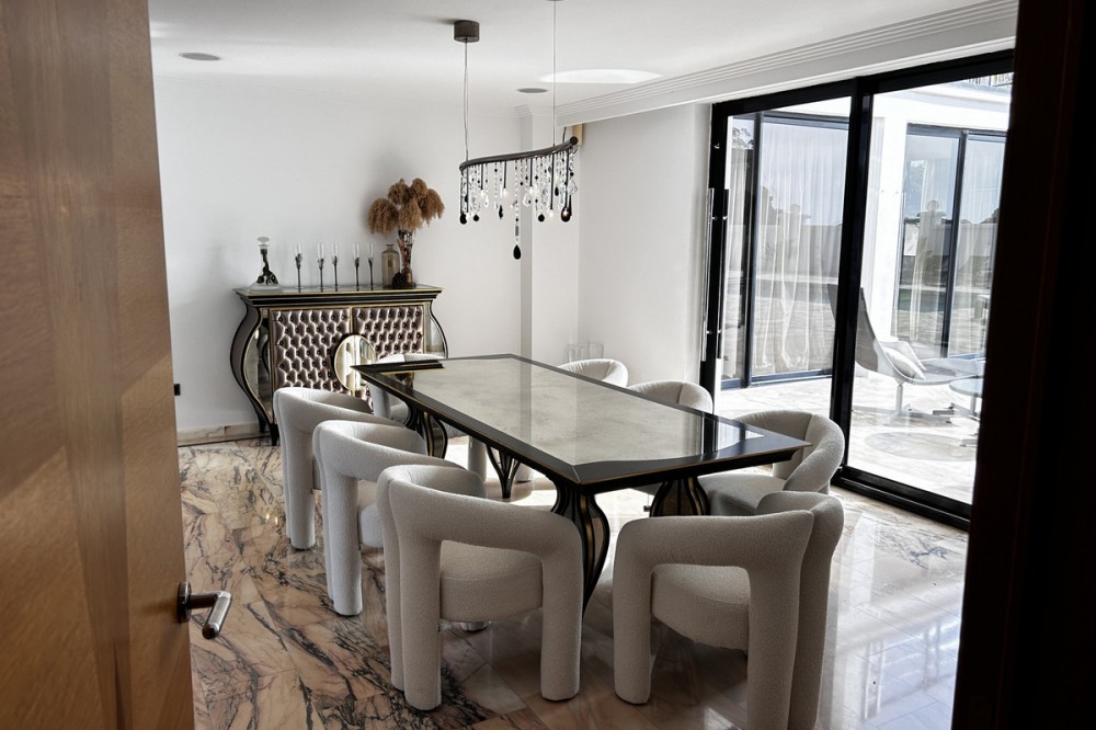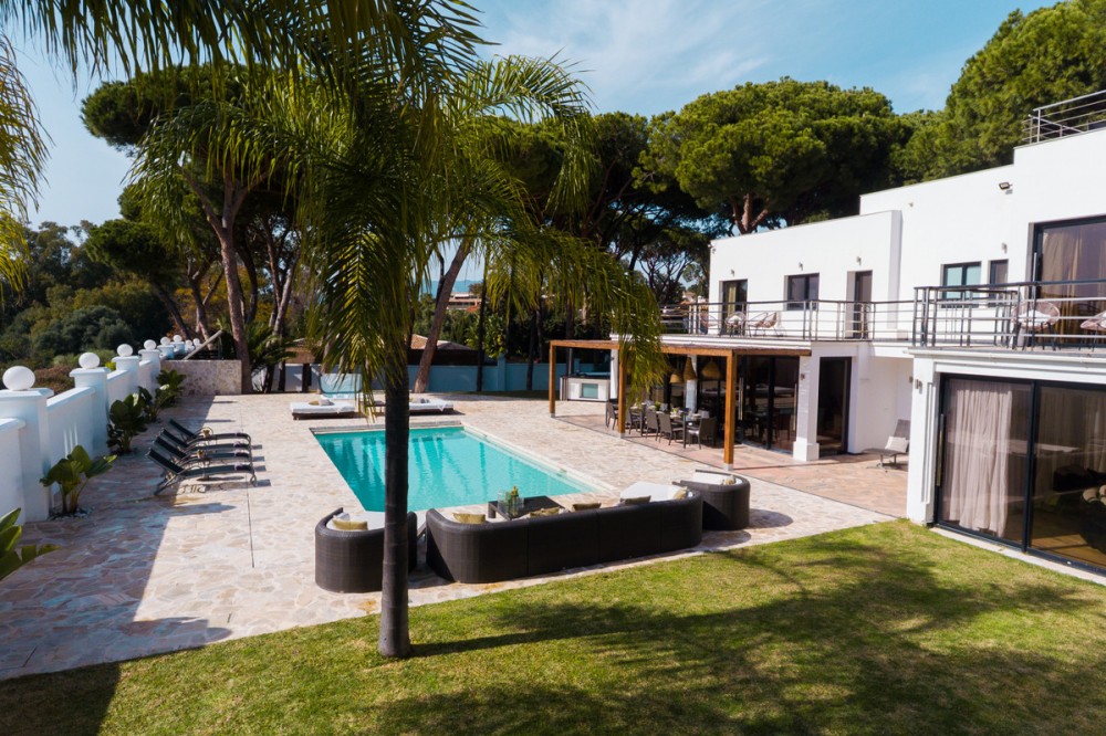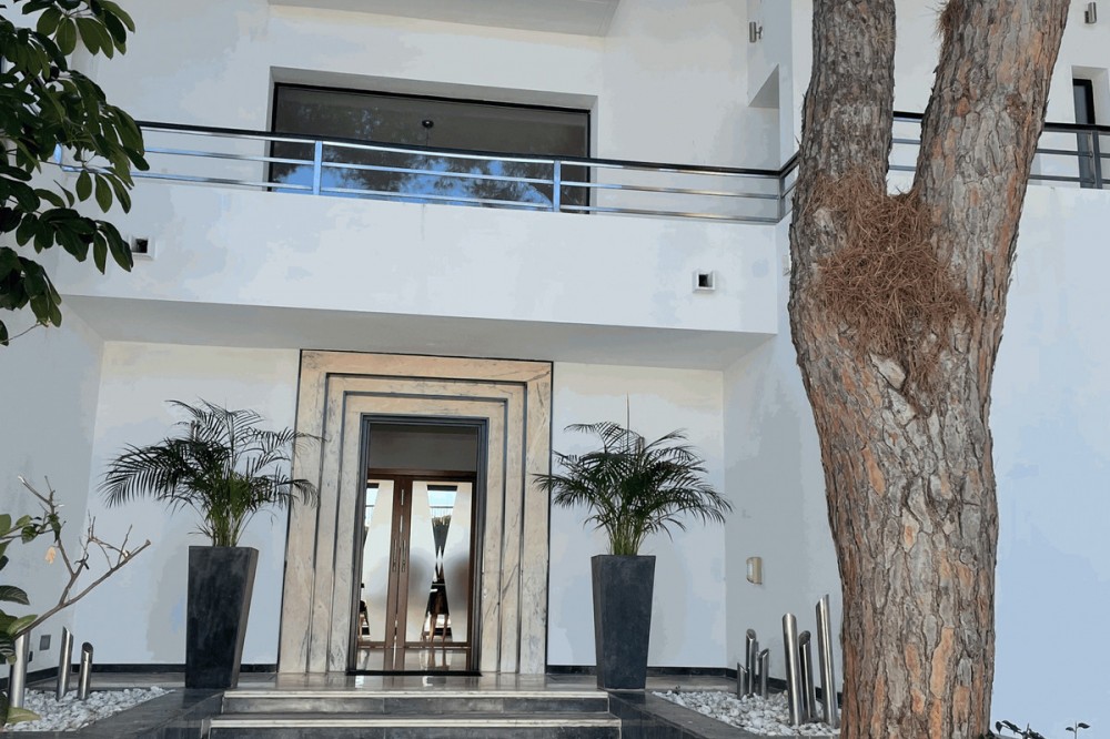 - Deze prachtige villa ligt op slechts enkele meters van de kustlijn in de rustige badplaats Artola en biedt een zeldzame combinatie van privacy, ruimte en verfijnde luxe aan de kust. Omgeven door de natuurlijke schoonheid van de beschermde duinen, nodigt de villa uit tot een levensstijl die gekenmerkt wordt door sereniteit, elegantie en een moeiteloze verbondenheid met de Middellandse Zee. De villa ligt in een rustige woonwijk, maar toch dicht bij de levendige sfeer van Cabopino. U geniet van directe toegang tot de natuur, terwijl stranden, jachthavens, golfbanen en restaurants op korte afstand liggen. Deze balans tussen privacy en gemak maakt het een uitzonderlijke plek voor zowel permanent wonen als luxe vakanties. De woning staat op een ruim perceel van meer dan 2.100 m², waar een prachtig aangelegde privétuin een royaal zwembad en diverse terrassen omringt, ontworpen voor buitenleven, zonnebaden en gezelligheid. Het uitzicht strekt zich uit over de duinen richting de zee, wat een constant gevoel van openheid en rust creëert. Binnen biedt de villa 815 m² aan verfijnde woonruimte, met acht ruime slaapkamers met eigen badkamers en een grote, volledig uitgeruste keuken, ideaal voor het ontvangen van familie en gasten. Elke ruimte is ontworpen met het oog op comfort, een goede doorstroming en ingetogen elegantie. Luxe voorzieningen tillen de levensstijl naar een nog hoger niveau, waaronder een privébioscoop, een fitnessruimte, een biljartkamer, een kinderspeelplaats en twee jacuzzi's – voor plezier voor elke generatie. De nabijheid van gerenommeerde strandclubs, chique restaurants en topgolfbanen maakt het geheel compleet. Deze uitzonderlijke villa aan het strand is meer dan een woning: het is een privéparadijs waar luxe, natuur en het leven aan de kust in perfecte harmonie samenkomen.