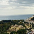 Uitzicht: zee, bergen, land, zwembad