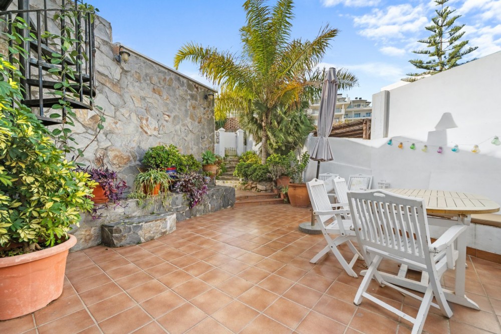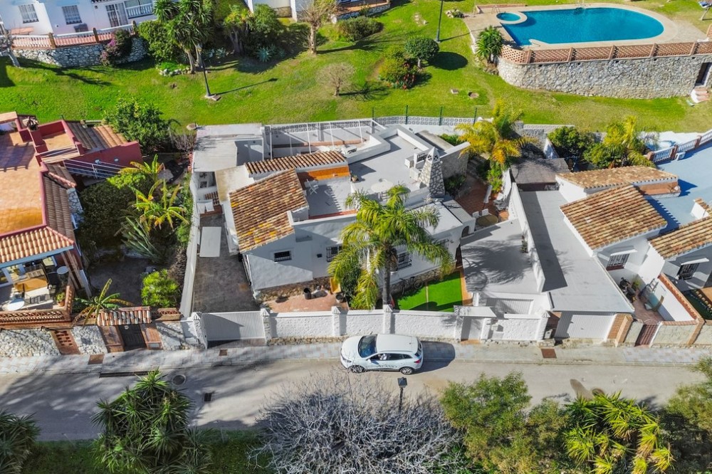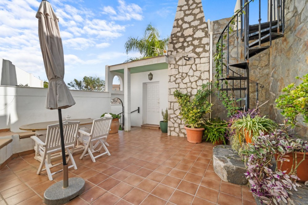 - Charming detached villa located in the exclusive and highly sought-after Sohail area of Fuengirola!! A property that has been recently renovated to offer maximum comfort, perfectly combining style, functionality, and well-being, both indoors and in its outdoor spaces. The heart of the home is its open-plan living and dining area, arranged on different levels, providing a modern and contemporary concept. The fireplace adds a warm and cozy atmosphere, ideal to enjoy at any time of the year. From here, you can access spacious terraces, some covered with awnings, perfectly prepared for year-round use, offering pleasant views of the garden and the communal swimming pool. Outside, the property features a fully equipped barbecue area, complete with a bar and appliances, designed for relaxed gatherings and unforgettable moments. There is also a laundry and storage area, seamlessly combining leisure and practicality. The 3 bedrooms are true private retreats, two of share an en-suite bathrooms, offering maximum comfort and privacy, and the master bedroom has also en-suite bathroom and a walk-in dressing area, creating an exclusive and functional space. The property includes its own private parking area, as well as a closed garage that can be converted into any space you may need, such as a storage room, games room, office, etc. Another outstanding feature of this home is its fantastic solarium terrace, which, if desired, can be converted into an additional floor of the property. The community consists of only 7 houses and offers a beautiful landscaped area with sea views, a swimming pool, and a jacuzzi. It is a very quiet and secure environment, perfect for relaxing and cooling off during long summer days. Located on a quiet cul-de-sac, this home guarantees peace and privacy while still being close to all the services and amenities Fuengirola has to offer. The beach is just steps away, including a dog-friendly beach, a shopping centre within walking distance, the historic Sohail Castle with its summer events, and the 7 km Fuengirola seafront promenade to enjoy long walks. A unique property for those seeking quality of life, tranquility, and exclusivity, whether as a permanent residence, holiday home (it has a tourist license), or a high-end investment. An opportunity you won’t want to miss.