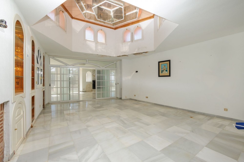 - Welkom bij een buitengewone kans om eigenaar te worden van een magnifieke villa in het hart van Torremuelle, aan de Costa del Sol. Deze indrukwekkende villa, gelegen op een ruim perceel van 3.077 vierkante meter, beslaat een luxueuze woonoppervlakte van 1.146 vierkante meter en biedt een levensstijl van ongeëvenaard comfort en adembenemende uitzichten. Bij het betreden van de statige hal wordt u direct begroet door een panoramisch uitzicht op de glinsterende zee en de majestueuze bergen die dit exclusieve pand omringen. Aan uw linkerhand vindt u twee ruime woonkamers, elk voorzien van een prachtige marmeren open haard, die een verfijnde en uitnodigende sfeer creëren, perfect voor zowel ontspanning als entertainment. Het huis beschikt over twee enorme keukens, ideaal voor kookliefhebbers, evenals twee ruime bergingen en een formele eetkamer, ontworpen voor weelderige bijeenkomsten. De doordachte indeling wordt voortgezet met een unieke, kleinere ronde kamer, ingericht met stenen zitjes en een tafel – een gezellige plek om te ontspannen en te genieten van de rust van de omgeving. Rechts van de ingang bevindt zich een hal met inbouwkasten die voldoende opbergruimte bieden, terwijl de eerste slaapkamer is voorzien van inbouwkasten, een en-suite badkamer met douche en een privéterras. De master suite is een waar toevluchtsoord, compleet met eigen tv-kamer en twee extra terrassen voor een nog spectaculairder uitzicht. Twee luxe badkamers met zowel bad als douche dragen bij aan de weelde van deze residentie. Als u de trap afdaalt vanuit de hal, komt u in een uitnodigende zithoek. Aan de linkerkant vindt u drie ruime tweepersoonsslaapkamers, waarvan één met een en-suite badkamer met douche. Aan de andere kant van de hal bevindt zich ook een aparte badkamer met douche. Rechts van de zithoek liggen nog twee grote slaapkamers, beide met een eigen badkamer, die privacy en comfort bieden. Alle slaapkamers zijn voorzien van airconditioning, waardoor u het hele jaar door van een aangenaam verblijf kunt genieten. Stap naar buiten en u wordt verwelkomd door een prachtige buitenruimte met een zwembad, twee elegante fonteinen en een ronde waterpartij die de serene sfeer versterkt. Verder zijn er een toilet en douche, een werkplaats en een grote multifunctionele ruimte die naar wens kan worden ingericht. Geniet van het buitenleven op de glazen veranda, die is voorzien van een kleine keuken en badkamer, en een barbecuehoek – perfect om gasten te ontvangen. Voor nog meer privacy zijn er twee aparte appartementen met een slaapkamer, badkamer met douche en keuken – ideaal voor gasten of personeel. Een dakterras met een kleine glazen serre biedt nog een prachtig uitzicht op de omgeving. Het landgoed beschikt tevens over een garage met ruimte voor maximaal drie auto's. Dit pand biedt een unieke kans – of u het nu wilt transformeren tot een statig herenhuis, een boetiekhotel, een bed & breakfast of iets anders, de mogelijkheden zijn eindeloos. Hoewel het een complete renovatie betreft, maakt het enorme potentieel een bezoek absoluut de moeite waard. Mis de kans niet om dit uitzonderlijke landgoed te ontdekken. Dit prachtige landgoed, gelegen in de prestigieuze woonwijk Torremuelle, biedt de perfecte balans tussen rust en comfort. Omgeven door adembenemende panoramische uitzichten, biedt het pand een schitterend panorama over de glinsterende Middellandse Zee en de pittoreske bergen die het prachtige landschap van de Costa del Sol kenmerken. Gelegen op slechts een steenworp afstand van wereldberoemde golfbanen en de schitterende kustlijn, heeft u gemakkelijk toegang tot de beste vrijetijds- en recreatiemogelijkheden in de omgeving. Of u nu een fervent golfer bent of een liefhebber van de zee, Torremuelle biedt de ideale locatie om van beide te genieten, met stranden op slechts een korte autorit afstand. De woonwijk is vredig en sereen en biedt een rustig toevluchtsoord, terwijl alle levendige voorzieningen van Benalmádena en de Costa del Sol toch binnen handbereik zijn. Van restaurants van topkwaliteit en winkels tot culturele ervaringen en entertainment, alles wat u nodig heeft, ligt op een steenworp afstand. Dit maakt deze locatie een waar juweel voor wie op zoek is naar een luxe, maar toch toegankelijke levensstijl. Of u nu wilt ontspannen en genieten van de natuurlijke schoonheid om u heen of de nabijgelegen attracties wilt verkennen, de locatie van deze woning biedt werkelijk het beste van twee werelden.