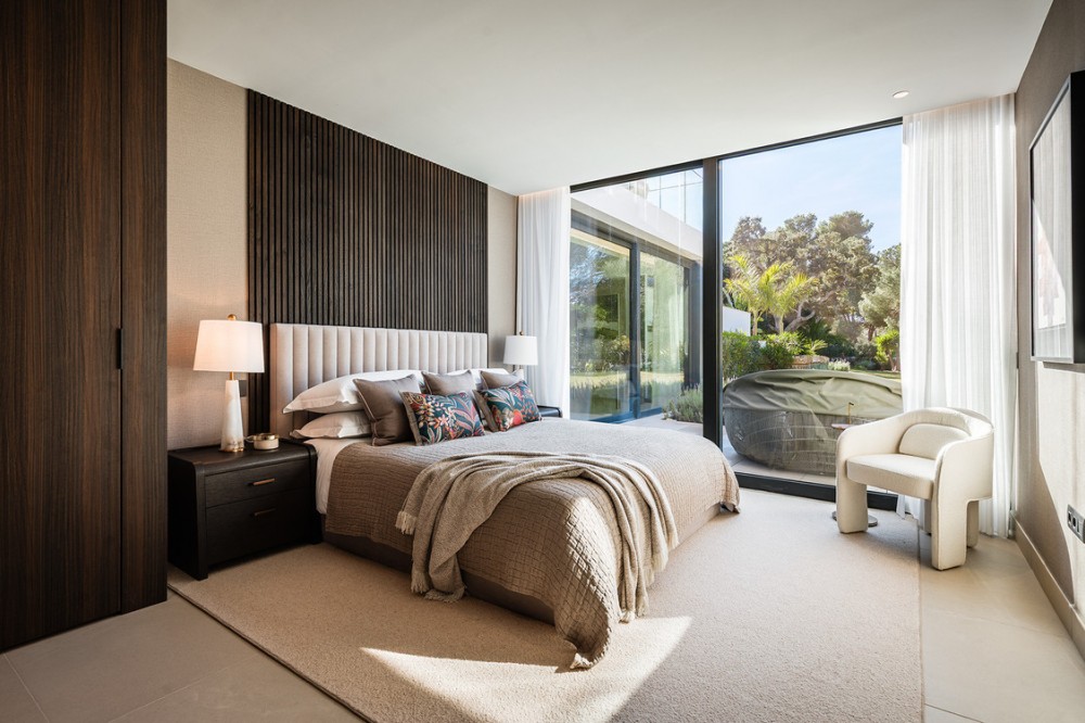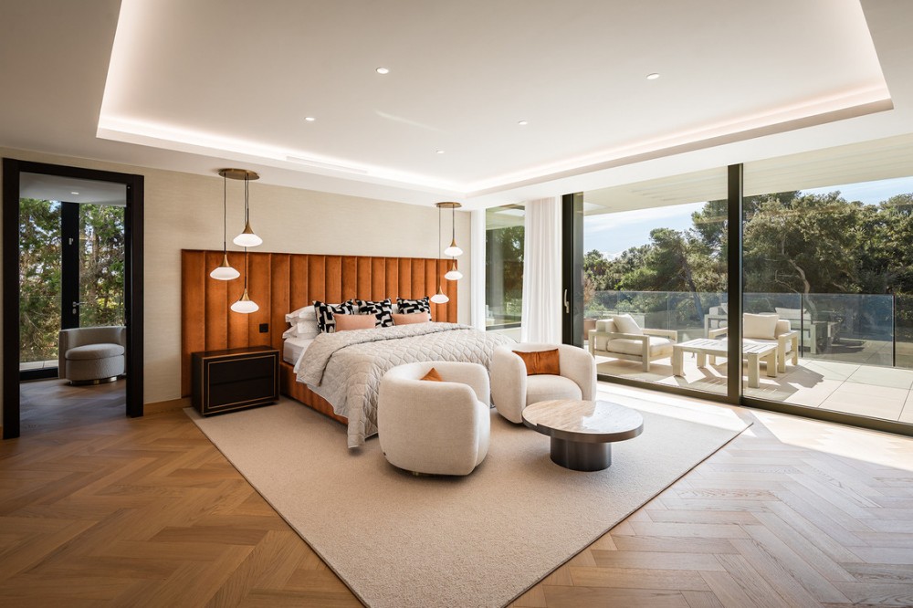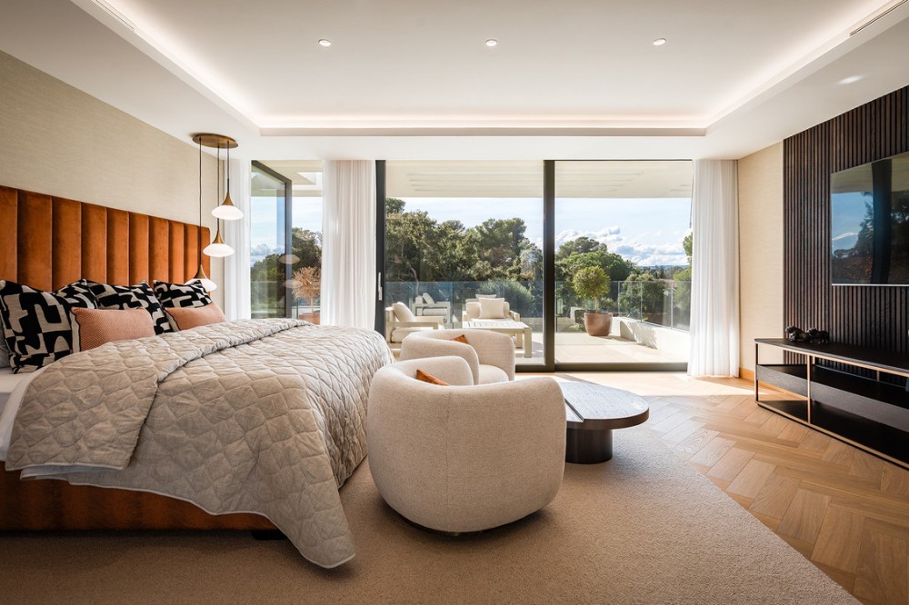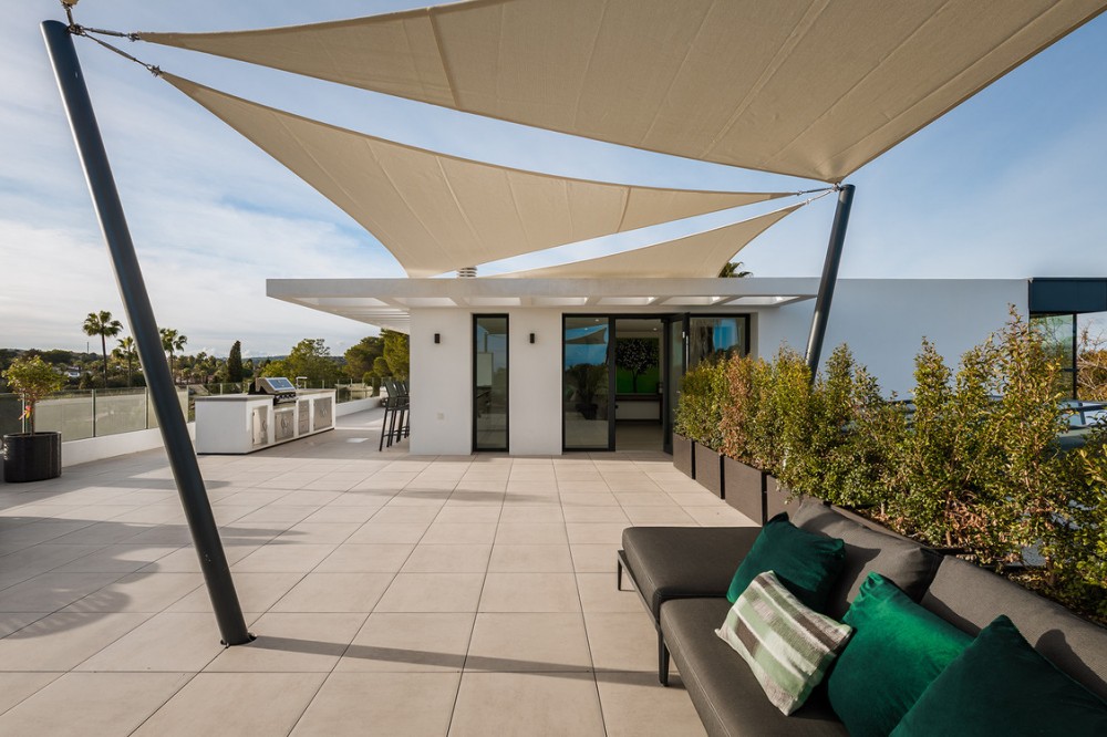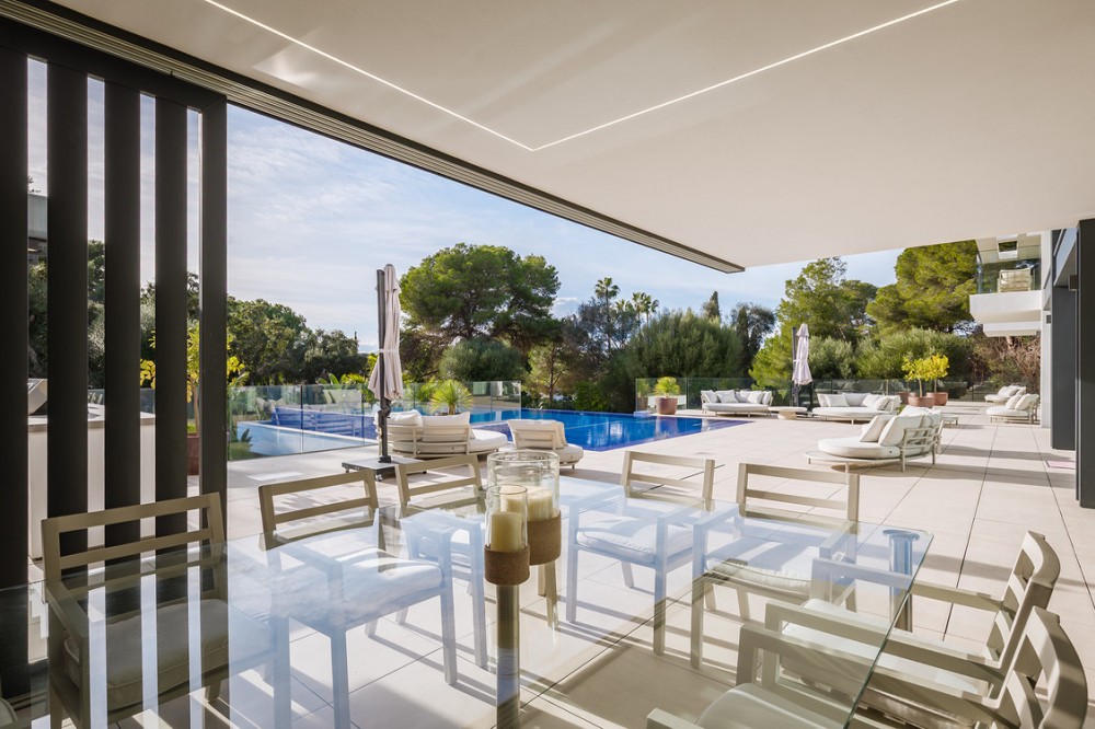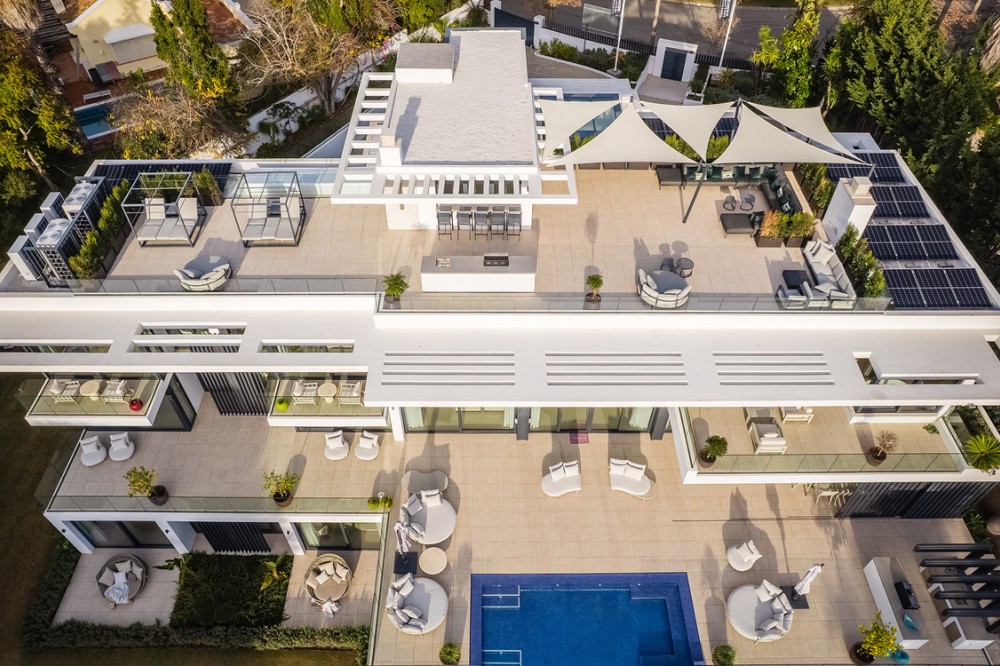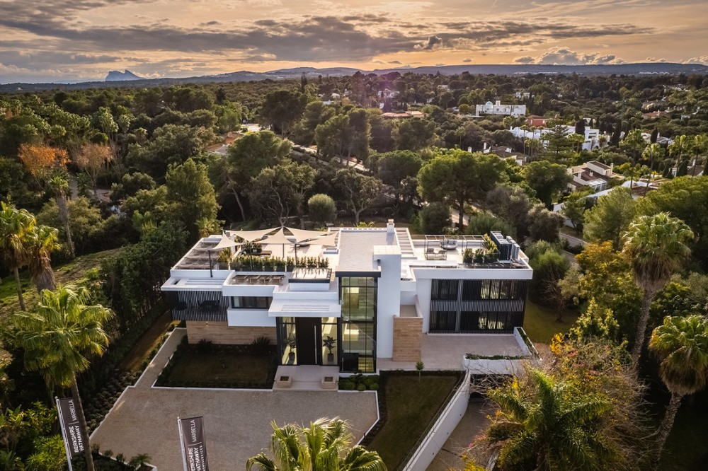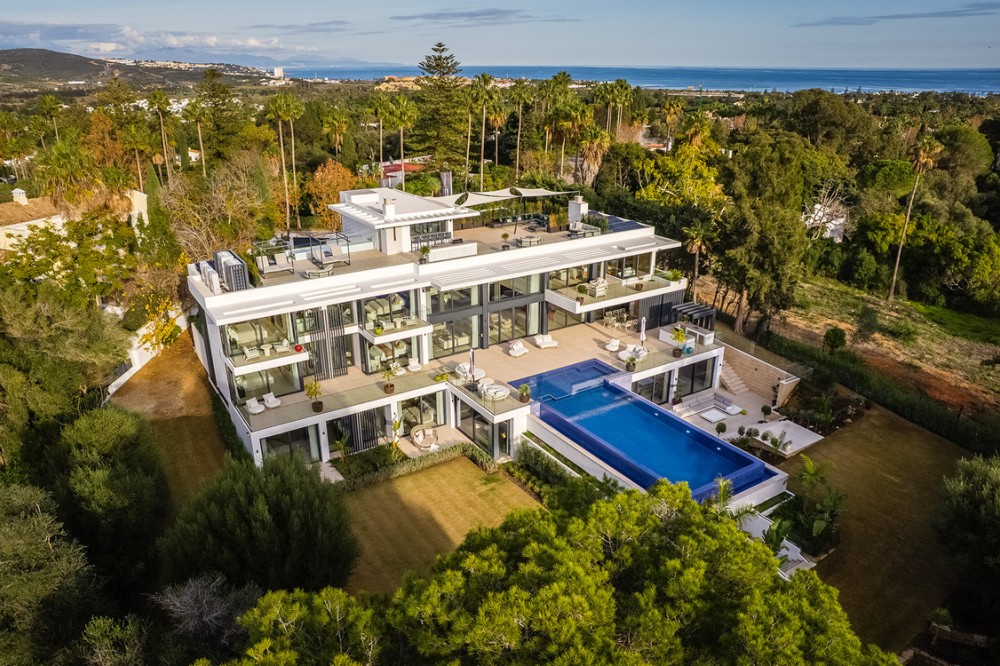 - Casa La Colina is een schitterende, moderne residentie in de prestigieuze wijk Kings and Queens in Sotogrande Costa. Deze wijk staat bekend om zijn brede, met bomen omzoomde lanen en de nabijheid van het strand, de jachthaven en vooraanstaande golfclubs, waardoor het de meest gewilde locatie in Sotogrande is. De woning is gelegen op een prachtig aangelegd perceel van 3.828 m² en biedt een naadloze integratie van eigentijdse architectuur, open interieurs en hoogwaardige afwerkingen – ontworpen om ontspannen mediterraan leven en verfijnd entertainment naar een hoger niveau te tillen. Vanaf het moment dat u aankomt, maakt de woning indruk met zijn opvallende, eigentijdse design, gekenmerkt door strakke lijnen, natuurlijke materialen en kamerhoge ramen die natuurlijk licht binnenlaten en het interieur naadloos verbinden met de omringende tuinen. Een statige, ruime entree leidt naar een prachtige, dubbelhoge woonkamer van maar liefst zes meter, die direct een gevoel van openheid en moderne elegantie uitstraalt. De woning is doordacht ontworpen voor zowel dagelijks comfort als sociale bijeenkomsten en beschikt over meerdere binnen- en buitenruimtes. Het hart van de woning wordt gevormd door een volledig uitgeruste Gaggenau-keuken met kookeiland, aangevuld met een aparte voorbereidingskeuken en een aangrenzende buitenruimte met barbecue – perfect om gasten te ontvangen. De zeven slaapkamers hebben elk een eigen badkamer, wat privacy en luxe garandeert voor bewoners en gasten. Extra voorzieningen verhogen de aantrekkelijkheid van de woning, waaronder een aparte wellnessruimte met sauna en stoombad, een speelkamer en een privélift die zowel gemak als toegankelijkheid biedt. Het solarium op het dak biedt een prachtige omgeving om te ontspannen, compleet met barbecue, douche en een openluchtlounge met panoramisch uitzicht – ideaal voor zonnige middagen of gezellige avonden. Buiten wordt een elegant overloopzwembad omgeven door weelderige, volgroeide beplanting, wat een serene, resortachtige sfeer creëert. De grote privégarage biedt veilige parkeergelegenheid voor meerdere voertuigen, wat de praktische luxe van de woning nog eens benadrukt. Casa La Colina geniet een toplocatie op slechts enkele minuten van de jachthaven van Sotogrande, strandclubs, gerenommeerde restaurants, de Real Club de Golf Sotogrande en de legendarische Valderrama Golf Club. De Sotogrande International School en eersteklas faciliteiten voor polo, zeilen en paardrijden bevinden zich ook in de buurt. Met de luchthaven van Gibraltar op slechts 20 minuten afstand en Marbella, Málaga en Sevilla allemaal binnen handbereik, biedt deze opmerkelijke residentie de perfecte balans tussen bereikbaarheid, elegantie en rust – een ideale keuze voor een permanente woning of een uitzonderlijk toevluchtsoord.