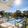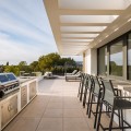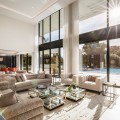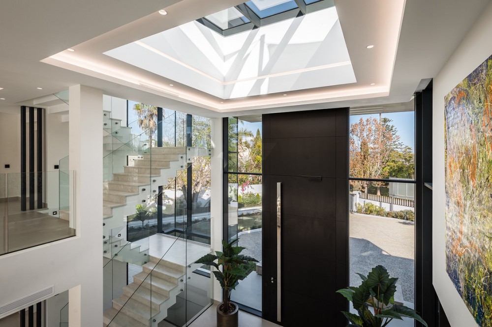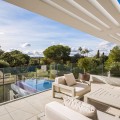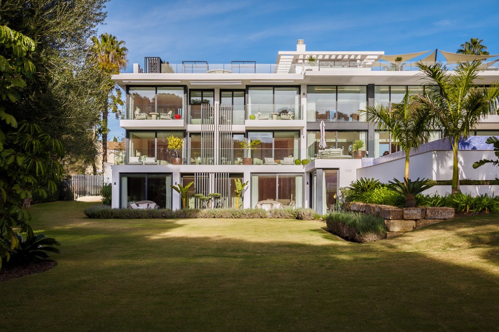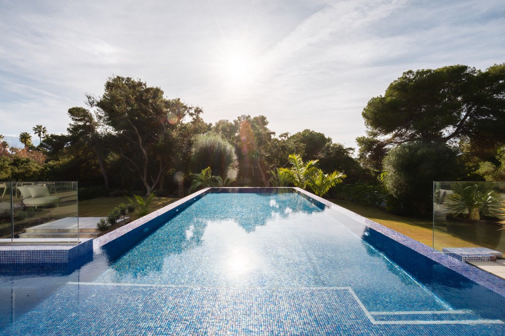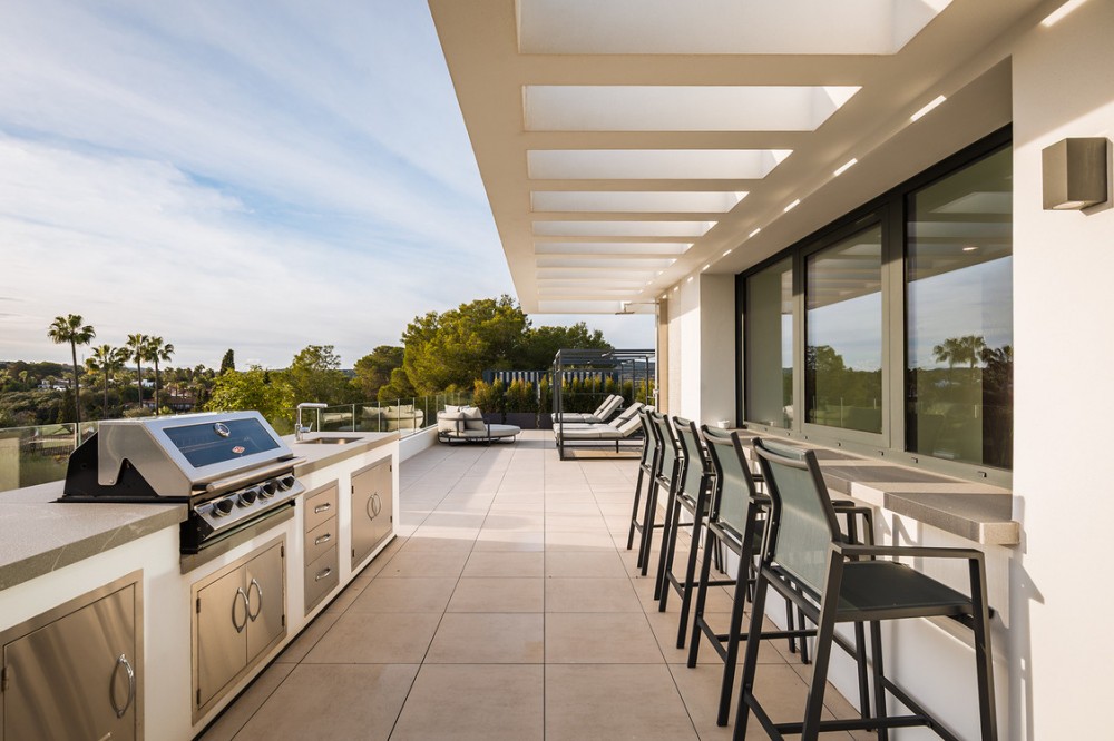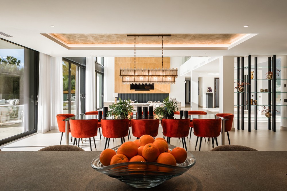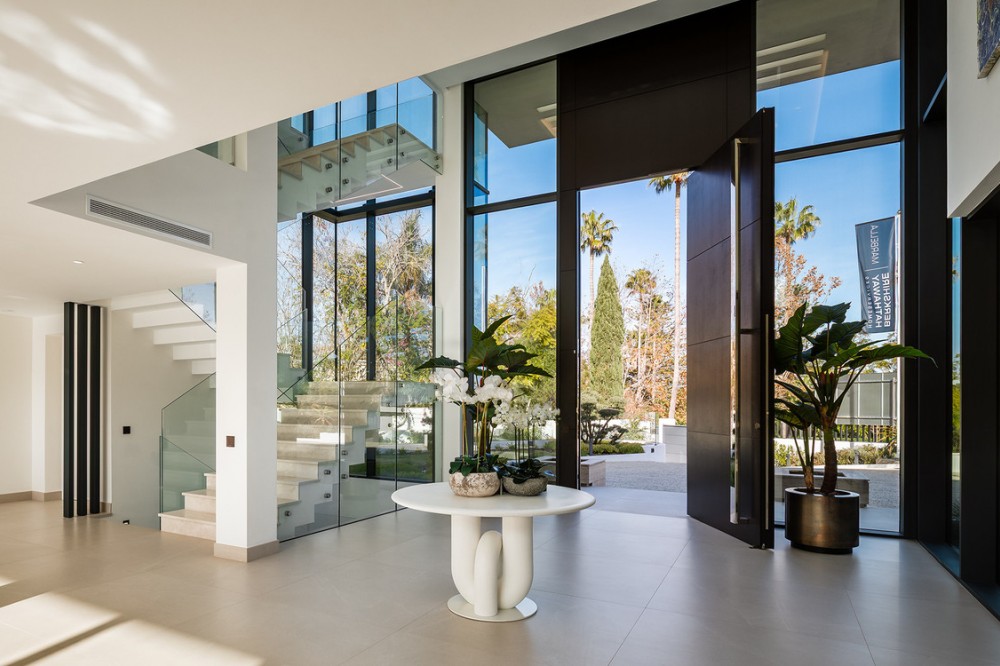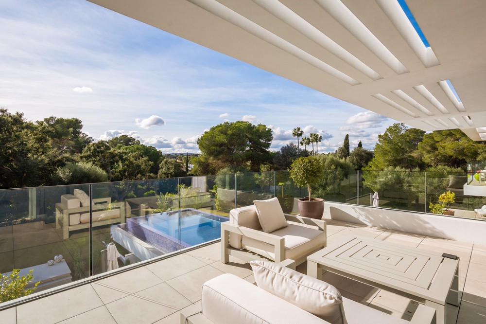 - Casa La Colina is een schitterende, moderne residentie in de prestigieuze wijk Kings and Queens in Sotogrande Costa. Deze wijk staat bekend om zijn brede, met bomen omzoomde lanen en de nabijheid van het strand, de jachthaven en vooraanstaande golfclubs, waardoor het de meest gewilde locatie in Sotogrande is. De woning is gelegen op een prachtig aangelegd perceel van 3.828 m² en biedt een naadloze integratie van eigentijdse architectuur, open interieurs en hoogwaardige afwerkingen – ontworpen om ontspannen mediterraan leven en verfijnd entertainment naar een hoger niveau te tillen. Vanaf het moment dat u aankomt, maakt de woning indruk met zijn opvallende, eigentijdse design, gekenmerkt door strakke lijnen, natuurlijke materialen en kamerhoge ramen die natuurlijk licht binnenlaten en het interieur naadloos verbinden met de omringende tuinen. Een statige, ruime entree leidt naar een prachtige, dubbelhoge woonkamer van maar liefst zes meter, die direct een gevoel van openheid en moderne elegantie uitstraalt. De woning is doordacht ontworpen voor zowel dagelijks comfort als sociale bijeenkomsten en beschikt over meerdere binnen- en buitenruimtes. Het hart van de woning wordt gevormd door een volledig uitgeruste Gaggenau-keuken met kookeiland, aangevuld met een aparte voorbereidingskeuken en een aangrenzende buitenruimte met barbecue – perfect om gasten te ontvangen. De zeven slaapkamers hebben elk een eigen badkamer, wat privacy en luxe garandeert voor bewoners en gasten. Extra voorzieningen verhogen de aantrekkelijkheid van de woning, waaronder een aparte wellnessruimte met sauna en stoombad, een speelkamer en een privélift die zowel gemak als toegankelijkheid biedt. Het solarium op het dak biedt een prachtige omgeving om te ontspannen, compleet met barbecue, douche en een openluchtlounge met panoramisch uitzicht – ideaal voor zonnige middagen of gezellige avonden. Buiten wordt een elegant overloopzwembad omgeven door weelderige, volgroeide beplanting, wat een serene, resortachtige sfeer creëert. De grote privégarage biedt veilige parkeergelegenheid voor meerdere voertuigen, wat de praktische luxe van de woning nog eens benadrukt. Casa La Colina geniet een toplocatie op slechts enkele minuten van de jachthaven van Sotogrande, strandclubs, gerenommeerde restaurants, de Real Club de Golf Sotogrande en de legendarische Valderrama Golf Club. De Sotogrande International School en eersteklas faciliteiten voor polo, zeilen en paardrijden bevinden zich ook in de buurt. Met de luchthaven van Gibraltar op slechts 20 minuten afstand en Marbella, Málaga en Sevilla allemaal binnen handbereik, biedt deze opmerkelijke residentie de perfecte balans tussen bereikbaarheid, elegantie en rust – een ideale keuze voor een permanente woning of een uitzonderlijk toevluchtsoord.