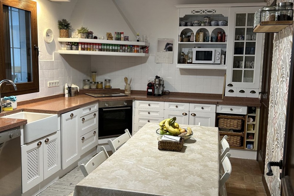 - Prachtige villa te koop in een woonwijk van Atalaya, in de buurt van Monte Biarritz, ideaal voor gezinnen en mensen die privacy zoeken in een gevestigde buurt. De woning staat op een perceel van 1.246 m², met een bebouwbare oppervlakte van 0,36 m² die nog niet volledig benut is, waardoor de woning nog kan worden uitgebreid. Het perceel beschikt over een ruime tuin, een kleine schuur en een zwembad van 32 m² op het zuiden, waardoor er bijna de hele dag veel zonlicht is. De woning is verdeeld over twee verdiepingen. Op de begane grond bevindt zich een entree, een woonkamer met een eethoek in twee aparte ruimtes, een volledig uitgeruste en ingerichte keuken, een wasruimte, twee slaapkamers, twee badkamers en een veranda. Op de eerste verdieping bevinden zich nog twee slaapkamers en een badkamer. Een van de kenmerken die deze villa zo charmant maken, zijn de hoge plafonds met goed onderhouden houten balken, de overvloed aan zonlicht en de lichte ligging vlakbij San Pedro de Alcántara (slechts een paar minuten rijden), met scholen, winkels en een gemakkelijke toegang tot de N-340. De villa combineert een rustieke stijl met moderne elementen en verkeert in perfecte staat.