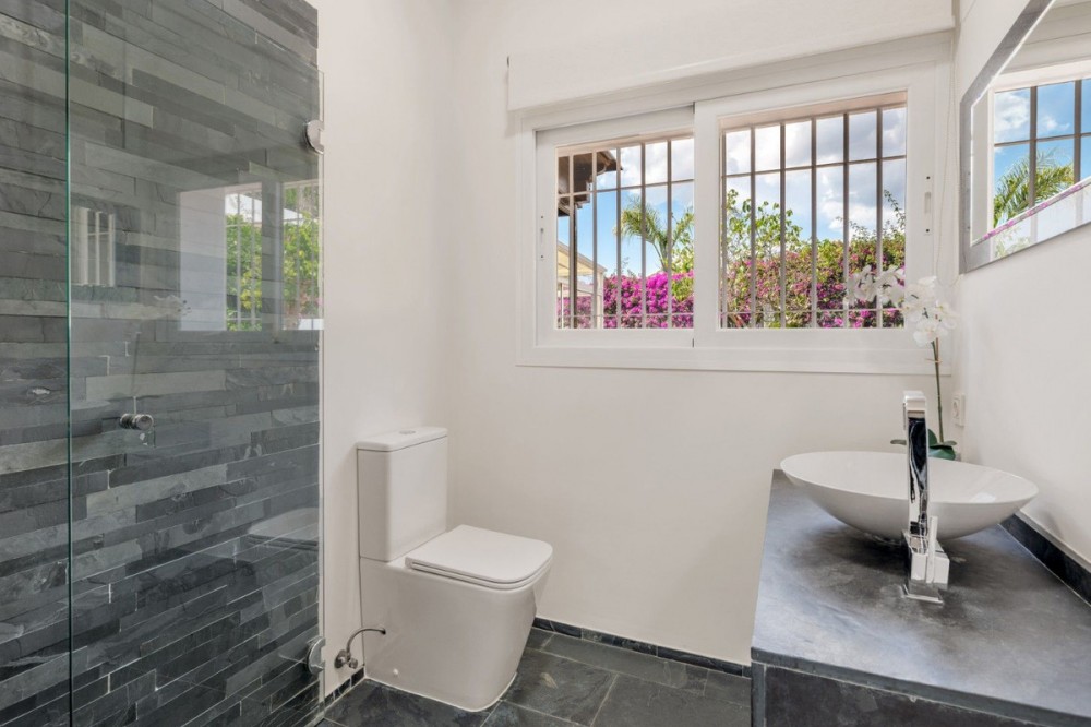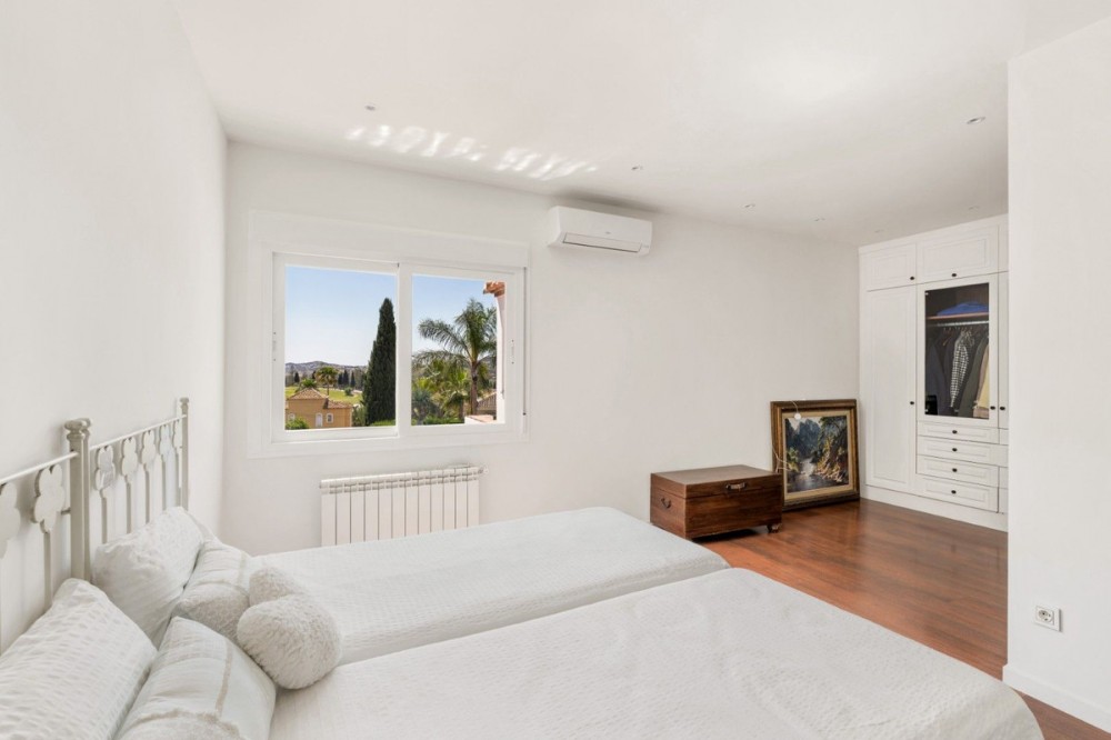 - Kiezen voor Mijas Golf betekent kiezen voor een ontspannen, gezinsvriendelijke levensstijl te midden van de natuur, in een van de meest gevestigde woonwijken van de Costa del Sol. Rustige straten, weidse uitzichten en een veilige, vredige sfeer gaan hand in hand met uitstekende toegang tot alles wat belangrijk is: internationale scholen, supermarkten, restaurants en de kust. Voor golfliefhebbers is de omgeving ook een ware klassieker, met twee gerenommeerde golfbanen, Los Lagos en Los Olivos, die prestige en een verfijnde, internationale uitstraling aan het dagelijks leven geven. Deze prachtig gerenoveerde villa, gelegen op een bevoorrechte locatie, is ontworpen voor zorgeloos wonen. De villa kenmerkt zich door royale afmetingen, overvloedig natuurlijk licht en een warme, uitnodigende sfeer vanaf het moment dat u binnenstapt. Op de begane grond bevinden zich drie ruime slaapkamers en drie badkamers, evenals een opvallende woonkamer met dubbele plafondhoogte, een houtkachel en grote ramen die uitzicht bieden op het groen. De volledig vernieuwde en goed uitgeruste keuken is licht en functioneel, ideaal voor het dagelijks leven en om gasten te ontvangen. Diverse overdekte terrassen breiden de leefruimte naar buiten uit, perfect voor een kopje koffie in de ochtend of ontspannen avonden in de schaduw. De benedenverdieping biedt extra flexibiliteit met een gastenslaapkamer met eigen badkamer en een tweede, ruime woonkamer, ideaal als aparte ruimte voor bezoekers, tieners, thuiswerkers of comfortabel wonen met meerdere generaties. Buiten komt het huis echt tot zijn recht. Een zorgvuldig onderhouden tuin biedt schaduwrijke plekjes, een aparte ontspanningsruimte en een authentieke mediterrane levensstijl met een buitenkeuken, barbecue en een elegant privézwembad, waardoor elke zomerdag voelt als een heerlijke vakantie in eigen huis. De villa beschikt ook over slimme, op duurzaamheid gerichte voorzieningen voor comfort en efficiëntie het hele jaar door, waaronder zonnepanelen, dubbele beglazing en voorbereiding voor een laadpunt voor elektrische voertuigen, evenals individuele airconditioning en verwarming in elke kamer. Als extra voordeel kunnen bewoners ook genieten van het nieuwe Gran Parque de la Costa del Sol, een uitgestrekt groen gebied van meer dan 270.000 m2 met een bevaarbaar meer, wandelpaden, sportvelden, tuinen en een openluchttheater, wat de aantrekkelijkheid en de waarde van wonen in dit gebied op de lange termijn verder verhoogt. Een villa om van te genieten, in te groeien en te delen, waar elk detail bijdraagt aan het welzijn van het gezin, op een van de meest complete en veelbelovende locaties aan de Costa del Sol. Het verkorte informatiedocument is voor u beschikbaar. Kosten: Belastingen (ITP of btw + AJD) + Notariële en registratiekosten. ALA.