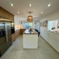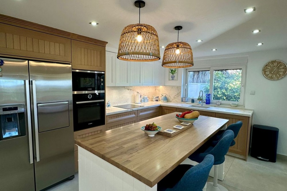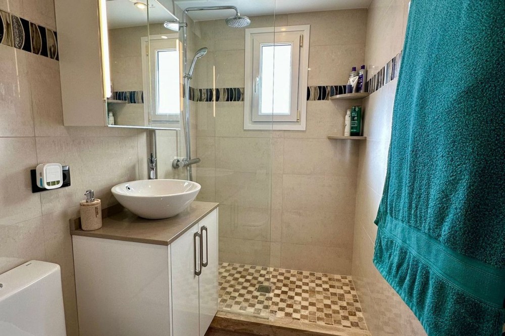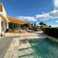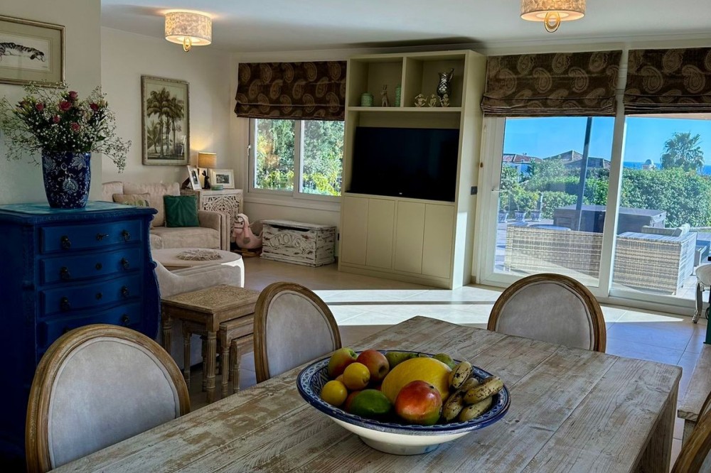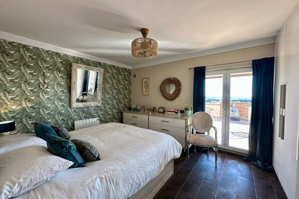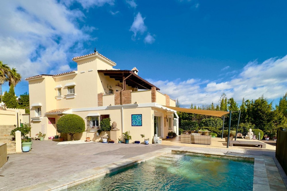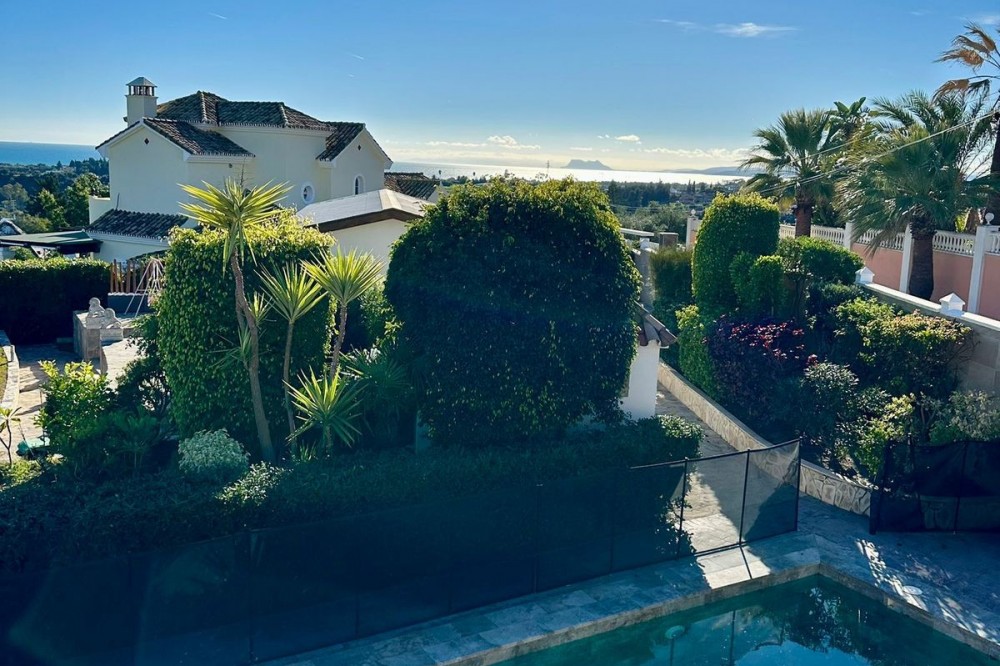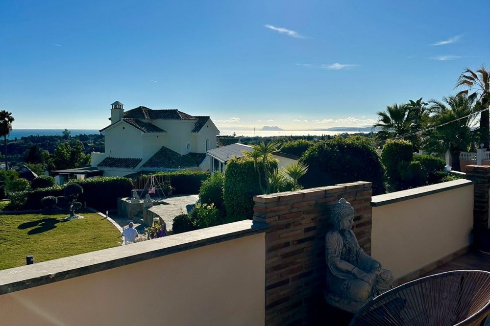 - Deze prachtige, op het zuiden georiënteerde gezinswoning is gelegen in Las Lomas, Estepona, in een rustige en veilige woonwijk en biedt een adembenemend panoramisch uitzicht over de Middellandse Zee. De woning is prachtig gerenoveerd tot een uitzonderlijk hoog niveau en is verdeeld over twee ruime verdiepingen, die comfort, functionaliteit en een uitstekende levenskwaliteit bieden. De begane grond beschikt over een lichte, open woonruimte die naadloos overgaat in een gloednieuwe, volledig ingerichte keuken, eethoek en zithoek. Vanuit de woonkamer is er directe toegang tot een groot terras, een privézwembad en een prachtig aangelegde tuin, waardoor een perfecte overgang tussen binnen en buiten ontstaat, ideaal voor dagelijks gebruik en het ontvangen van gasten. Grenzend aan de keuken bevindt zich een charmante, lichte kamer die perfect dienst kan doen als thuiskantoor, speelkamer of ontspanningsruimte. Deze verdieping omvat tevens een gastentoilet, een wasruimte en een ruime slaapkamer met eigen badkamer. De bovenverdieping biedt drie extra slaapkamers en twee badkamers, met als hoogtepunt de indrukwekkende master suite, die beschikt over een eigen badkamer en een groot privéterras met spectaculair panoramisch uitzicht op zee. De woning is volledig uitgerust met centrale verwarming en airconditioning, elektrische rolluiken voor extra comfort en veiligheid, en recent geïnstalleerde zonnepanelen. Alle slaapkamers zijn voorzien van inbouwkasten. De woning staat op twee samengevoegde percelen van in totaal circa 1.300 m² en beschikt over een groot, recent betegeld zwembad, een jacuzzi, een zorgvuldig onderhouden tuin, twee opritten met elektrische poorten en voldoende parkeerruimte. Als extraatje omvat het pand een aparte bungalow met twee slaapkamers, slechts een jaar oud, ideaal voor bezoekende familie en gasten, als huurinkomstenbron of als extra woonruimte. Gelegen in een rustige en kindvriendelijke omgeving op het platteland van Estepona, ligt de woning op slechts vijf minuten rijden van Laguna Village en tien minuten van het centrum van Estepona, en biedt zo de perfecte balans tussen privacy, uitzicht op zee en de nabijheid van alle voorzieningen.