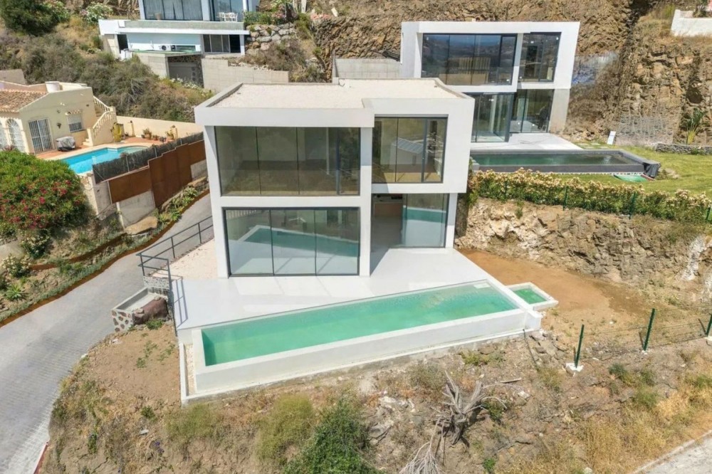 - Gloednieuwe, luxe en moderne villa, opgeleverd eind 2024, te koop in Cerros de Águila, Mijas, rechtstreeks van de particuliere eigenaar. Op steenworp afstand van het grootste park van Málaga, Parque Mijas. De woning is gelegen aan de achterkant van Cerros de Águila, in een doodlopende straat met 5 villa's die elk een eigen ingang hebben. Het biedt een fantastisch panoramisch uitzicht over de woonwijk, de zee en de bergen. In het complex bevinden zich diverse bars en restaurants. Het strand ligt op slechts 10 minuten rijden en er zijn golfbanen en winkels in de buurt. De villa heeft 3 verdiepingen met overal hoge plafonds. In het souterrain bevindt zich een veelzijdige ruimte die u naar eigen wens kunt inrichten, inclusief parkeergelegenheid voor uw auto's. Hier kunt u gemakkelijk 2 slaapkamers en een badkamer creëren. Grote ramen zorgen voor veel natuurlijk licht en er is een buitentrap naar het huis. Op de eerste verdieping, bereikbaar via een trap, vindt u een ruime open woon-/eetkamer en een volledig ingerichte keuken met hoogwaardige apparatuur. De grote schuifdeuren, die toegang geven tot het terras, het zwembad en de tuin, zorgen voor veel natuurlijk licht. Op deze verdieping bevindt zich tevens een toilet, hoge plafonds en airconditioning (warm en koud). Op de tweede verdieping bevinden zich 3 tweepersoonsslaapkamers met twee en-suite badkamers met ruime douches. De derde slaapkamer is voorbereid voor een derde badkamer. Ook hier is airconditioning (warm en koud), inbouwkasten en wederom grote ramen die zorgen voor veel natuurlijk licht en een prachtig uitzicht. U bent slechts 20 minuten rijden van de luchthaven van Málaga en 25 minuten van Marbella. Neem contact met ons op voor meer informatie en een bezichtiging. Absoluut een bezichtiging waard!