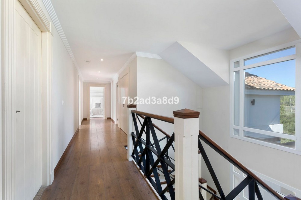 - Deze villa, gelegen in een rustige doodlopende straat in de zeer gewilde badplaats Sotogrande, is op het zuiden georiënteerd. De woning is gebouwd in 2005 en sindsdien smaakvol gerenoveerd. De locatie is ideaal, dicht bij winkels, de jachthaven en het strand. De villa is gelegen op een prachtig perceel van 1.543 m² in een beveiligde woonwijk en biedt een panoramisch uitzicht over het privézwembad en de goed onderhouden tuin. Met een bebouwde oppervlakte van 403 m² beschikt de woning over zes slaapkamers en vijf badkamers. De villa biedt parkeergelegenheid voor twee tot drie auto's binnen de afgesloten oprit, evenals een overdekte veranda met ruimte voor twee auto's, die toegang geeft tot de hoofdingang van het huis. De hal komt uit op een ruime woonkamer met open haard en een volledig uitgeruste keuken met eethoek. Op de begane grond bevinden zich twee ruime slaapkamers, elk met een eigen badkamer. De eerste verdieping omvat de master suite met een eigen badkamer en een grote inloopkast, evenals drie gastenslaapkamers die twee badkamers delen. Extra voorzieningen zijn onder andere een wasruimte, berging, airconditioning (warm en koud), wifi, bewakingscamera's, een beveiligde ingang en een alarmsysteem.