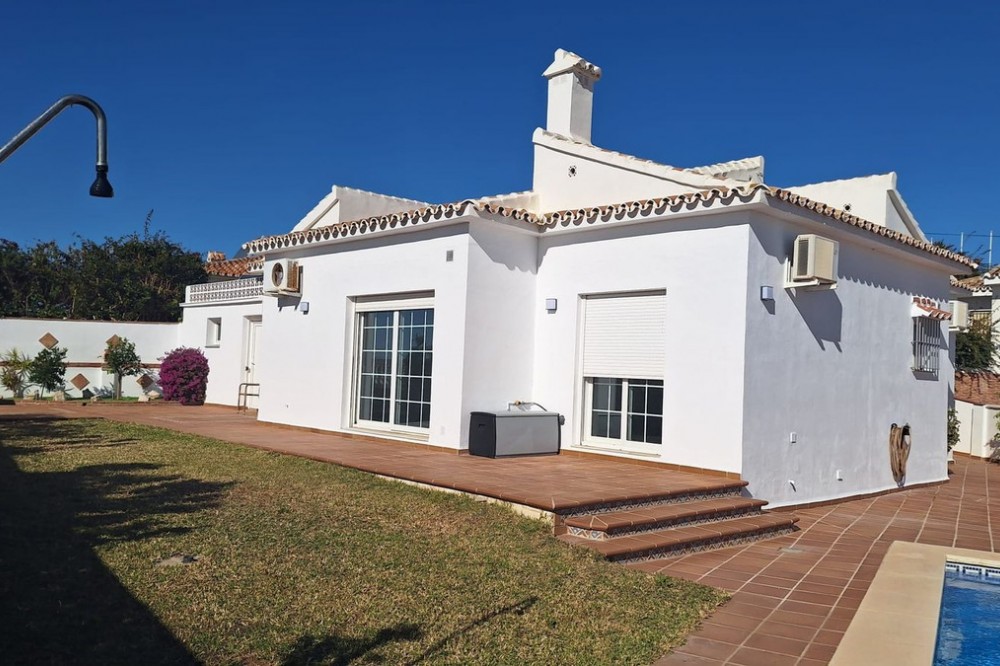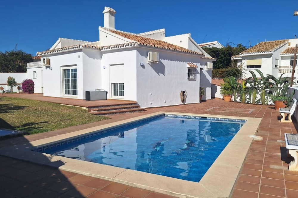 - Lovely 3 Bedroom, 2 Bathroom Single-Level Villa/Bungalow with Sea Views | El Chaparral, Mijas Costa, Costa Del Sol. PLEASE TAKE NOTE - PRE-APPROVAL GRANTED TO ADD AN ADDITIONAL LIVING FLOOR, PLUS A ROOF TERRACE TO-WHICH WILL GAIN EVEN MORE SPECTACULAR SEA VIEWS AND INCREASE THE PROPERTY VALUE. * We are truly delighted to present to you this beautifully maintained 3 bedroom, 2 bathroom Villa, ideally positioned In the highly sought-after residential area of El Chaparral. * Set on a single level and offering sea views, this property is perfectly suited for relaxed coastal living. * Located just a few minutes’ walk from the beach, the villa sits with-in a quiet cul-de-sac, providing privacy, tranquillity, and an excellent lifestyle setting close to nature and the sea. * Property Highlights: - Breath-taking Sea Views from the private walled garden and swimming pool. - 3 bedrooms and 2 bathrooms (Master En-Suite). - Single-level Villa/Bungalow. - Private swimming pool. - Recently repainted throughout. - Brand-new Lounge & Bedrooms Interior flooring. - Fully equipped kitchen with direct access to the garden & pool. - Direct access to the pool area via lounge and the master bedroom. - Sold unfurnished. - Very Spacious outdoor terrace areas ideal for dining and entertaining with friends/family. - Off-street parking, plus private garage. * This is a fantastic opportunity to acquire a move-in-ready property located In one of Mijas Costa’s most requested residential areas, combining location, comfort, and coastal charm. - Quiet cul-de-sac setting offering privacy and peace. - Walking distance to the beach and coastal paths. - Close to El Chaparral Golf Club, ideal for golf enthusiasts. - Excellent access to the A-7, connecting Marbella, Fuengirola, and Málaga Airport. - Short drive to La Cala de Mijas with its restaurants, shops, beach clubs, and amenities. - Ideal as a permanent residence, holiday home, or investment opportunity. * This is a fantastic rare opportunity to acquire a move-in-ready villa in one of Mijas Costa’s most requested residential areas, combining location, comfort, and coastal charm. * If you would like more information or you wish to arrange a viewing appointment please contact Robbie Saunders or Dawn Gandy.