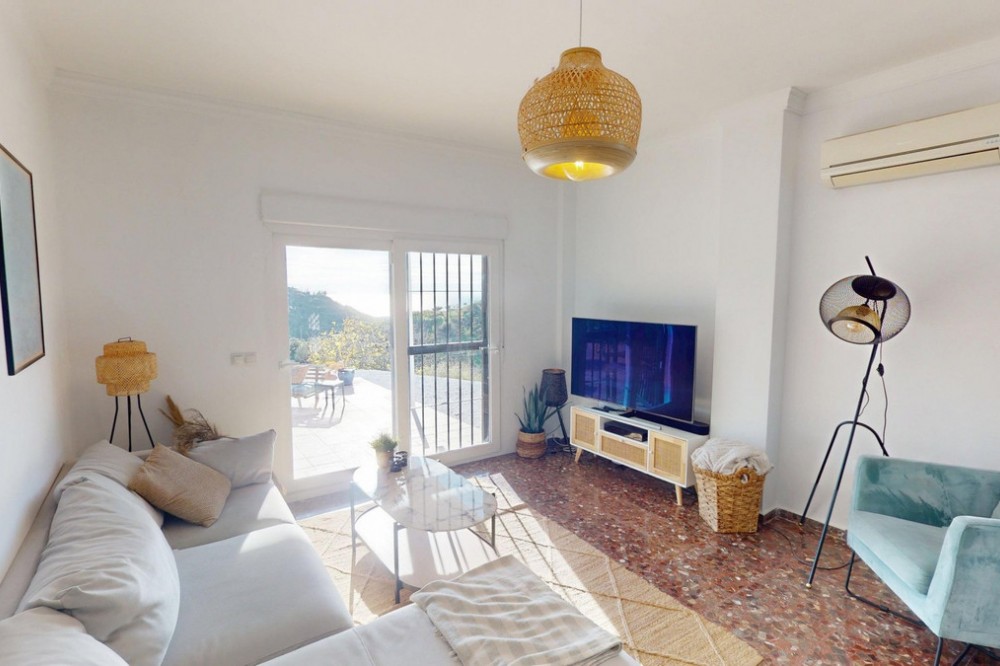- Step into a world where Mediterranean elegance meets modern comfort in this charming 76.2 m2 property located in the heart of Moclinejo, Malaga. This sun-drenched home is your gateway to the coveted Spanish lifestyle, with two bedrooms and thoughtfully designed living space that maximises both form and function. The heart of this home is undoubtedly the stunning kitchen, where culinary dreams come true. Light wood furniture brings warmth, while state-of-the-art appliances, including a sleek gas hob and built-in oven, satisfy your inner chef. The checkered floor adds a touch of classic charm, combining tradition with contemporary style. The living-dining room is an example of the modern Spanish lifestyle, with natural light streaming in through large windows, illuminating the space and offering stunning views of the surrounding landscape. An elegant rattan pendant lamp creates a cozy atmosphere for relaxing or entertaining. The room opens onto a lovely terrace, ideal for alfresco dining or simply enjoying the Mediterranean sunshine. The master bedroom is a serene retreat, with 17.7 m2 of absolute comfort. Mirrored cabinets maximize space and reflect light, making the room feel even more spacious. Another rattan lamp adds a bohemian touch, complementing the airy atmosphere of the room. The second bedroom, currently used as a children's room, demonstrates the versatility of the property. With its neutral palette and charming details, it's ready to adapt to your needs, whether as a children's bedroom, home office, or guest suite. The bathroom is a spa-like oasis, with stylish tiles and modern fixtures. A large window allows natural light to flood the space, creating a bright and refreshing atmosphere. Throughout the property, terracotta floors bring an authentic Spanish character, while modern amenities such as air conditioning ensure year-round comfort. The thoughtful layout and elegant design create a harmonious flow, making every day feel like a Mediterranean holiday. Located in the picturesque village of Moclinejo, this property offers the perfect balance between tranquillity and access to Malaga's vibrant culture. Here, you don't just buy a house; Invest in a lifestyle that embodies the essence of Spanish charm and modern convenience. Make this place your own Mediterranean paradise and start living the life you've always dreamed of. We are pleased to be able to present this dream property to you very soon, either in person or via a virtual viewing. Because this world is unique, just like our Axarquía. In Andalusia. On the Costa del Sol. Here, on the sunny side of life... We are delighted to be able to present this property to you soon, either personally or via virtual viewing. Because this world is unique - like our Axarquía. In Andalusia. On the Costa del Sol. Here, on the sunny side of life...