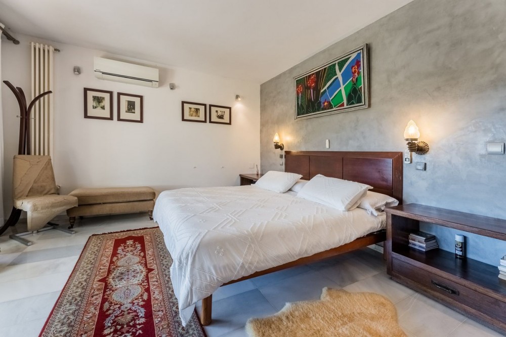 • Twee ruime, lichte villa's met prachtig uitzicht op de bergen en de tuin, gelegen in het hart van de Golfvallei van Nueva Andalucia. Dit uitzonderlijke object biedt twee onafhankelijke villa's op een ruim perceel van 1.753 m². Omgeven door volgroeide tuinen en met een prachtig uitzicht op de bergen en de tuin, onderscheidt het landgoed zich door zijn solide constructie, royale ruimtes en gastvrije sfeer. Een verwarmd zwembad en goed onderhouden buitenruimtes creëren een ideale omgeving voor ontspannen gezinsleven en het ontvangen van gasten. De woning verkeert in zeer goede staat, met de mogelijkheid tot een lichte esthetische opknapbeurt om de eigentijdse uitstraling verder te versterken. Een zeldzaam kenmerk van dit landgoed is de veelzijdigheid. Het bestaat uit een hoofdverblijf en een tweede, volledig zelfstandig gebouw dat momenteel is vergund als medische praktijk en kantoor. Het gehele pand is volledig legaal en beschikt over een commerciële vergunning, waardoor het een unieke kans biedt om wonen, zakelijk gebruik en investeringspotentieel op één adres te combineren. Hoofdverblijf De hoofdvilla is ontworpen door een gerenommeerde lokale architect en combineert tijdloze elegantie met een praktische indeling over meerdere verdiepingen, wat comfort en privacy garandeert. De eerste verdieping omvat een keuken, een eetgedeelte, een woonkamer en een gastentoilet. De tweede verdieping komt uit op een ruime woonkamer die toegang geeft tot een overdekt terras met zitgelegenheid en een barbecue, met uitzicht op de tuin, het verwarmde zwembad, de omliggende bergen en de skyline van Marbella. De derde verdieping beschikt over twee slaapkamers die een complete badkamer met jacuzzi delen, plus een aparte wasruimte. De bovenverdieping is volledig gewijd aan de master suite met en-suite badkamer en kleedkamer, een extra badkamer en twee extra slaapkamers, waarvan één met een overdekt terras met uitzicht op de tuin. Lichte interieurs, hoogwaardige materialen en een doordacht ontwerp maken deze woning ideaal voor gezinsbewoning of verfijnd residentieel gebruik. Afzonderlijke villa Het tweede gebouw strekt zich uit over twee verdiepingen. Het heeft een eigen lift. De bovenverdieping beschikt over een royale woonkamer van 80 m² en een kantoor van 40 m² met direct uitzicht op de tuin en het zwembad. De benedenverdieping omvat een slaapkamer met complete badkamer, een tweede woonkamer met gastentoilet en een extra multifunctionele ruimte. Deze villa biedt uitzonderlijke flexibiliteit. Het kan blijven functioneren als werk- of wellnessruimte, gastenverblijf, privéstudio of zelfstandige woning. De bestaande commerciële vergunning voegt aanzienlijke waarde toe voor iedereen die wil wonen en werken vanuit één pand. Het kan ook worden verhuurd. Buitenruimtes Het exterieur is ontworpen om het hele jaar door van de mediterrane sfeer te kunnen genieten. Een volledig uitgeruste buitenkeuken, bar en loungegedeelte, ruime eethoeken, volwassen beplanting en een privé verwarmd zwembad creëren een ontspannen en besloten omgeving voor familiebijeenkomsten of het ontvangen van gasten. Een uniek pand in Marbella dat woonkarakter, professionele veelzijdigheid en investeringspotentieel combineert. Of het nu gaat om een familielandgoed met gastenverblijf, een privéwoning of een ander privébedrijf. Of het nu gaat om een kliniek, een studio of een multifunctioneel beleggingspand, dit is een zeldzame kans in de Golfvallei van Nueva Andalucía.