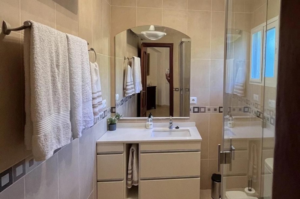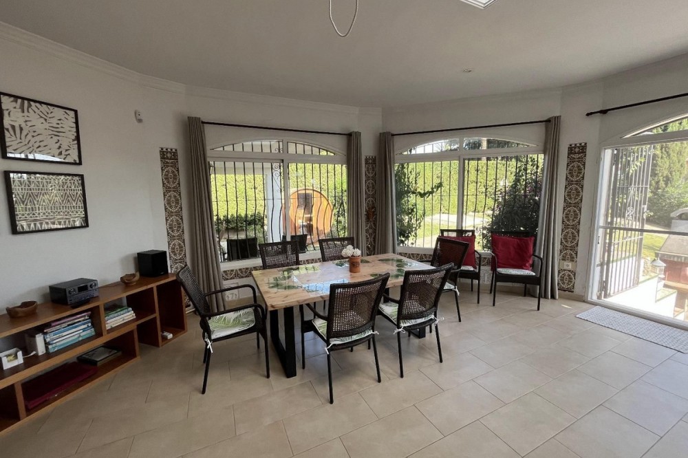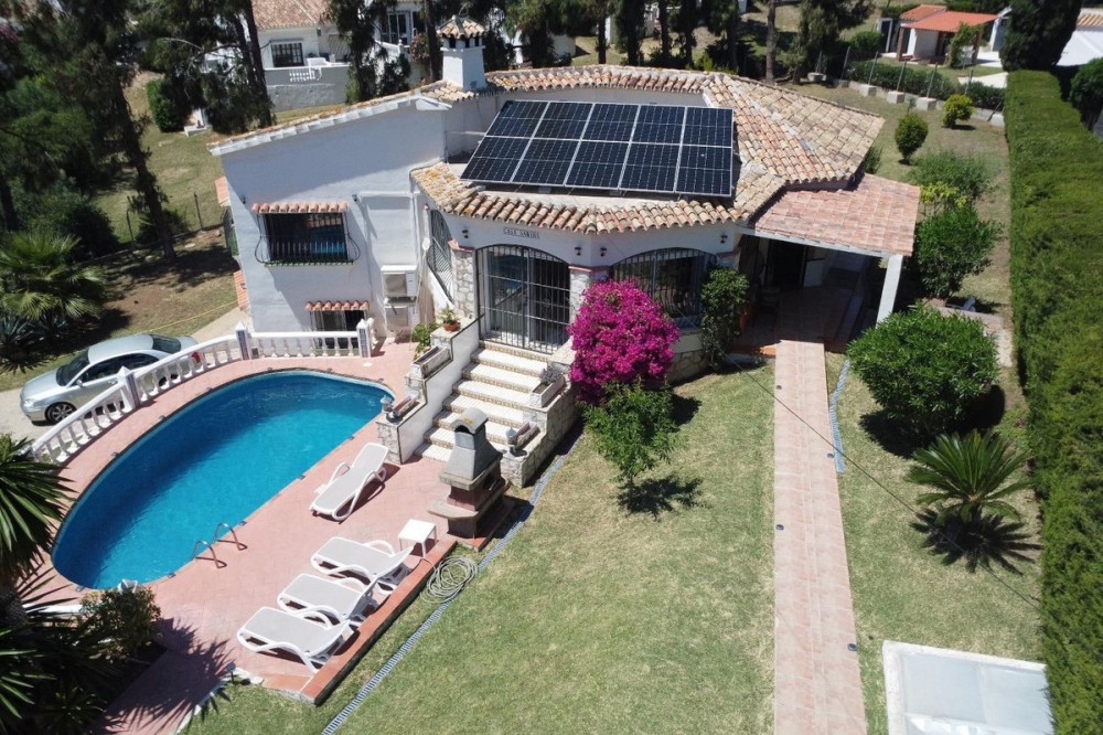 - BRIGHT AND SPACIOUS VILLA WITH PRIVATE POOL, GARAGE AND MULTIPLE PARKING – EL CHAPARRAL, MIJAS COSTA Discover this charming and exceptionally bright villa located in a peaceful residential neighborhood, just a short walk from the beach and moments from a renowned golf course. Offering privacy, generous living spaces, and excellent outdoor features, this property is ideal as a permanent residence, holiday home, or high-performing investment. The villa features 3 spacious bedrooms and 2 bathrooms, including a comfortable en-suite master bedroom. Natural light fills the home throughout the day thanks to its favorable orientation, creating a warm and inviting atmosphere across the living areas. Designed for both relaxation and entertaining, the property boasts a private swimming pool, a lovely outdoor BBQ area, and a cozy fireplace inside — perfect for enjoying the home year-round. The home also offers a private garage along with a driveway that accommodates multiple vehicles, providing both convenience and security — a highly valued feature for family living or hosting guests. Conveniently positioned, the villa is approximately 8 minutes by car to supermarkets and essential amenities, and only 20 minutes from Málaga Airport, ensuring excellent connectivity while maintaining a tranquil setting. If you are looking for a bright, spacious home in a quiet yet well-connected area close to the sea and golf, this villa presents a fantastic opportunity. Detached Villa, El Chaparral, Costa del Sol. 3 Bedrooms, 2 Bathrooms, Built 329 m², Garden/Plot 1074 m². Setting : Close To Port, Close To Shops, Close To Sea, Close To Town, Close To Schools, Close To Marina, Urbanisation. Orientation : South East. Condition : Excellent. Pool : Private. Climate Control : Air Conditioning, Hot A/C, Cold A/C, Fireplace. Views : Garden, Pool. Features : Covered Terrace, Fitted Wardrobes, Private Terrace, Sauna, Storage Room, Utility Room, Ensuite Bathroom, Barbeque. Furniture : Fully Furnished. Kitchen : Fully Fitted. Garden : Private. Parking : Garage, Covered, More Than One, Private. Utilities : Electricity. Category : Golf, Holiday Homes.