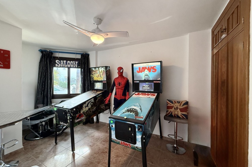• Bright and spacious detached villa with private pool on terrace, yet located in a gated community. This unique property is distributed over two floors, the ground floor comprising a hallway, stunning lounge/dining room with open plan, newly fitted modern kitchen with a central island area. From the lounge through large patio doors is the newly retiled terrace with private pool, overlooking Miraflores Golf Course. There is also a guest cloakroom and utility area/storage room. On the upper floor level is the very spacious master bedroom with an en-suite bathroom, 2 further double bedrooms, and a family bathroom. The property also has a private garage, accessed via a gated communal driveway. In addition, the current owner has converted a basement area into a self-contained studio apartment, perfect for those extra guests! The community comprises pathways, subtropical trees, plants, and flowers, and is beautifully maintained. It is located in the heart of the lower Riviera del Sol, just a short walk to local shops, bars, and restaurants, and even the beach and public transport. This property is a perfect family home but offers superb rental income potential too! This community permits short-term rentals. Indoor built area: 110m². Terrace: 15m². Parking space: 23m². Total: 148m². Community fees: €190 per month. IBI fees: €684 per year.