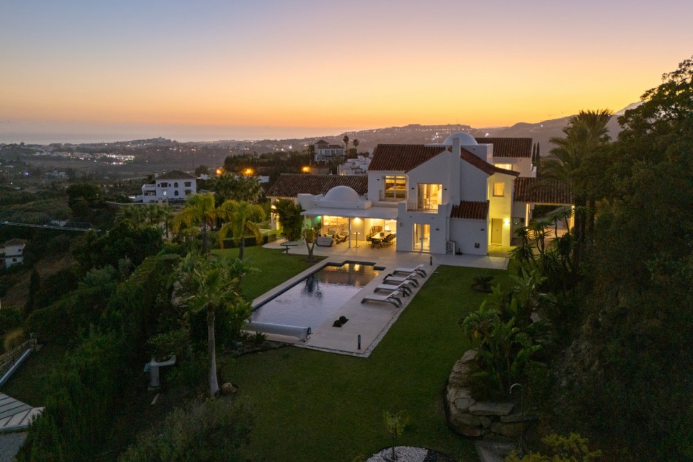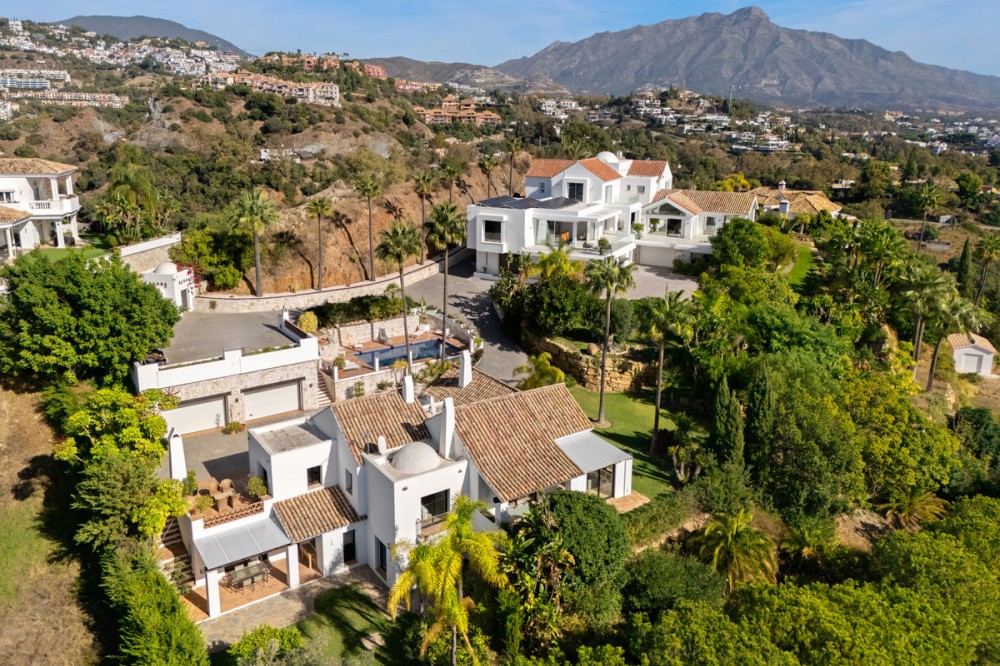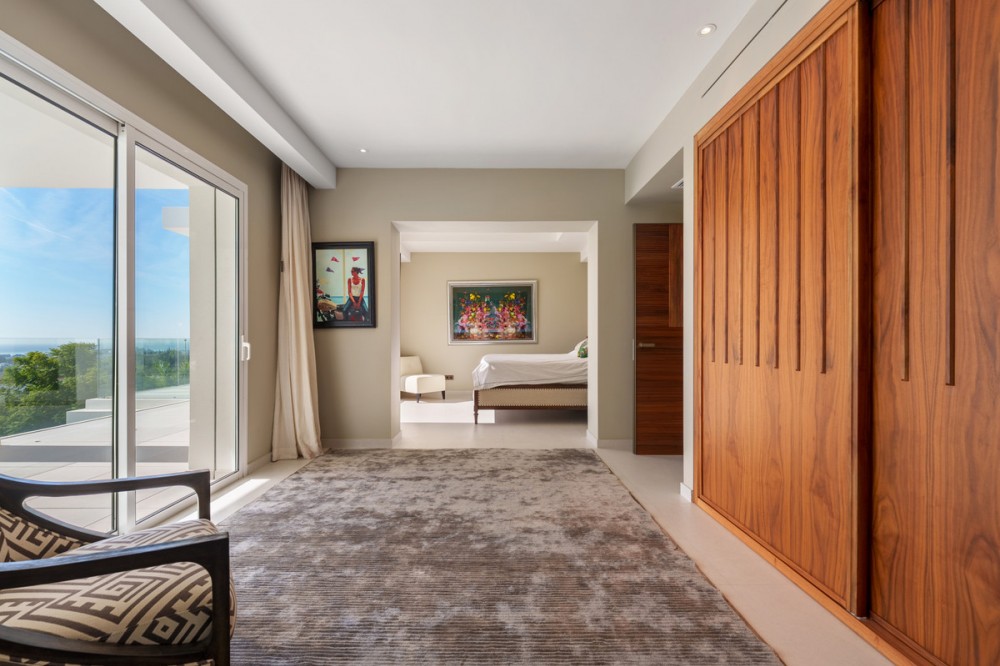 • Een villa op het zuiden in Puerto del Almendro, Benahavís, met negen slaapkamers en negen badkamers en suite, verdeeld over een hoofdgebouw en een apart gastenverblijf op een perceel van 7.881 m², met circa 1.177 m² bebouwde oppervlakte, 140 m² terrassen, twee buitenzwembaden en een weids uitzicht op de zee en de bergen langs de Middellandse Zeekust. Casa K is gelegen op een bevoorrechte locatie op een heuvel, waardoor licht, ruimte en een prachtig uitzicht het dagelijks leven verrijken. De architectuur volgt een eigentijdse mediterrane stijl met royale interieurs, veel glas en een natuurlijke overgang tussen de binnenruimtes en de omliggende terrassen. De toegang is discreet via een privé-oprit met een ruime parkeergelegenheid voor maximaal achttien auto's. Het aparte gastenverblijf biedt bezoekers of familieleden de mogelijkheid om comfortabel te verblijven, terwijl de privacy in het hoofdgebouw gewaarborgd blijft. De binnenruimtes voor ontspanning zijn praktisch en doordacht, met onder andere een aparte bioscoopkamer, een wijnkelder en een volledig uitgeruste fitnessruimte. Deze ruimtes zijn ontworpen voor regelmatig gebruik in plaats van incidenteel gebruik, en zijn geschikt voor zowel permanent wonen als langere verblijven. Buiten is het landgoed zorgvuldig ingedeeld met aangelegde terrassen, twee zwembaden die verschillende delen van het perceel bedienen, en diverse uitzichtpunten over de zee, het landschap en de tuin. De omvang van het terrein zorgt voor een gevoel van rust en privacy, zonder dat het afgelegen aanvoelt. Puerto del Almendro is een gevestigde woonwijk die privacy en rust biedt, terwijl het toch dicht bij Marbella, Puerto Banús, golfbanen, scholen en alle dagelijkse voorzieningen ligt. Het is aantrekkelijk voor kopers die op zoek zijn naar ruimte en discretie zonder in te leveren op bereikbaarheid of een comfortabele levensstijl. Bent u op zoek naar een woning die echte ruimte biedt, privacy voor gasten garandeert en een omgeving creëert die het dagelijks leven verrijkt? Dan raden wij een privébezichtiging aan. Een wandeling over het perceel en door de verschillende ruimtes geeft een veel beter beeld van hoe het pand als geheel functioneert.