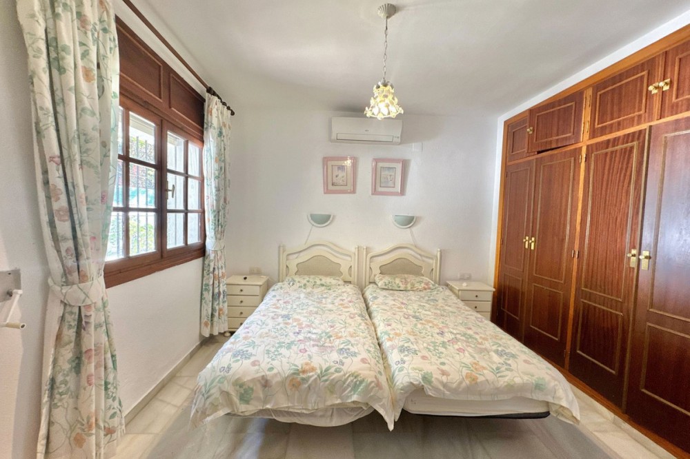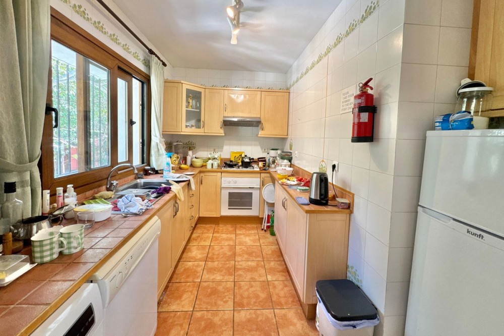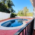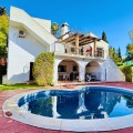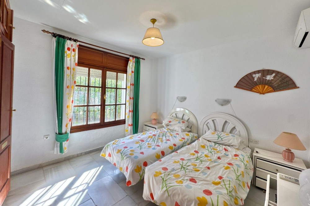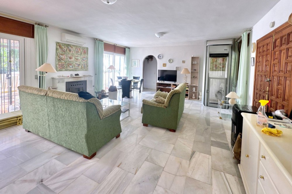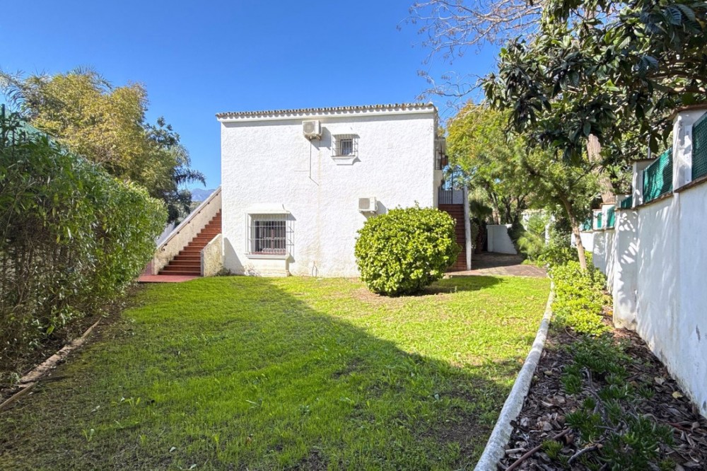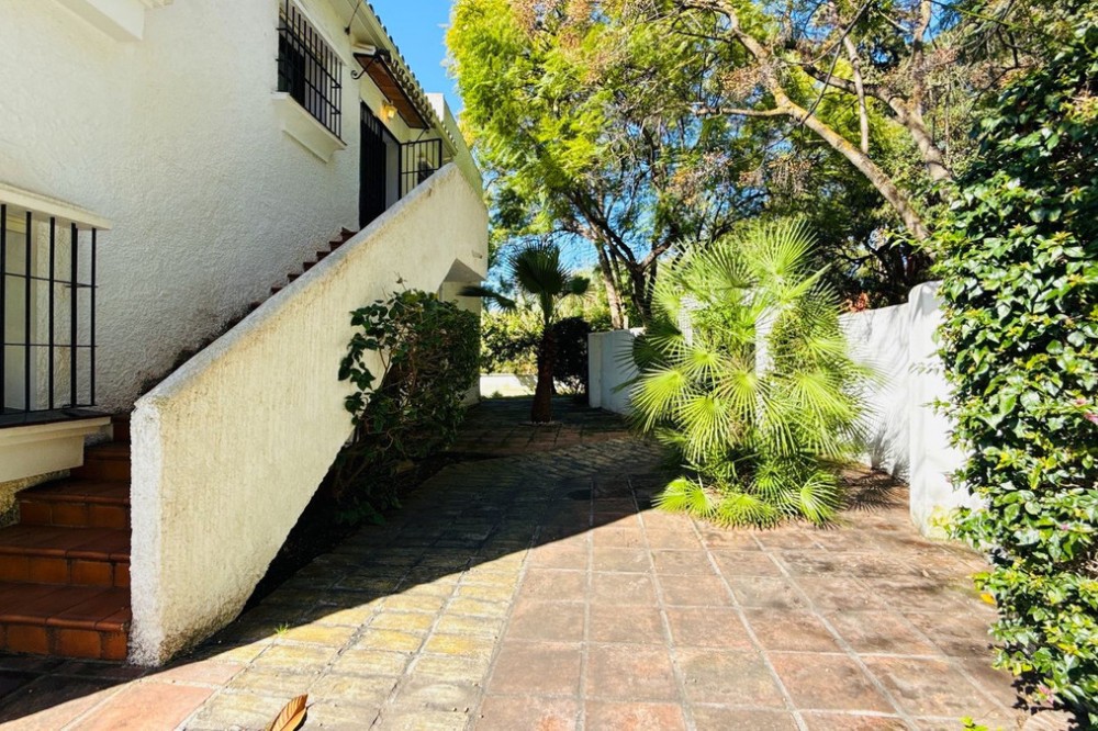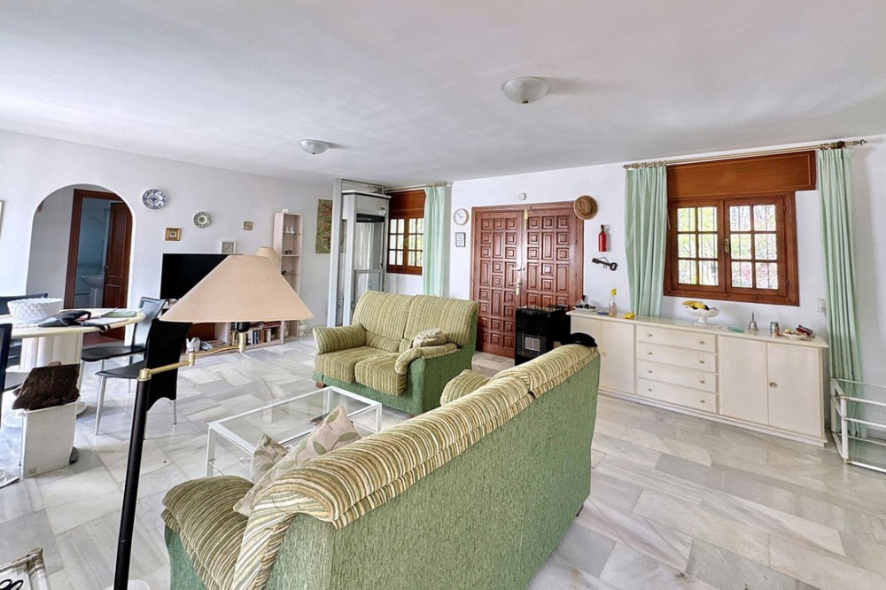 - Deze vrijstaande woning is zeer gunstig gelegen in een rustige doodlopende straat in het lager gelegen deel van El Rosario. Op loopafstand vindt u tal van voorzieningen, zoals de plaatselijke tennisclub en sportschool, een ruime keuze aan Spaanse en internationale cafés en bars, en iets verderop de heuvel liggen natuurlijk de prachtige stranden van Oost-Marbella! Het perceel is vlak, grotendeels bestaande uit tuin, en beschikt over een zwembad van normale afmetingen. De woning zelf is verdeeld over twee verdiepingen. De begane grond bestaat uit een grote open woon-, eet- en keukenruimte, plus 2 slaapkamers en een badkamer. Boven bevindt zich het hoofdgedeelte van de woning, met 3 slaapkamers, 2 badkamers, een zeer sfeervolle woonkamer met open haard en een tweede keuken. Vanaf deze verdieping is er via een andere trap toegang tot een groot solarium met een prachtig panoramisch uitzicht over de aangrenzende golfbaan en La Concha. De woning is gebouwd in het midden van de jaren 80 en verkeert in originele staat, maar biedt enorm veel potentie voor de juiste koper. Een fantastische woning op een fantastische locatie.