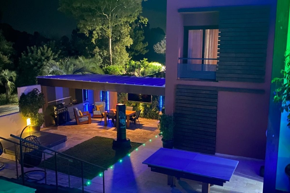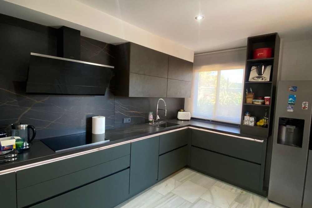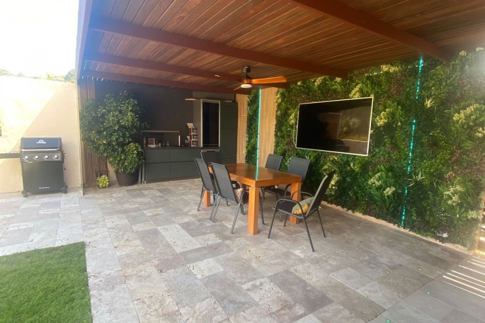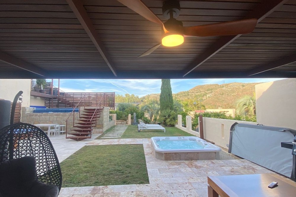 • Beautiful villa in the Parque Botanico urbanization, completely renovated. The house has four bedrooms, four bathrooms, a living room, kitchen, garage, storage room, garden, heated pool, jacuzzi, BBQ area, billiards table, and forest views. The urbanization features several swimming pools with a poolside bar, paddle tennis courts, tennis courts, squois, a football/basketball court, a heated pool, a gym, saunas, and a jacuzzi, and is located just 15 km from Estepona and San Pedro de Alcantara.