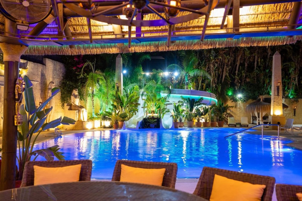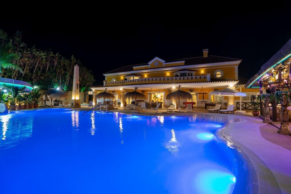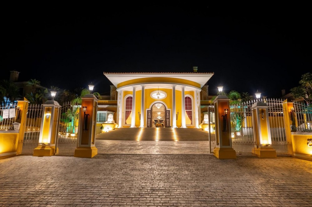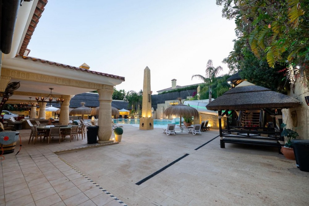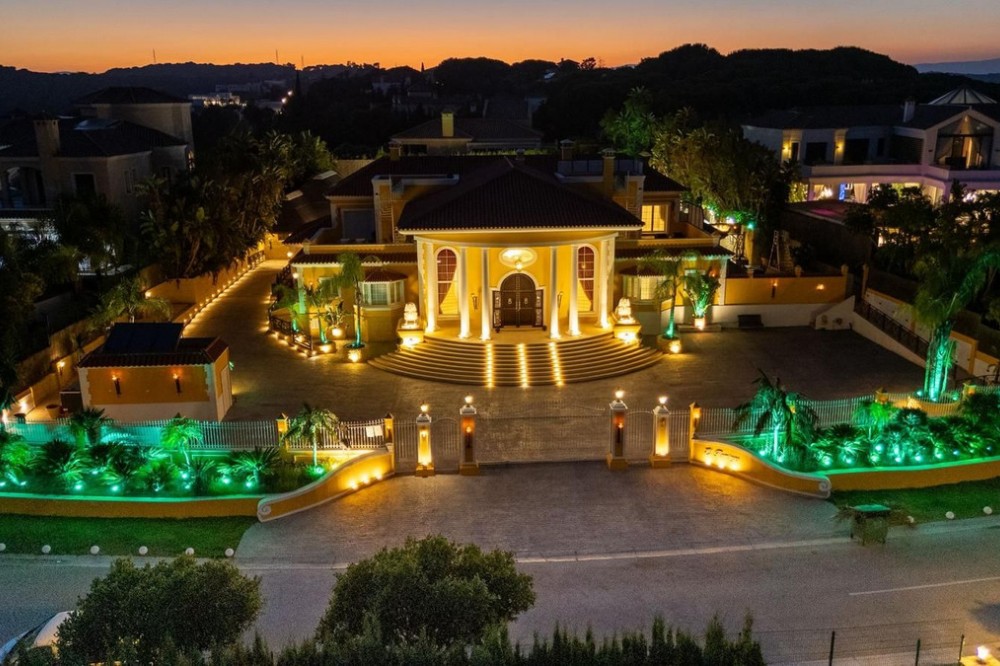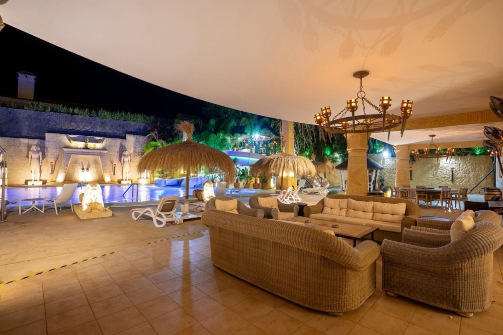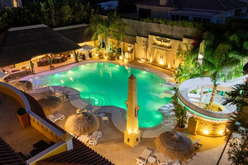 - Deze grote, luxe villa, gelegen in Zone G van Sotogrande Alto, is door de huidige eigenaar in een periode van 10 jaar gebouwd volgens een zeer hoge standaard, met gebruikmaking van de modernste materialen en een ruime selectie schitterende kristallen kroonluchters. De grote entreehal beschikt over twee gebogen marmeren trappen die naar de bovenverdieping leiden, waar zich drie slaapkamers bevinden, waaronder de master suite met een Egyptisch thema, handgeschilderde muren, sierlijke lijsten en massieve stenen pilaren. Er is ook een privéwoonkamer met uitzicht op de tuin en het zwembad. Deze verdieping heeft een kleedkamer en de en-suite badkamer met een bubbelbad en een dubbele inloopdouche. Twee andere ruime slaapkamers, beide met eigen badkamer, bevinden zich op deze verdieping en bieden toegang tot het privéterras en van daaruit een trap naar het privésolarium. In de villa is een lift die alle drie de verdiepingen bedient. Op de begane grond bevinden zich de grote woonkamer, de eetkamer en deuren naar het overdekte terras en het zwembad. Er is ook een servicekeuken met provisiekast, een bijkeuken en een was-/bergruimte. Er is ook een volledig uitgeruste bioscoopkamer met 8 lederen stoelen. In het souterrain bevindt zich de entertainmentruimte, geheel ingericht en met de hand beschilderd in een Egyptisch thema, met bijpassende decoraties. Er is een pokertafel, zitgedeeltes, een grote cocktailbar, een moderne fitnessruimte met kleedkamers en douches, en nog twee slaapkamers met en-suite badkamers, eveneens in Egyptische stijl. In het midden van de woonkamer staat een miniatuurtheater, gemodelleerd naar een theater in het West End van Londen, met twee loges en 37 zitplaatsen. Luxueus ingericht in theatrale stijl, is het voorzien van een compleet decor en rekwisieten voor een productie van de musical Phantom of the Opera en biedt het een compleet geluids- en lichtinstallatie, evenals de mogelijkheid om films te vertonen met het bioscoopsysteem en een podium voor kleine privéconcerten. De werkzaamheden aan de villa en het terrein zijn nog niet voltooid, maar dit is een uniek en persoonlijk object, zeker de moeite waard om te bezichtigen voor de koper die op zoek is naar een bijzondere woning.