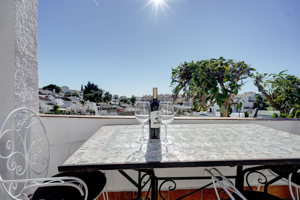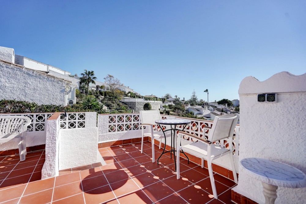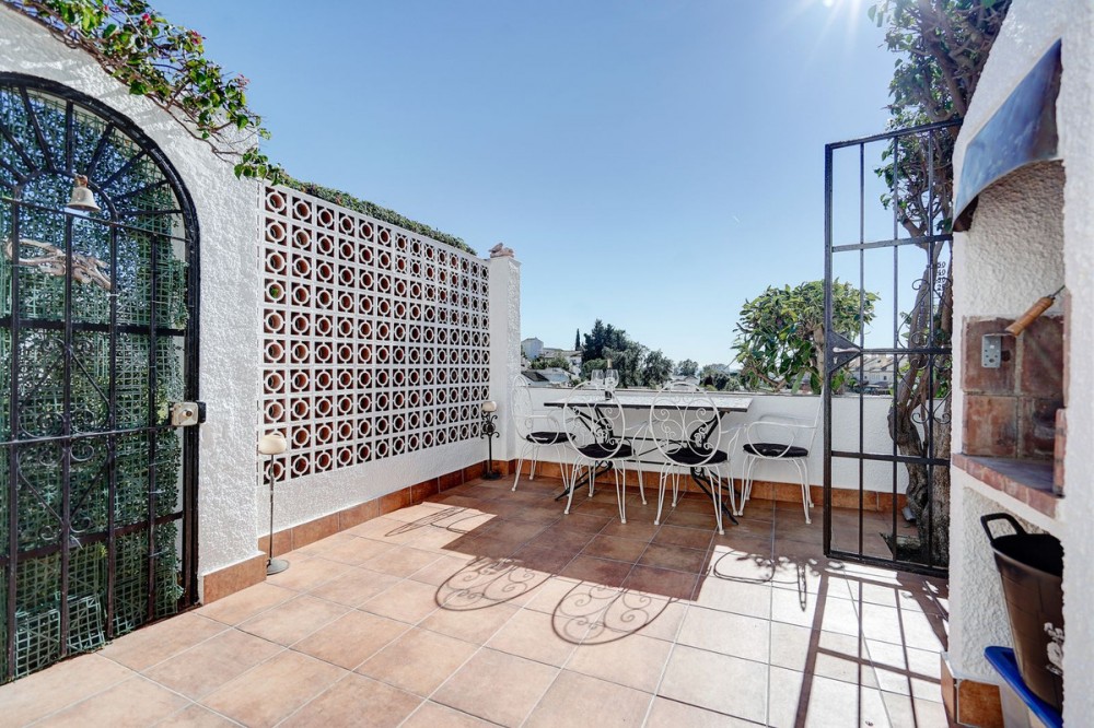 - Gerenoveerde bungalow met 2 slaapkamers en uitzicht op zee te koop. Deze volledig gerenoveerde bungalow met 2 slaapkamers in Calahonda is direct klaar om in te trekken en ligt op een fantastische locatie. De woning is volledig gerenoveerd met hoogwaardige materialen en biedt uitzicht op zee vanuit de woonkamer en de terrassen. De omgeving is goed bereikbaar, met Marbella op slechts 20 minuten en de luchthaven van Málaga op slechts 25 minuten rijden. Het interieur is licht en modern. De woon- en eetkamer hebben grote ramen die veel natuurlijk licht binnenlaten en uitzicht bieden op zee, en een elektrische haard voor de koudere maanden. De moderne keuken is volledig uitgerust met apparatuur en heeft een doorgeefluik naar het terras, wat vooral handig is als u buiten wilt dineren. Er zijn twee tweepersoonsslaapkamers met airconditioning (warm en koud) en een complete badkamer met ligbad. Alle ramen zijn voorzien van dubbel glas en horren. Buiten beschikt de woning over een hoofdterras met uitzicht op zee en een ingebouwde barbecue, plus een trap naar een dakterras met een nog breder uitzicht, stopcontacten en zon gedurende de hele dag. De tuin loopt rondom de bungalow en is aangelegd met onderhoudsvriendelijk kunstgras. Er is ook een buitenberging en glasvezelinternet aanwezig. De gemeenschap is afgesloten en beveiligd en de gemeenschappelijke tuinen zijn goed onderhouden en ruim, met een groot gemeenschappelijk zwembad. Een winkelcentrum met supermarkten, een apotheek, bars en restaurants ligt op ongeveer 3 minuten loopafstand en het strand is in minder dan 10 minuten te voet te bereiken. De woning wordt volledig gemeubileerd aangeboden en beschikt over een eigen garage. Samenvatting: Volledig gerenoveerde bungalow met 2 slaapkamers en 1 badkamer. Privégarage inbegrepen bij de verkoop. Wordt volledig gemeubileerd verkocht Uitzicht op zee vanuit de lounge en de terrassen. Dakterras met stopcontacten en de hele dag zon. Moderne inbouwkeuken met doorgeefluik naar het terras Prachtige gemeenschappelijke tuinen en een groot gemeenschappelijk zwembad. Winkels, restaurants en het strand zijn op korte loopafstand.
