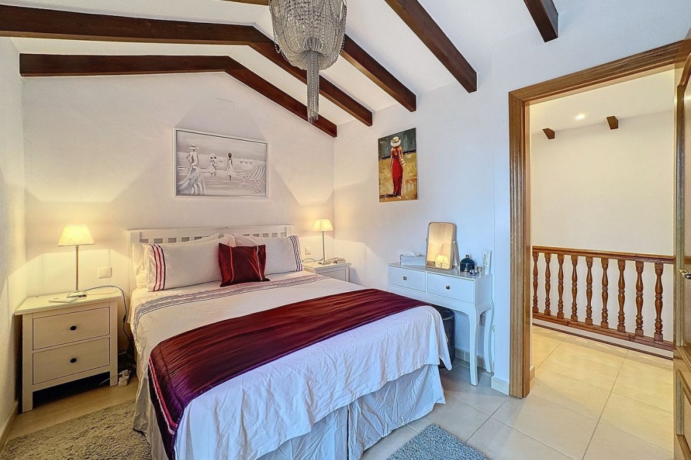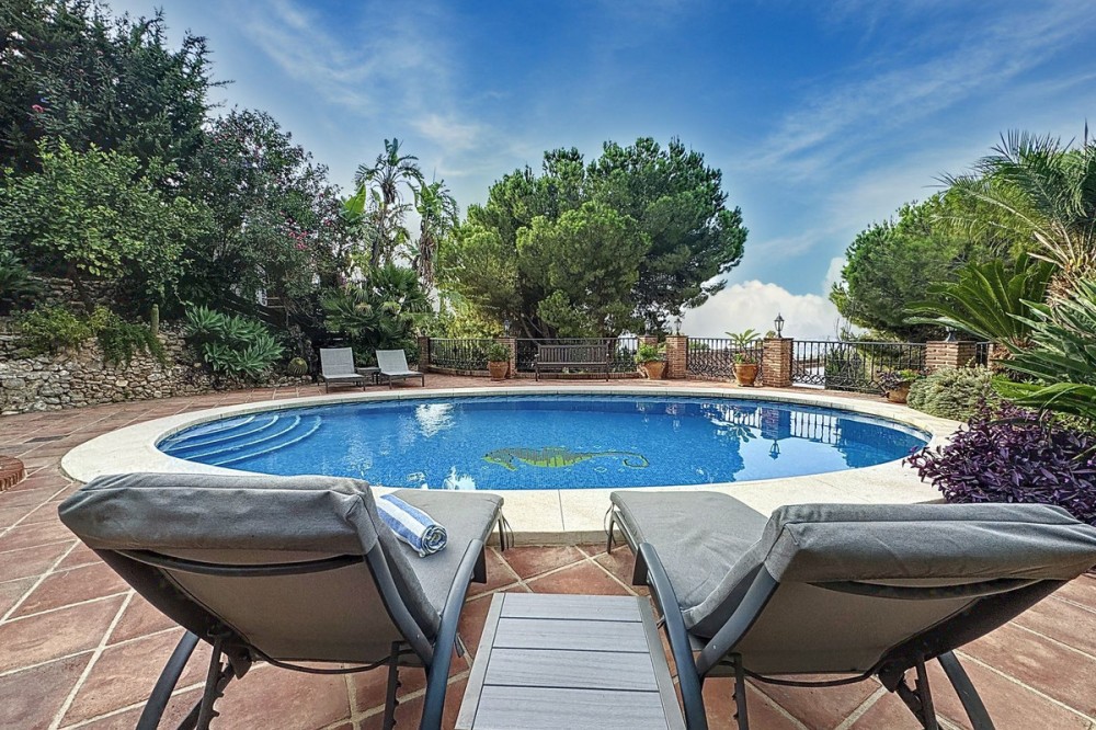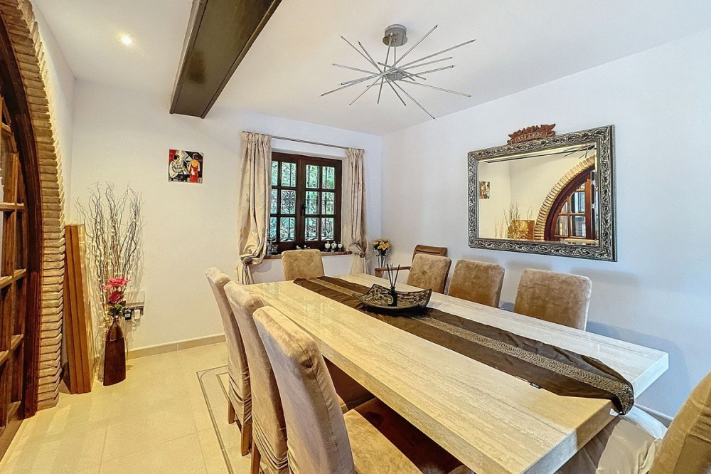 - Charming 3-Bedroom Detached Villa in Sought-After Mijas La Nueva Nestled in the desirable urbanization of Mijas La Nueva, this beautiful rustic-style 3-bedroom detached villa offers the perfect blend of tranquility and charm. Upon entering the villa, you are greeted by a welcoming ground floor featuring a spacious living room and a dedicated dining room—ideal for entertaining or quiet relaxation. The rustic décor enhances the warm and homely atmosphere, making it a perfect winter retreat. The top floor hosts 3 spacious bedrooms and 3 well-appointed bathrooms, with 2 of the bedrooms boasting ensuite facilities for added privacy and comfort. Two of the bedrooms open onto a delightful terrace, offering stunning sea views—the perfect spot to enjoy your morning coffee or an evening sunset. The outdoor area is a real highlight of this property. It includes a private swimming pool, surrounded by a well-maintained garden filled with lush grass and vibrant flowers, creating a serene and picturesque setting. A charming pergola provides a shaded space for al fresco dining or lounging, while the sea views add an extra touch of luxury. Additional features include private parking and easy access to local amenities, making this villa an ideal choice for those seeking a peaceful, yet convenient, winter escape. Don’t miss out on this rare opportunity to enjoy a slice of Mijas La Nueva’s tranquil lifestyle.